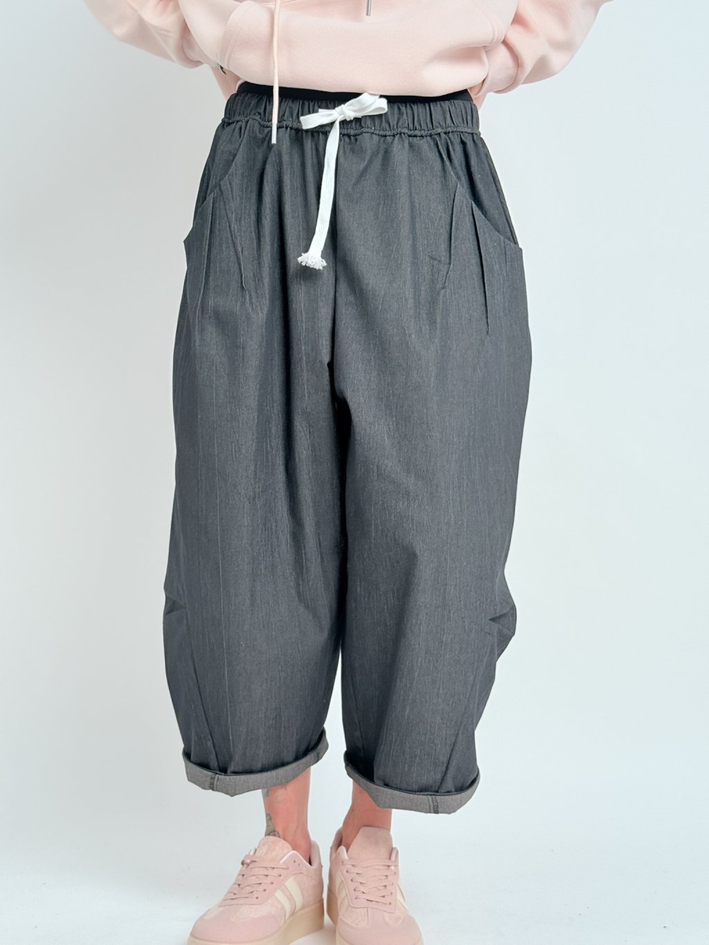 Luxusní kalhoty v balonovém střihu, s gumou a tkanicí na stažení v pase. Super střih i materiál.
