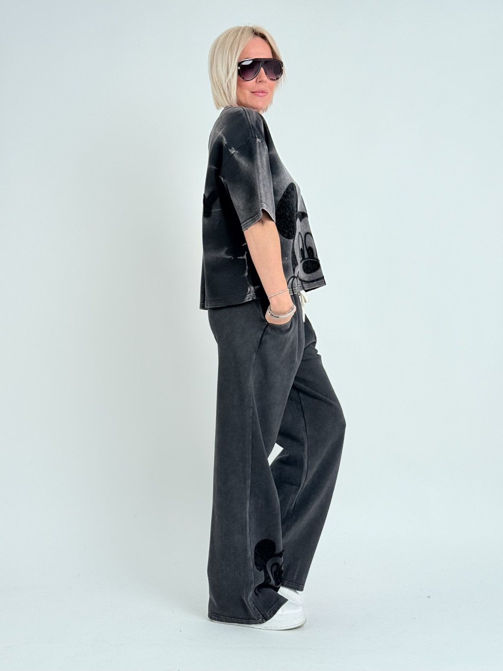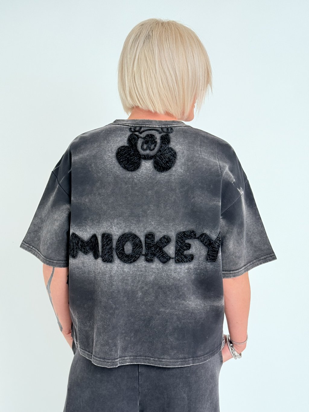 Naprosto ojedinělé, silnější, mikinové triko s krátkým rukávem a plastickým obrázkem na přední i zadní stravě.