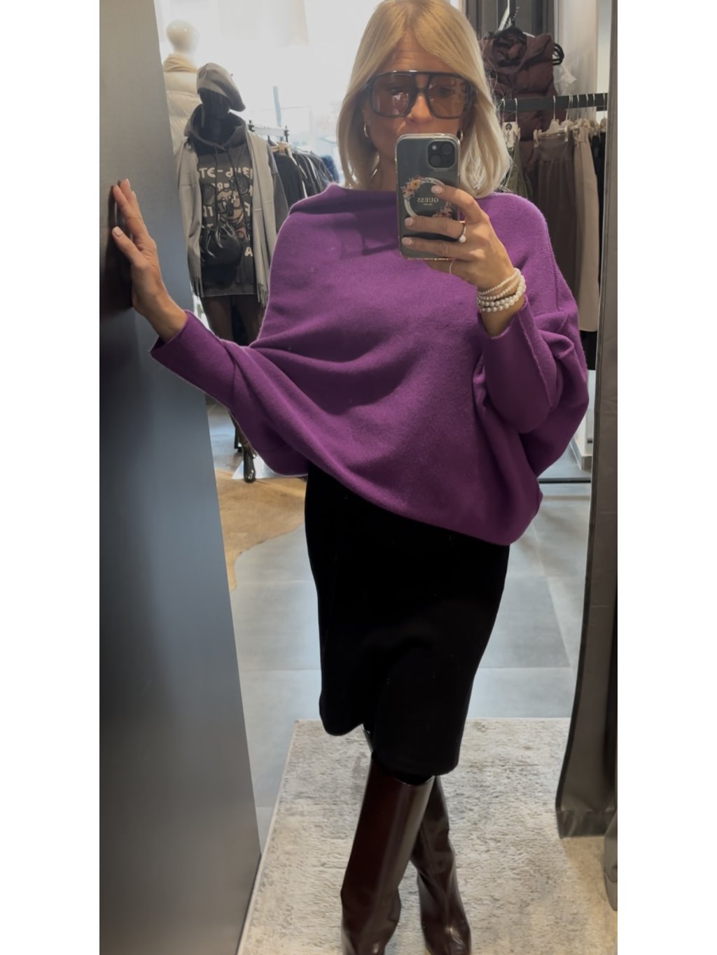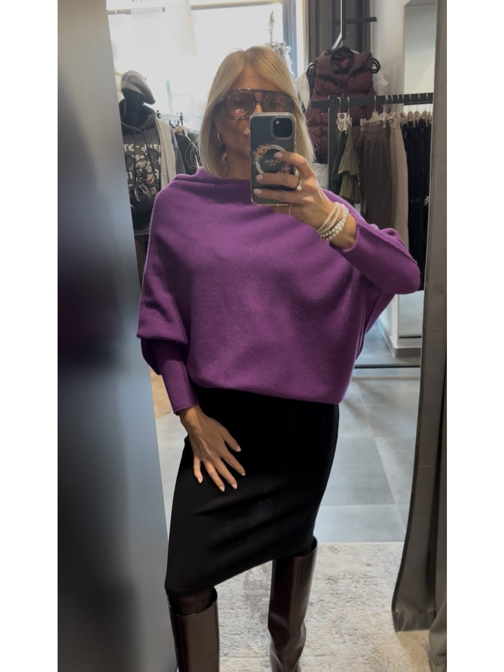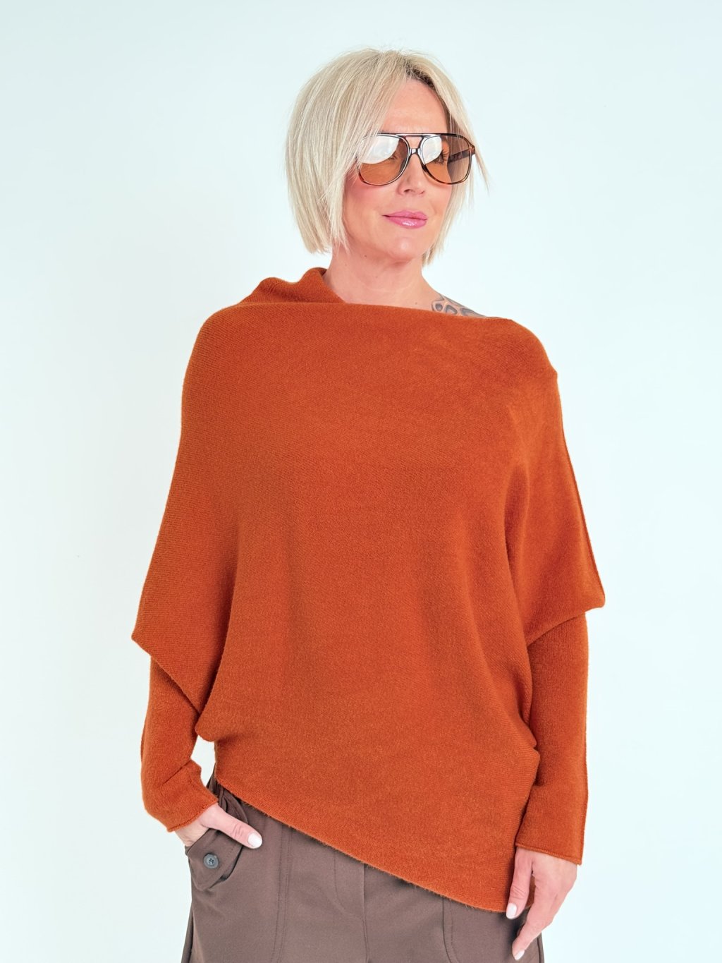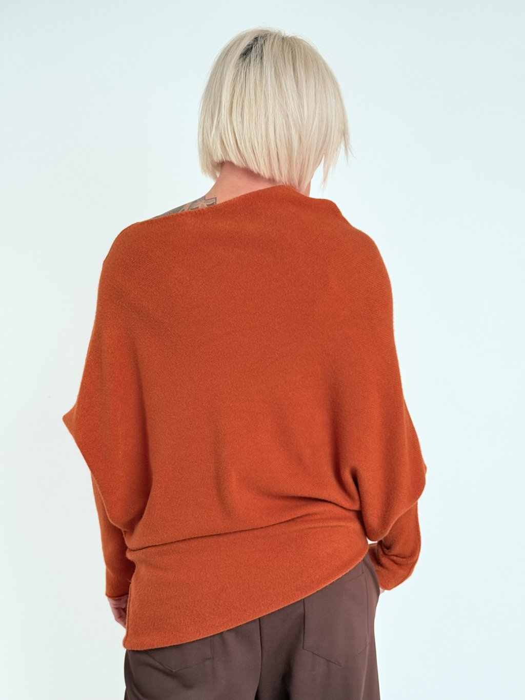 Krásný, pružný, asymetrický svetr s lodičkovým výstřihem. Jemný a nekousavý.
