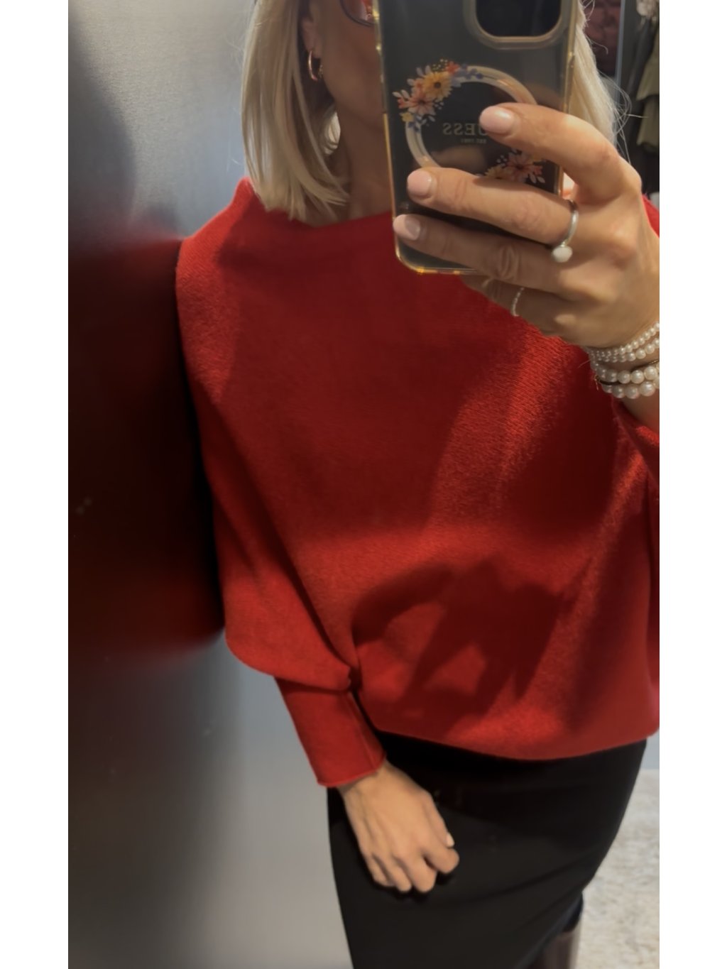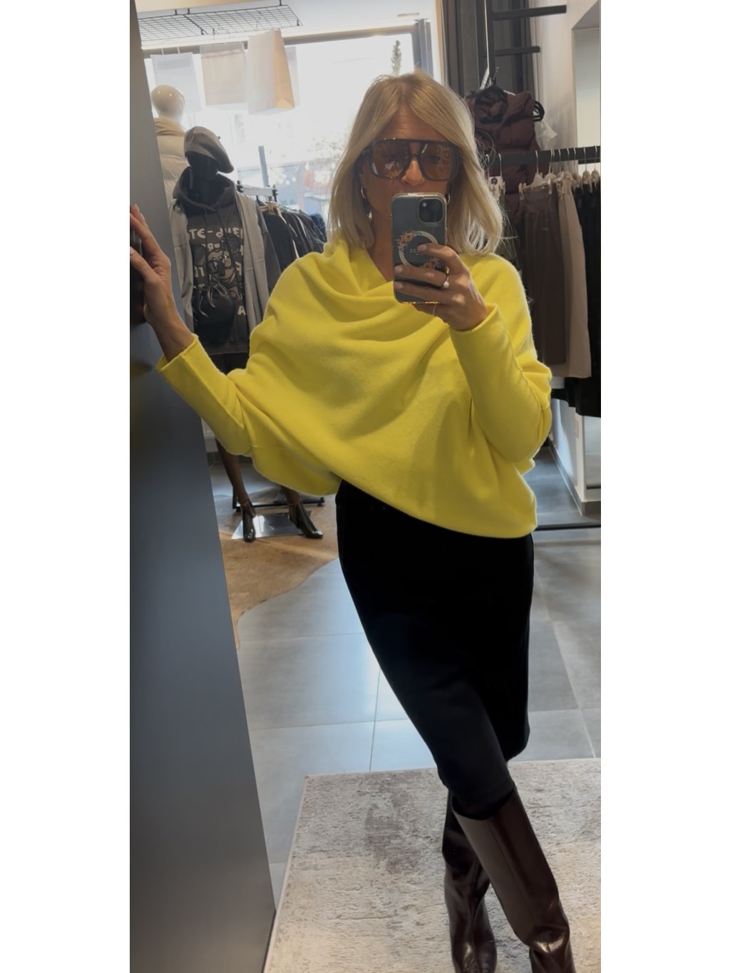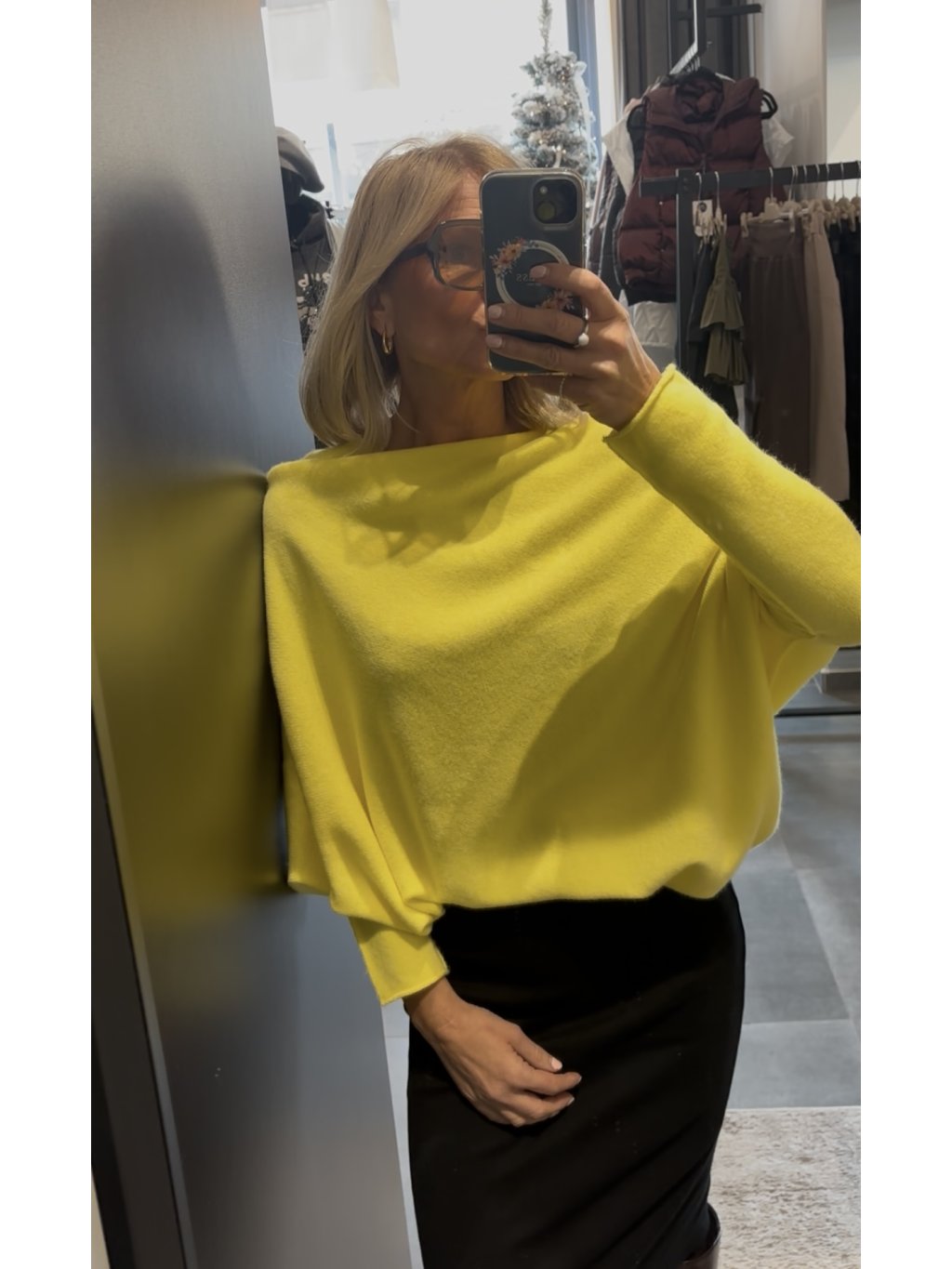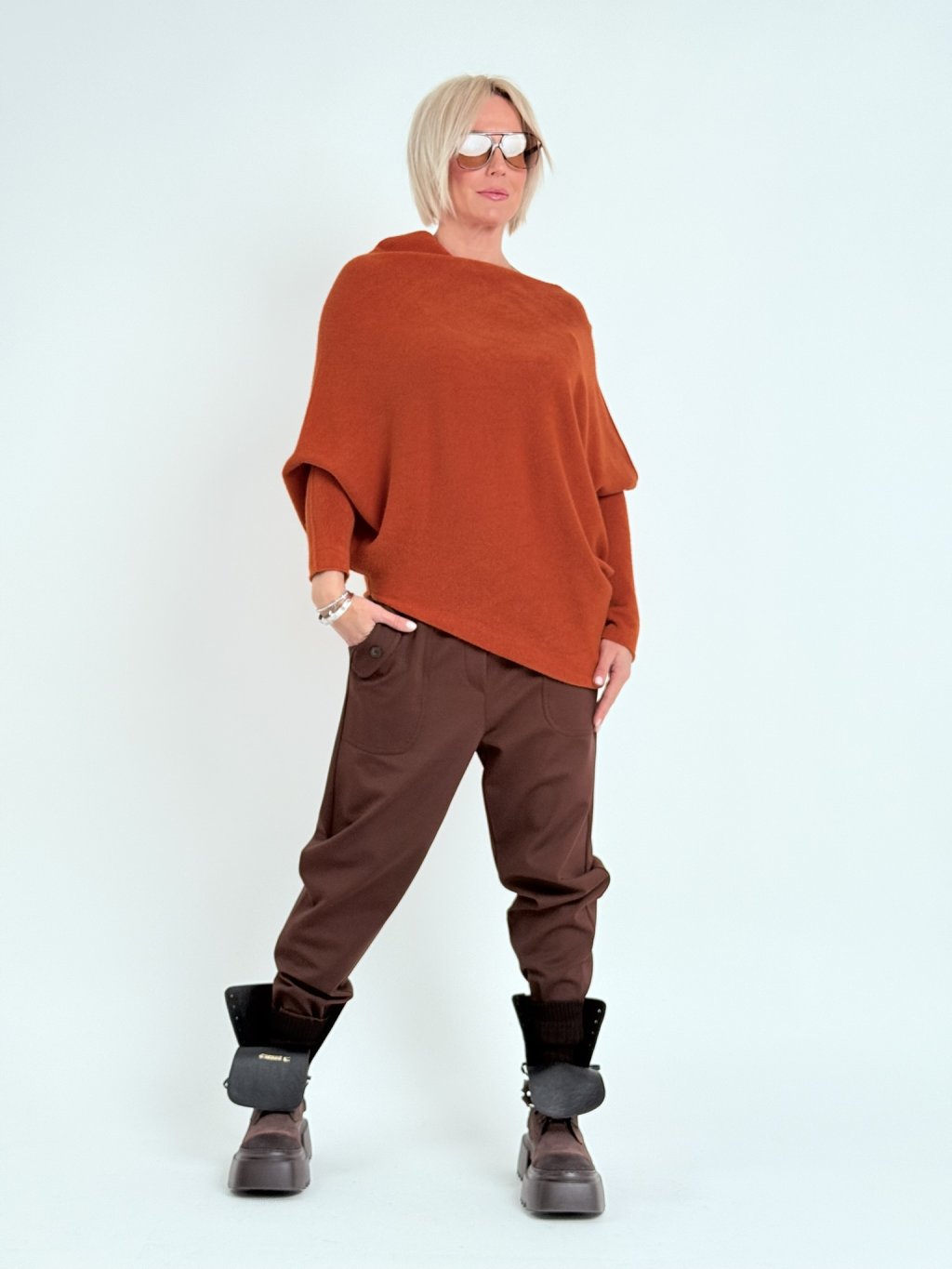 Krásný, pružný, asymetrický svetr s lodičkovým výstřihem. Jemný a nekousavý.