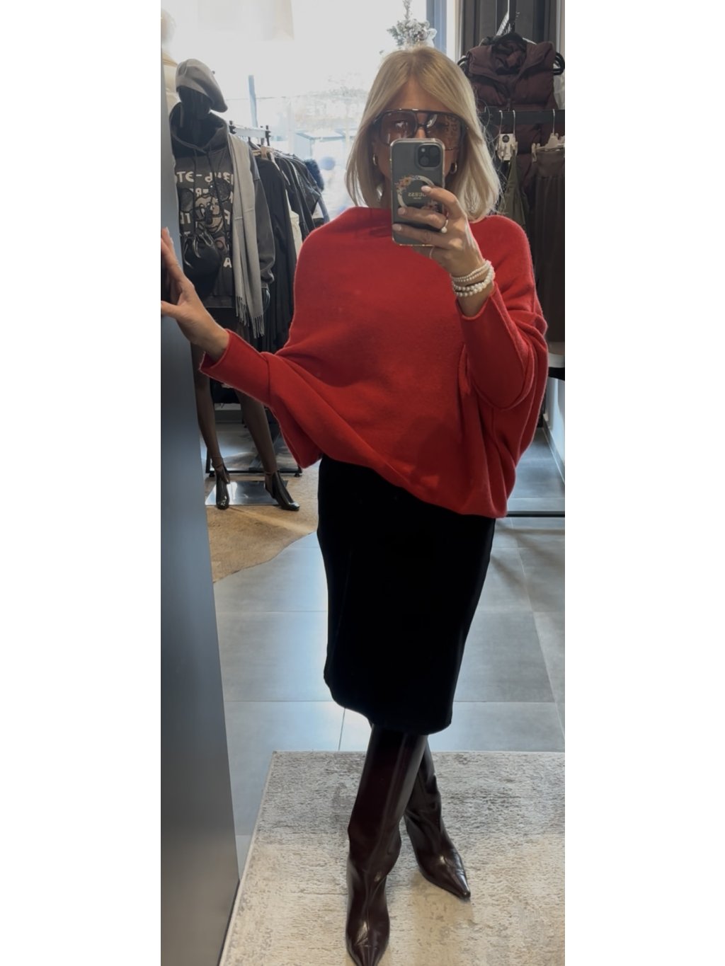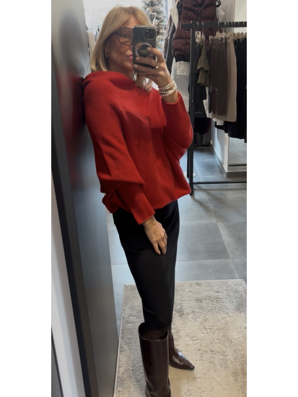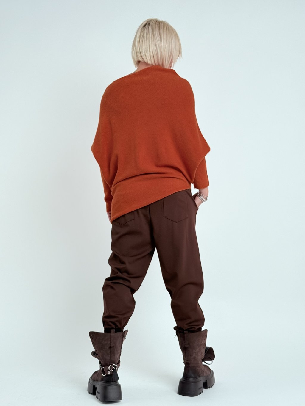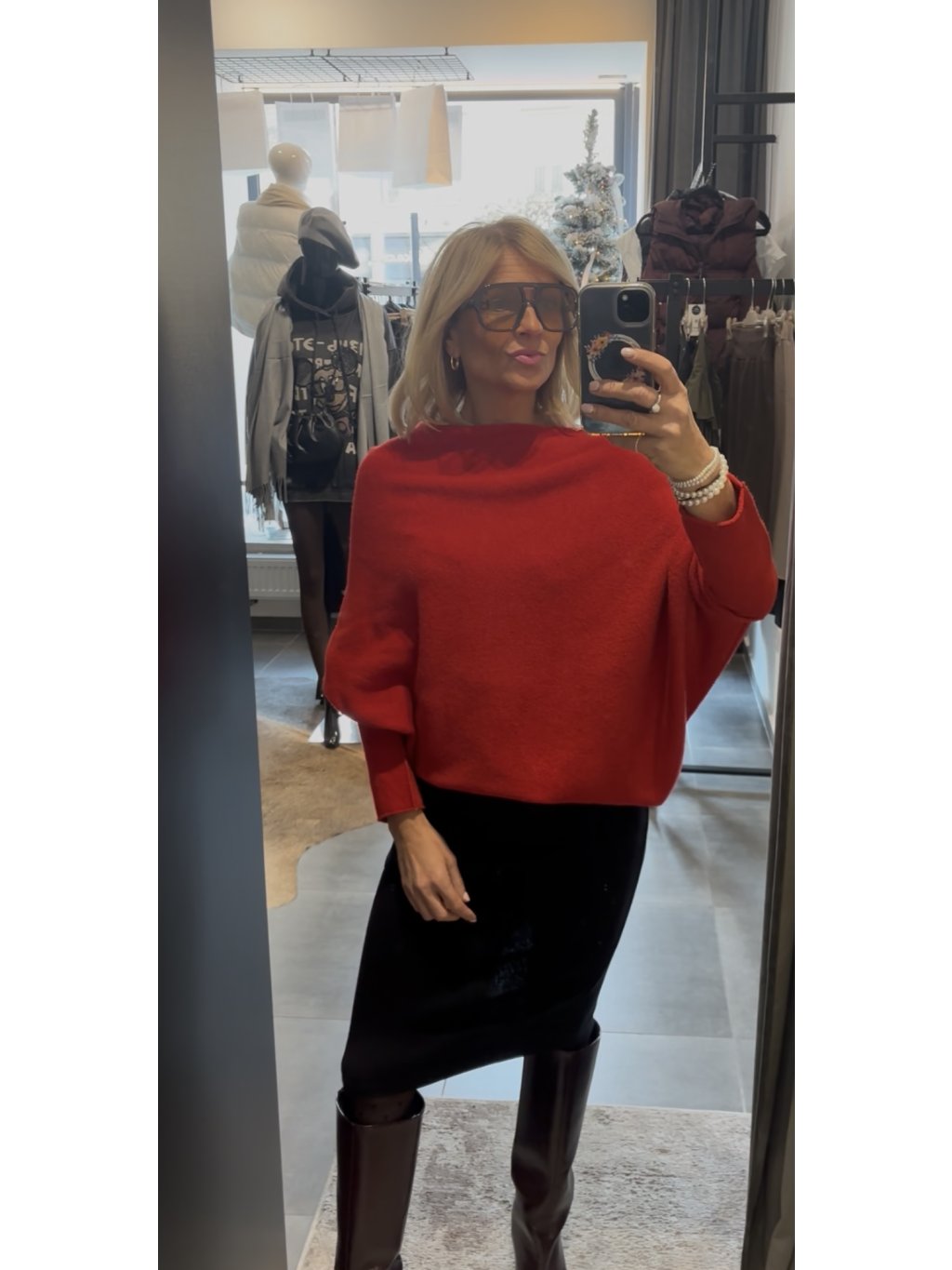 Krásný, pružný, asymetrický svetr s lodičkovým výstřihem. Jemný a nekousavý.