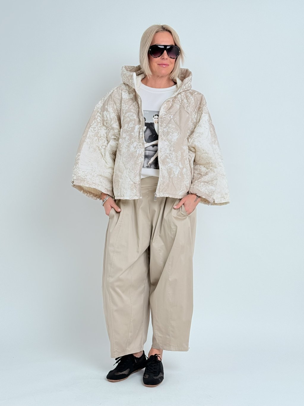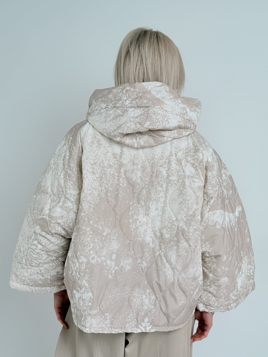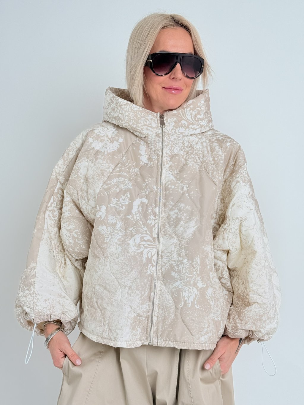 Nádherná, lehká, prošívaná, přechodová, oversize bunda se zapínáním na zip, velkou kapucí a širokými rukávy s možností stažení.