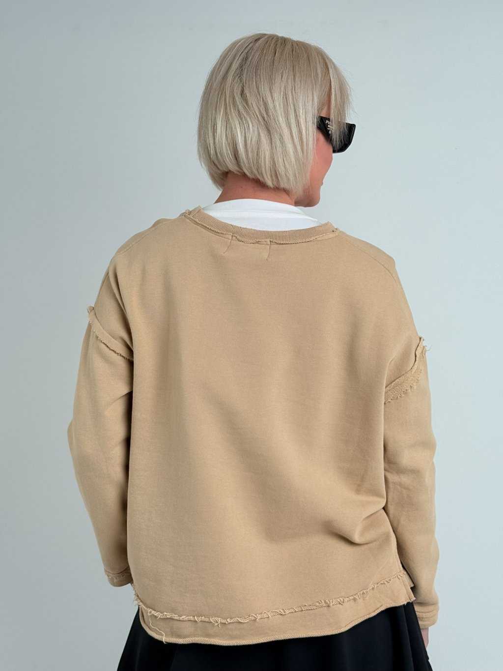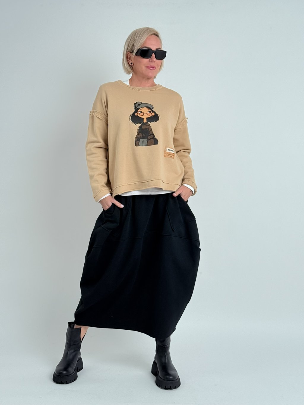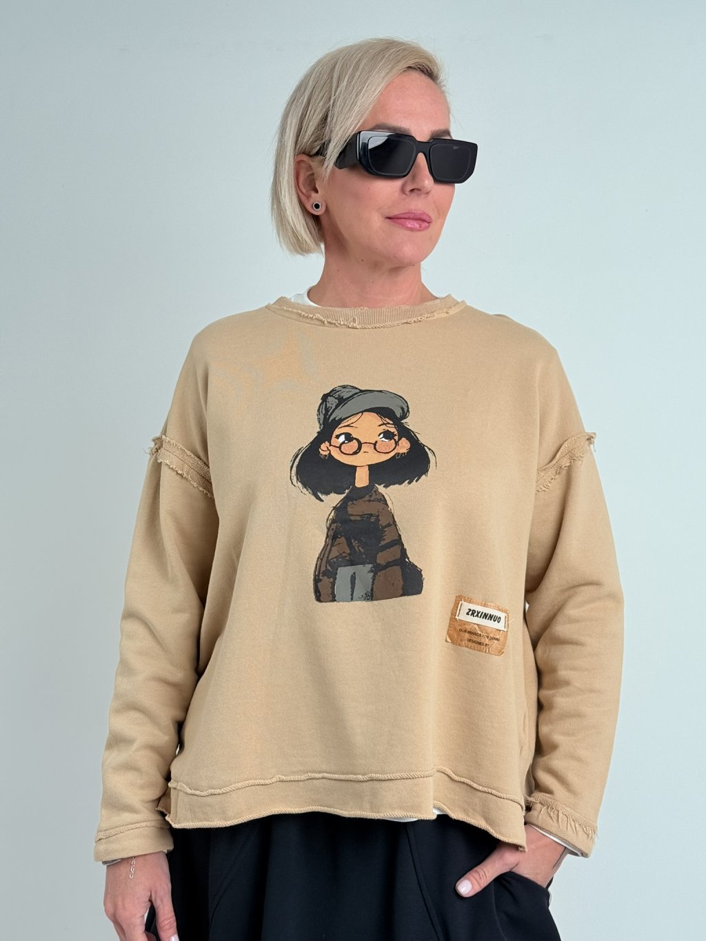 Super, oversize, slabší mikina s kulatým výstřihem, dlouhým rukávem a potiskem na předním dílu.