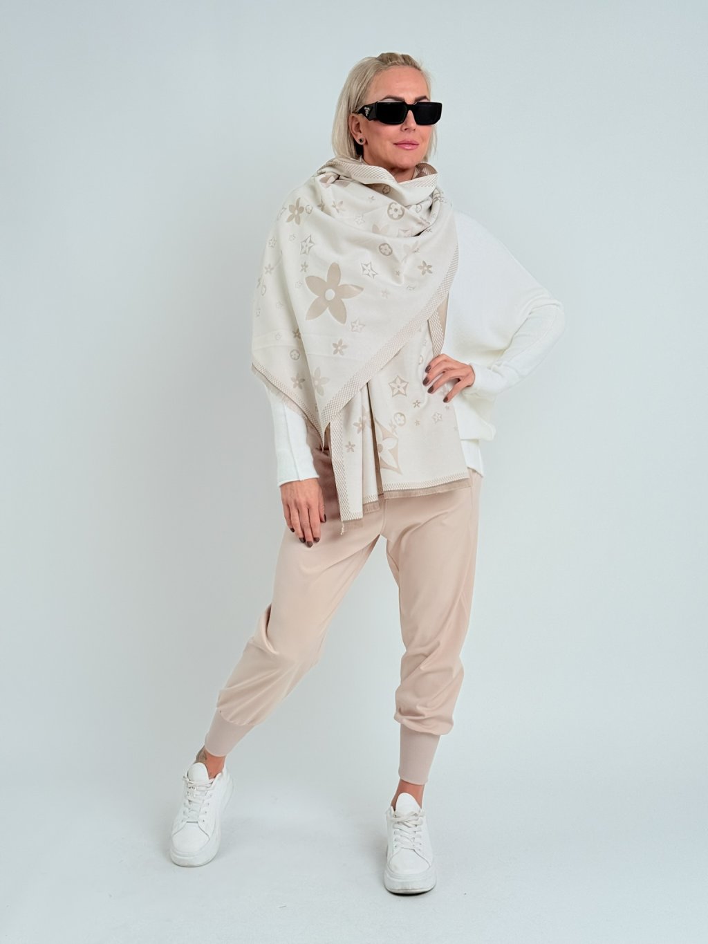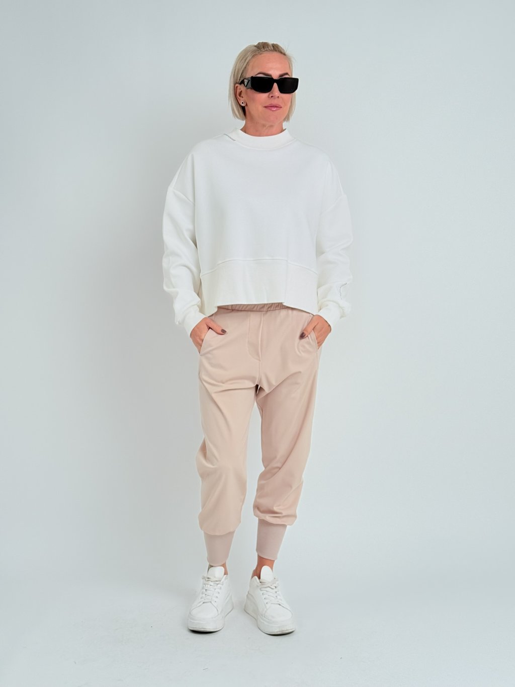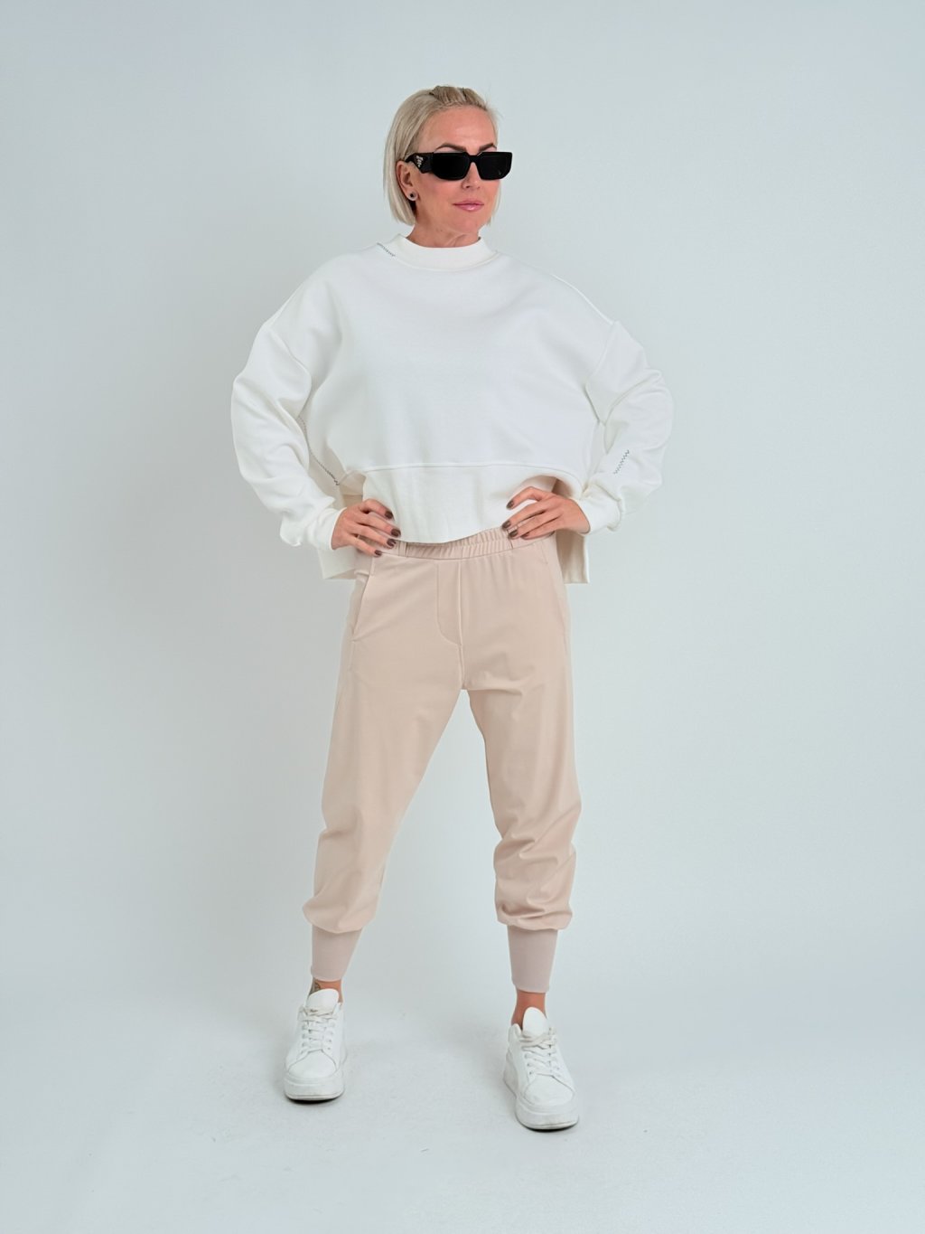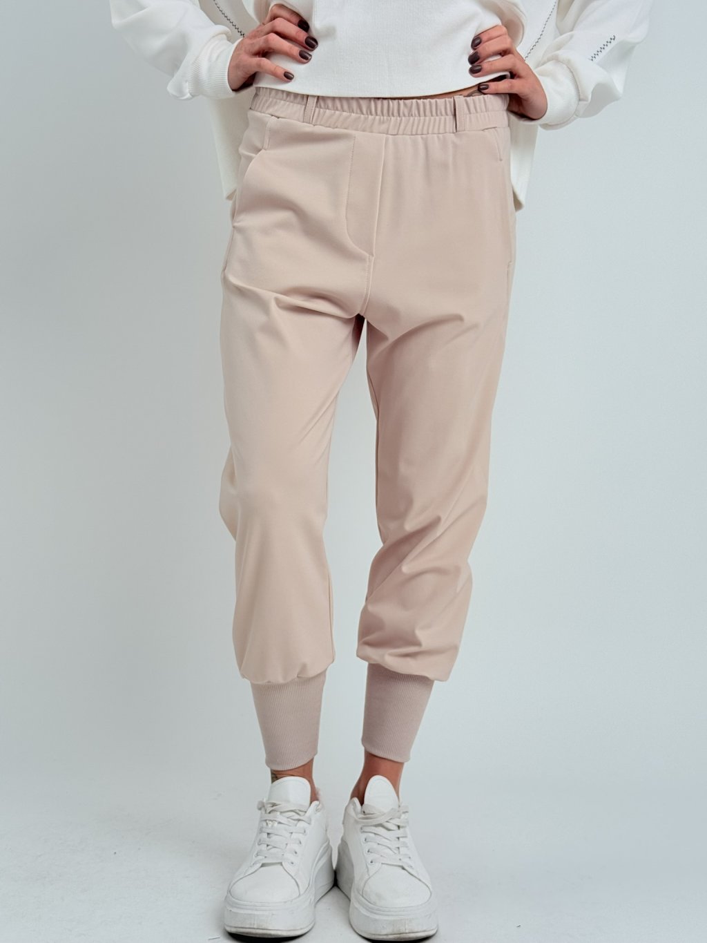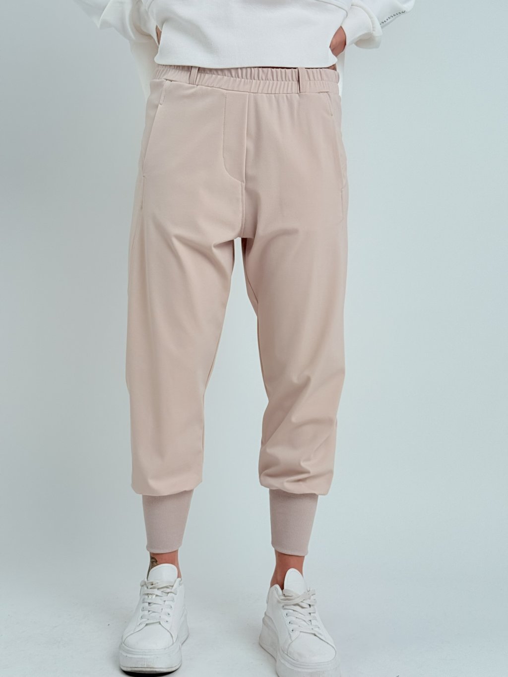 Luxusní oblíbené kalhoty s vysokými náplety na nohavicích. V pase na gumu, postranními všitými kapsami.