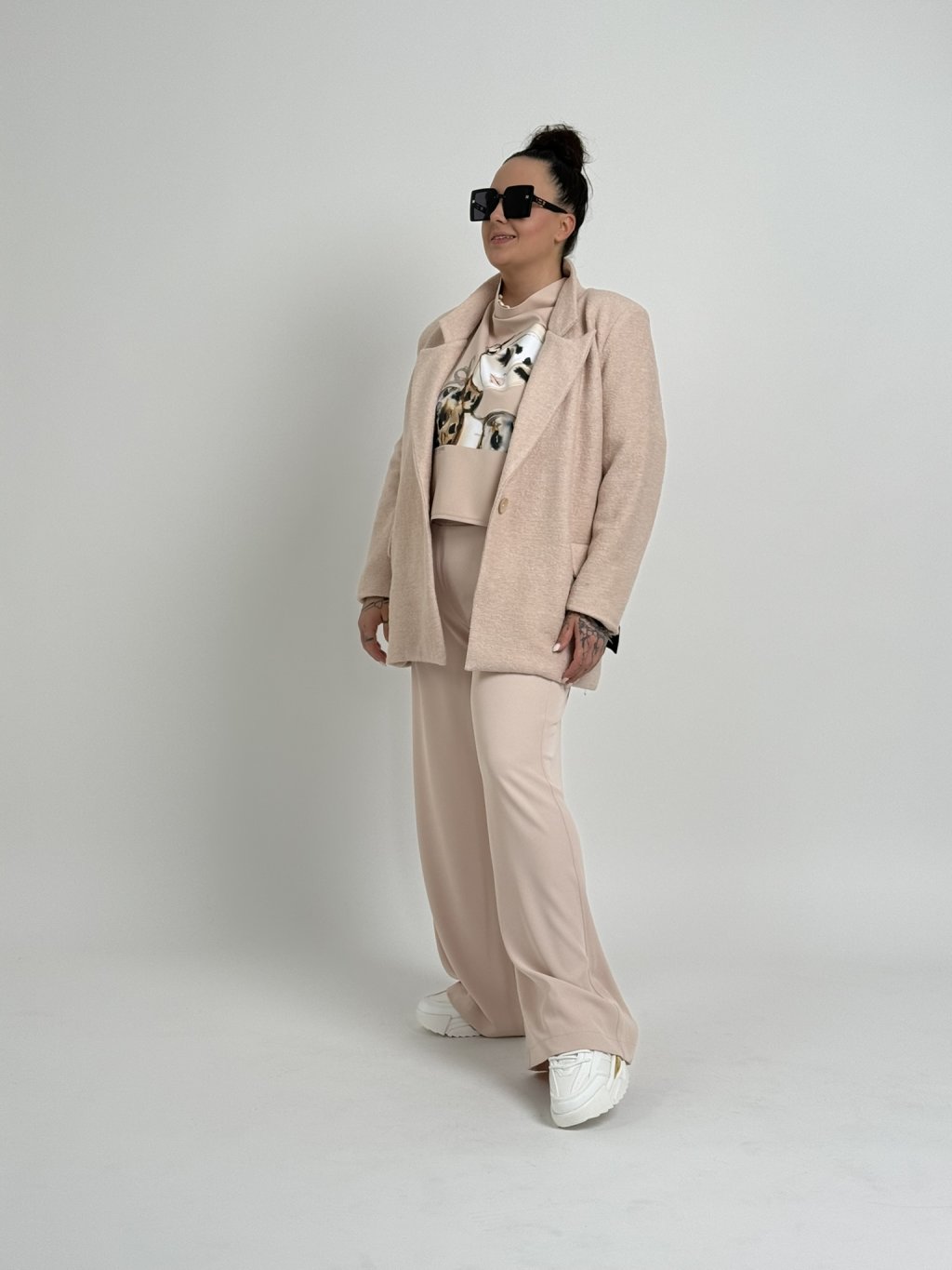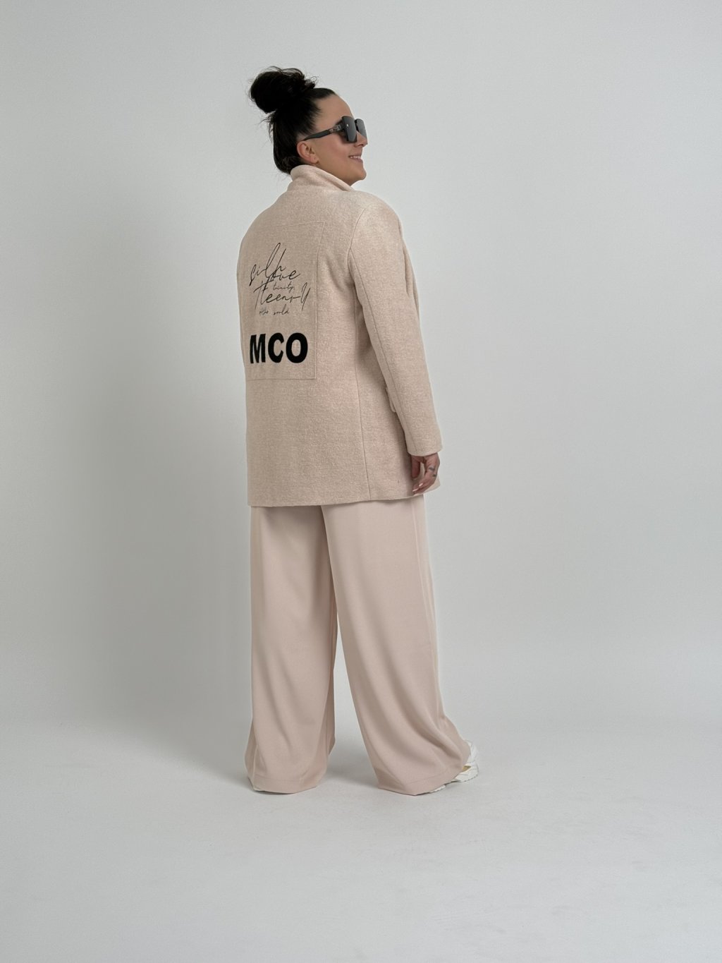 Nádherné oversize sako se zapínáním na knoflíky a výšivkou na zadním dílu. Uvnitř podšívka.