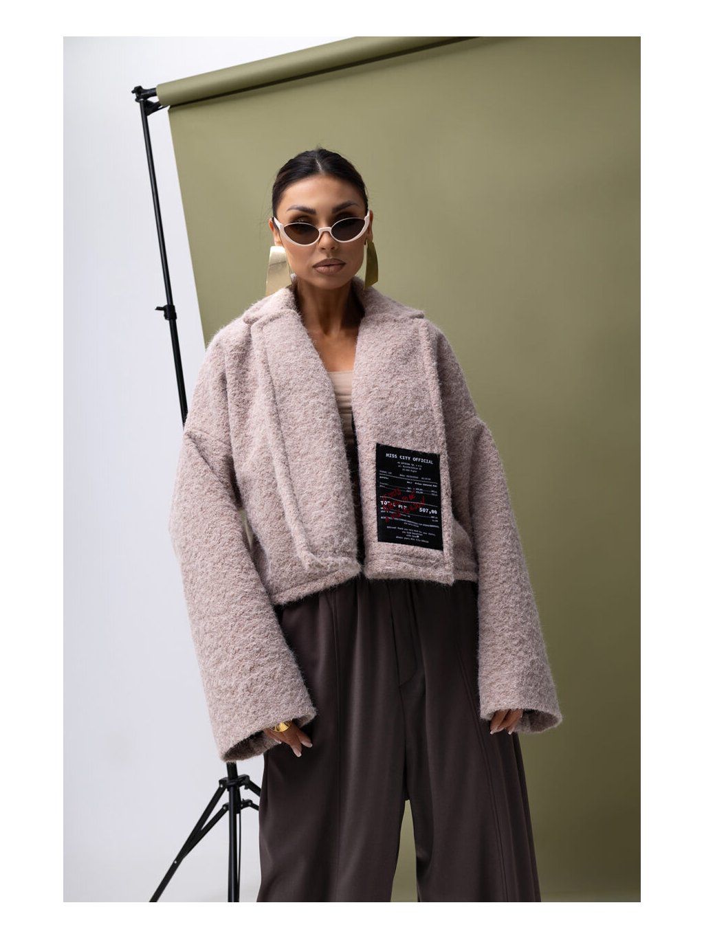 Skvělý krátký kabátek bez zapínání, s velkou nášivkou na přední straně. Nádherně doplní jakýkoli outfit.