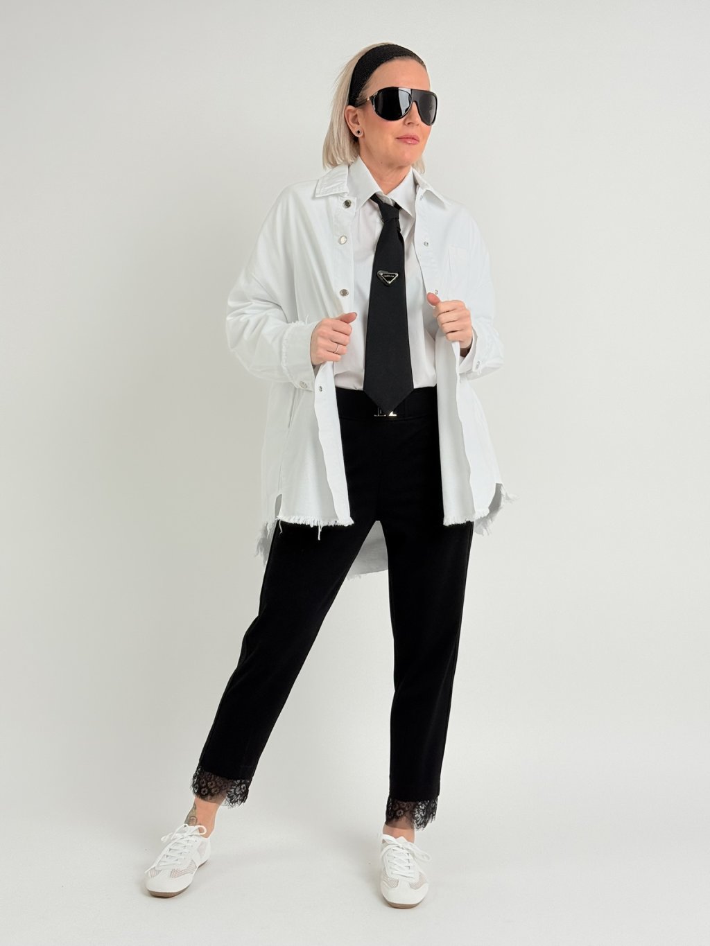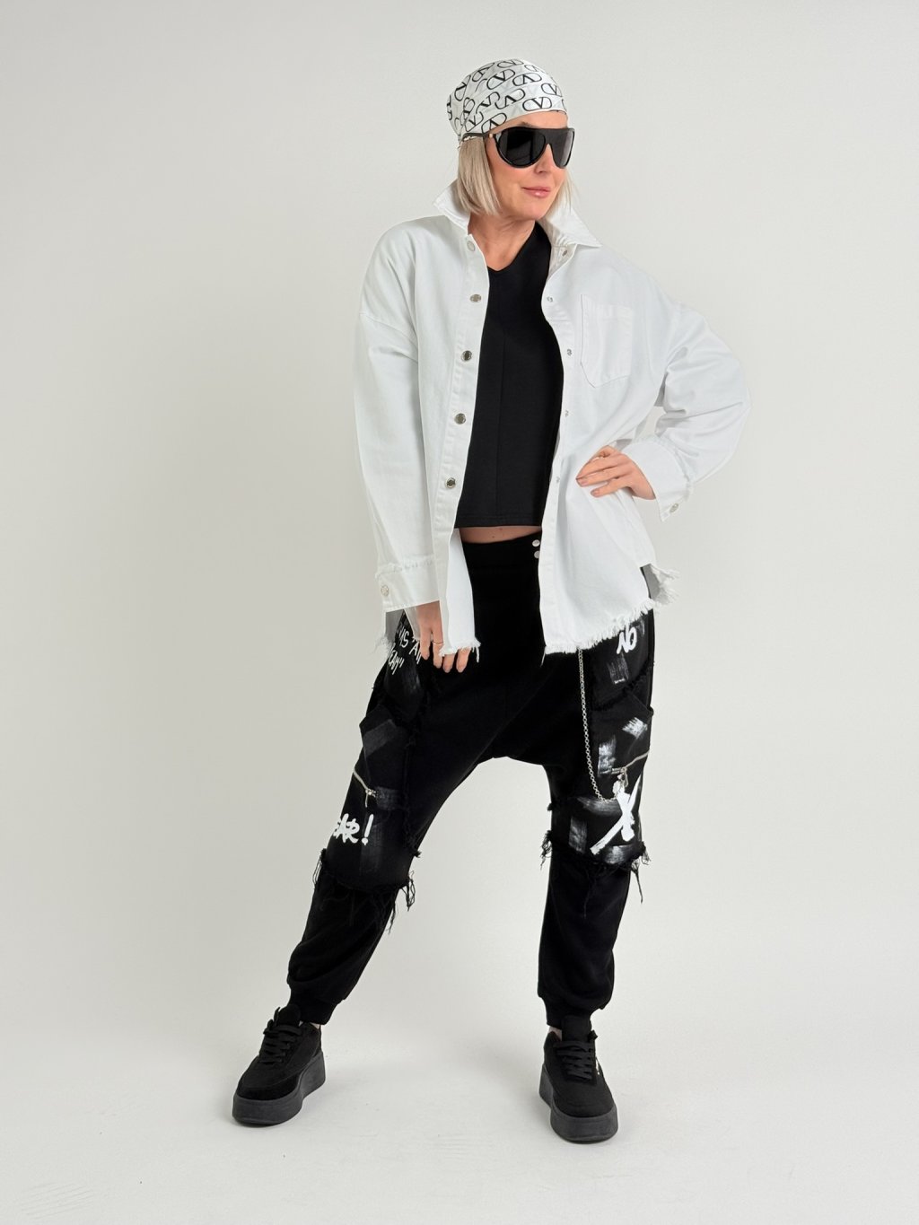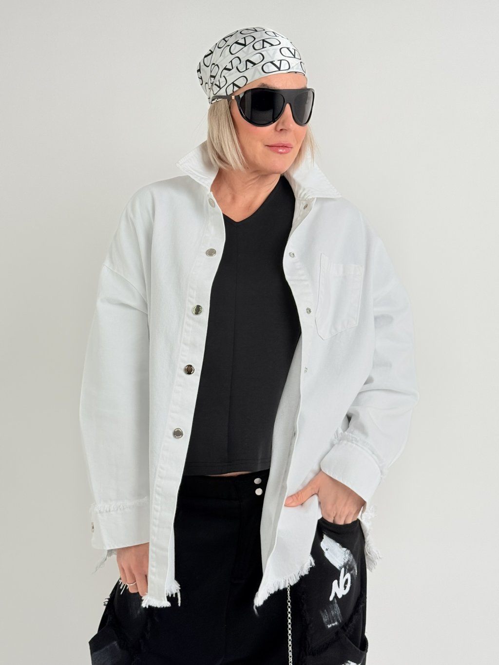 Volná, džínová košile s kapsou na předním dílu, se zapínáním na patenty a vzadu s větší , hnědou nášivkou.