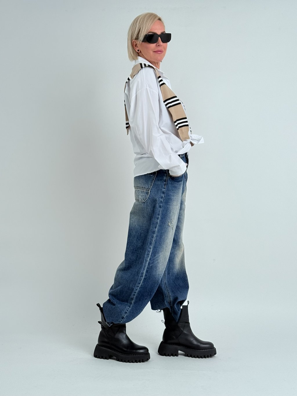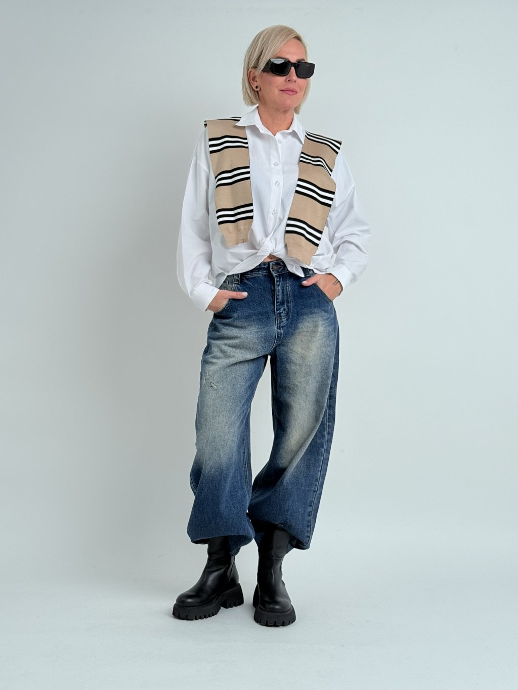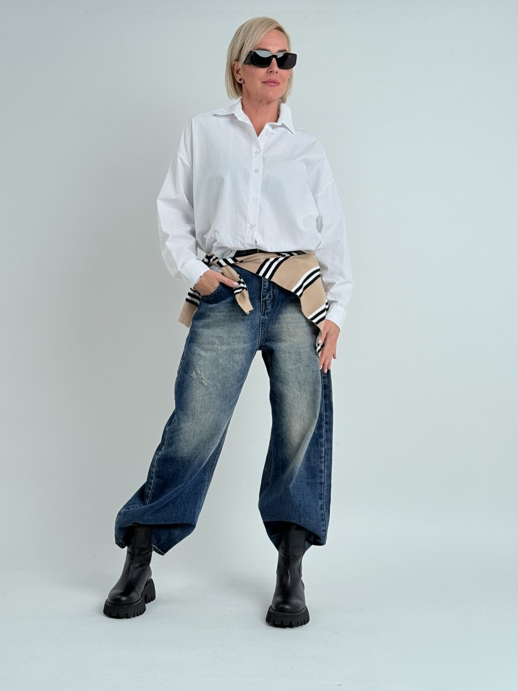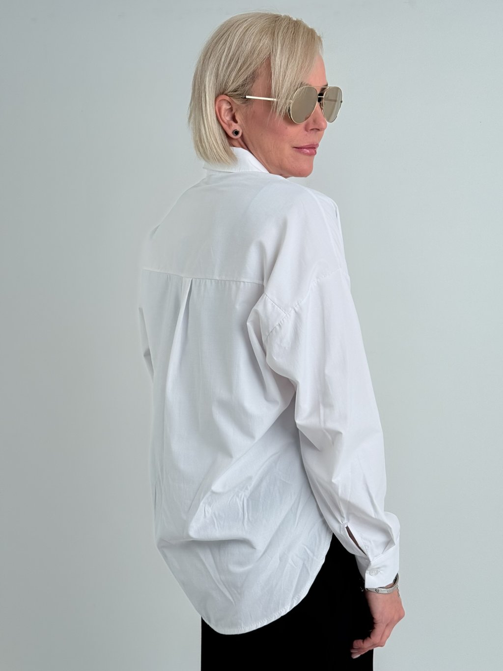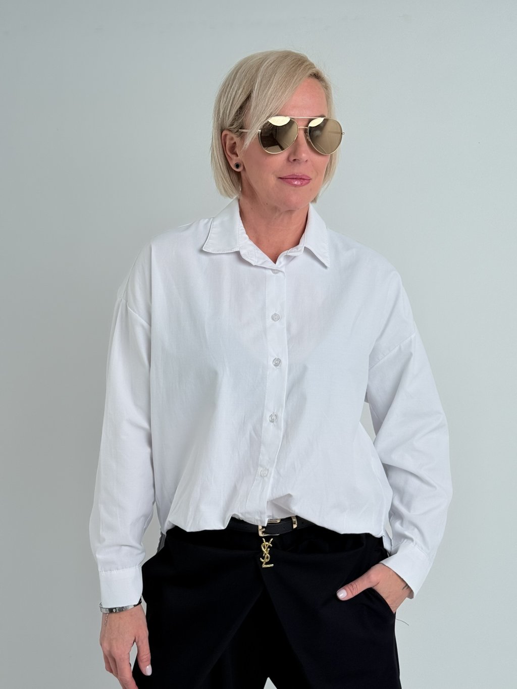 Krásná, oversize košile s "POLOSVETŘÍKEM" přes ramena, který lze nosit i kolem pasu nebo s jiným oblečením.