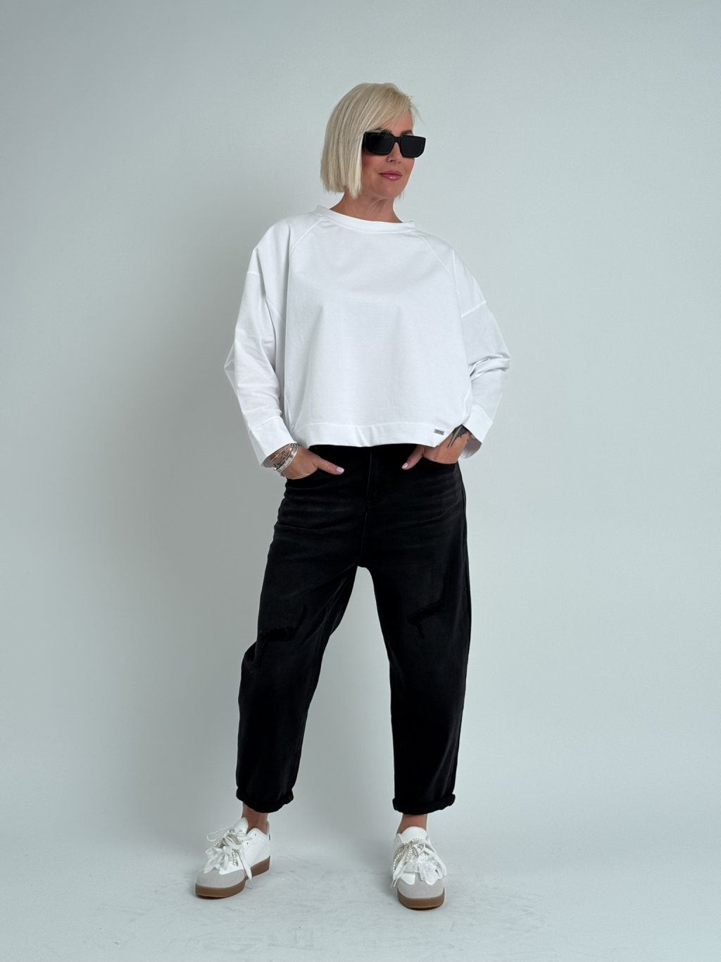 Nádherná, lehká, oversize mikina v netopýřím střihu s dolním krajem na stranách do gumy a 7/8 délkou rukávu.