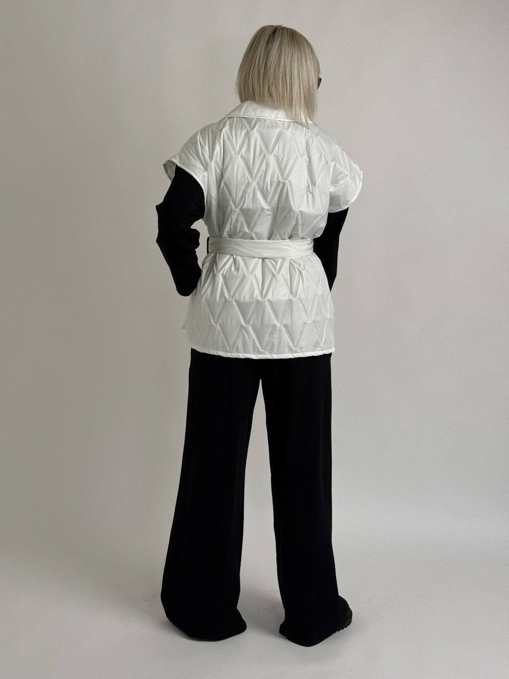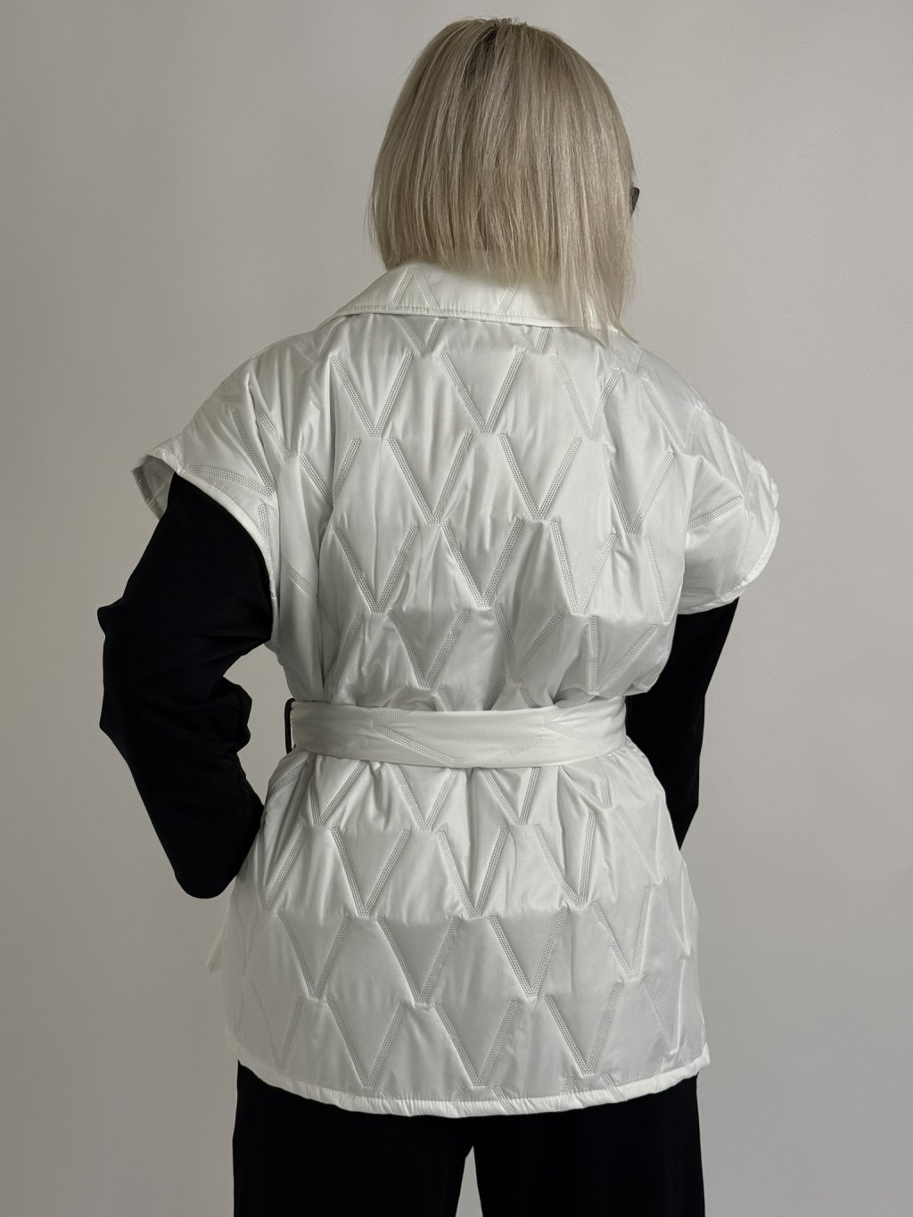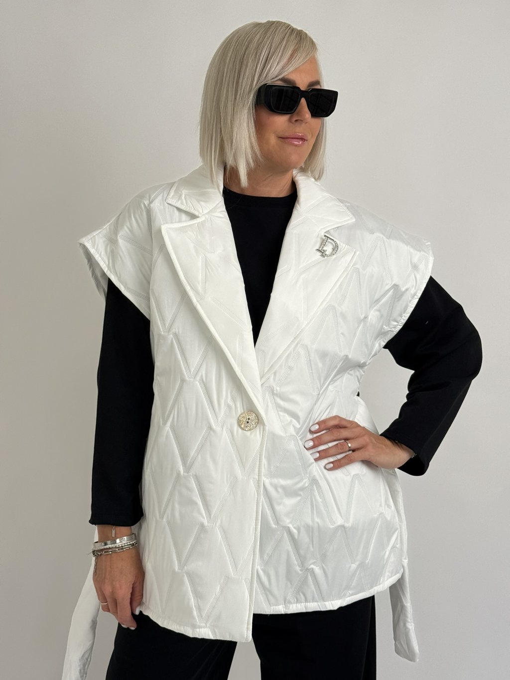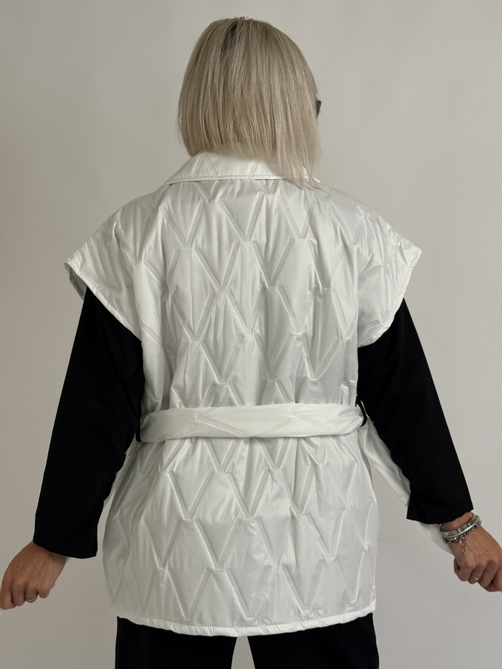 Lehká, prošívaná vesta, s páskem a zapínáním na knoflík.