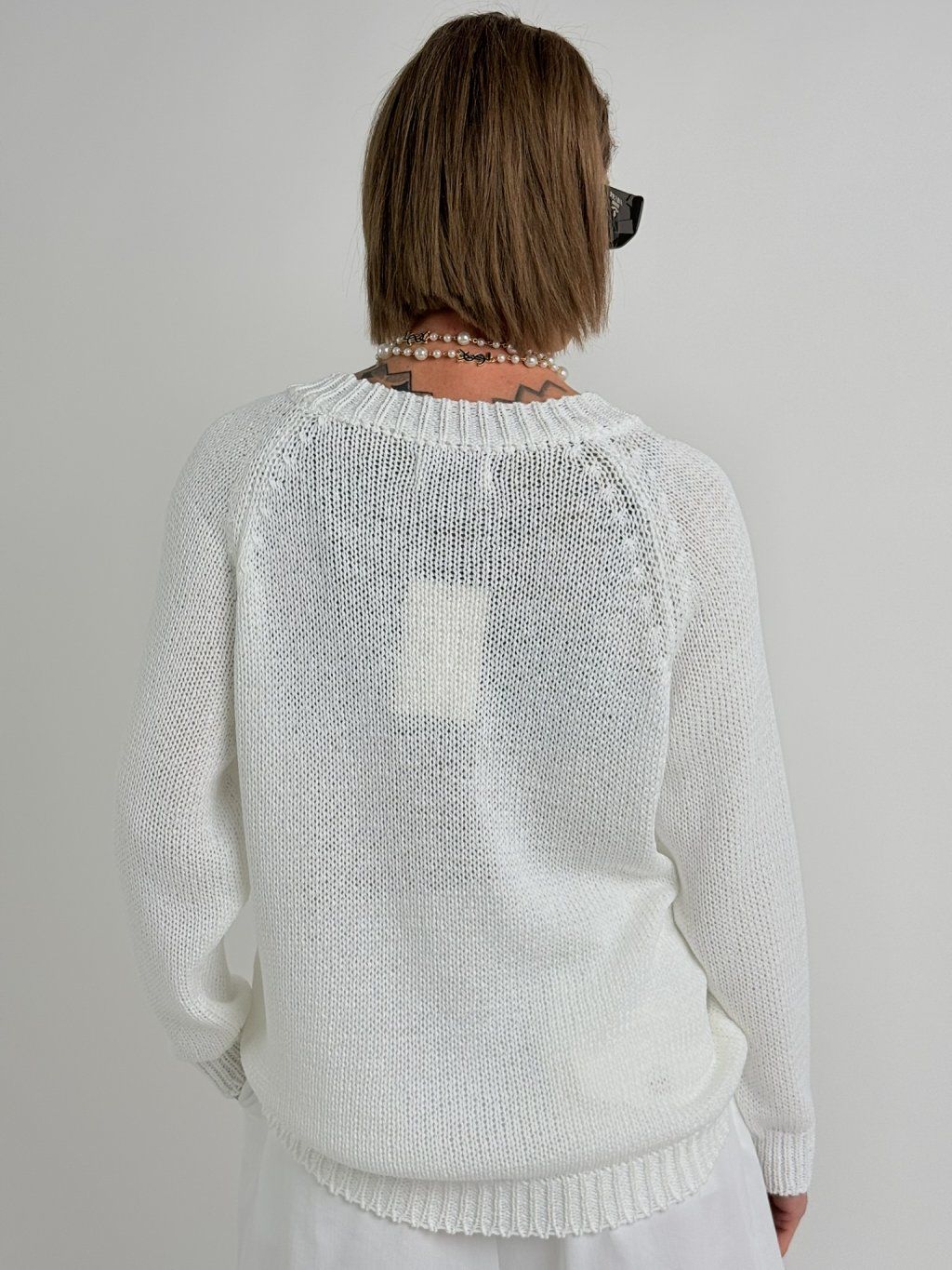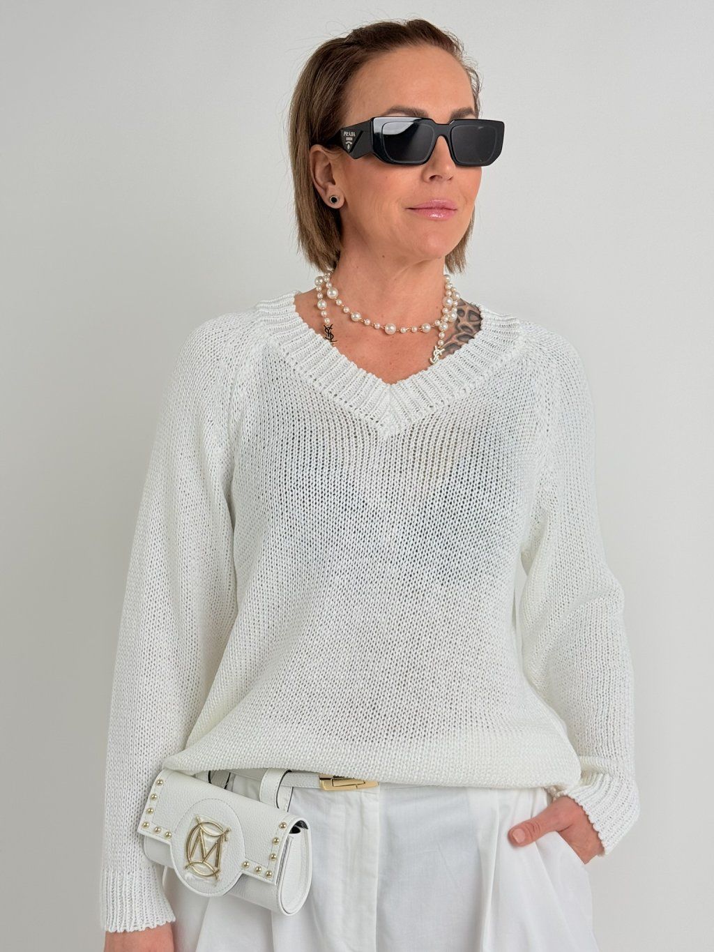 Krásný, lehký, přízový svetr s výstřihem do V a dlouhým rukávem.