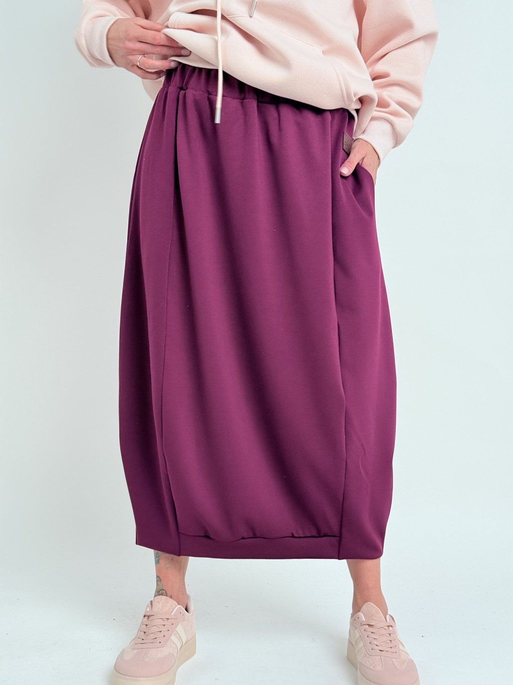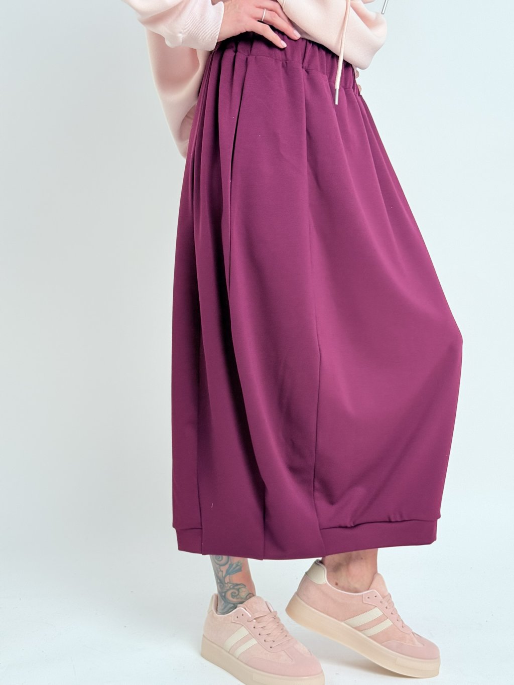 Super pohodlná sukně v balonovém střihu, v pase do gumy a vnitřními, postranními kapsami.