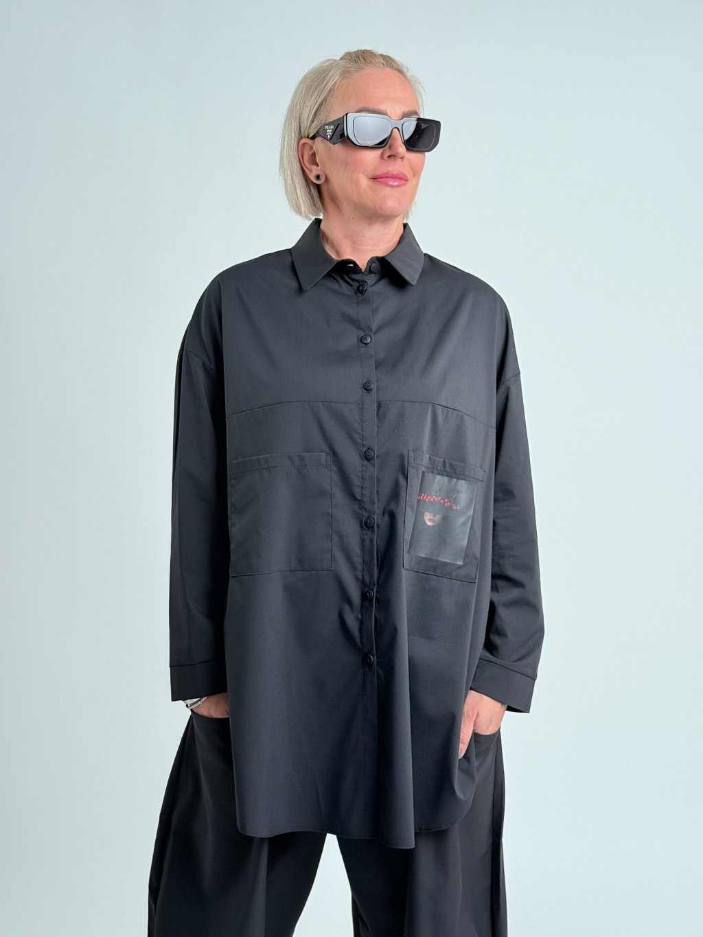 Skvělá košile s potiskem na kapse a postranními rozparky.
