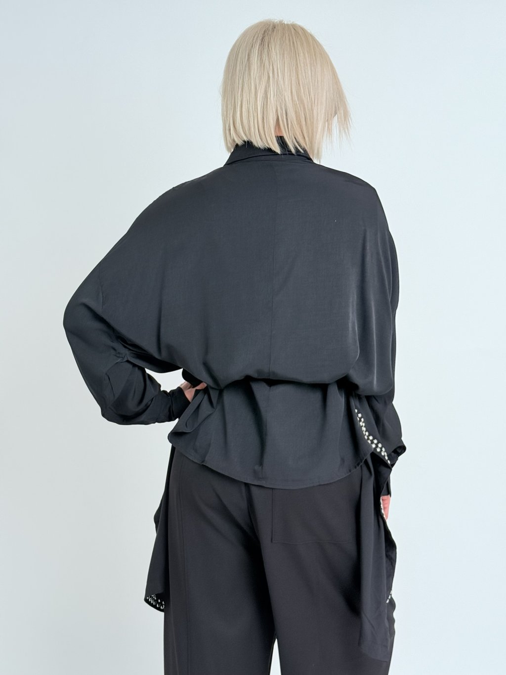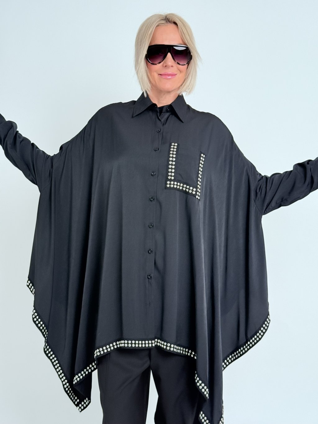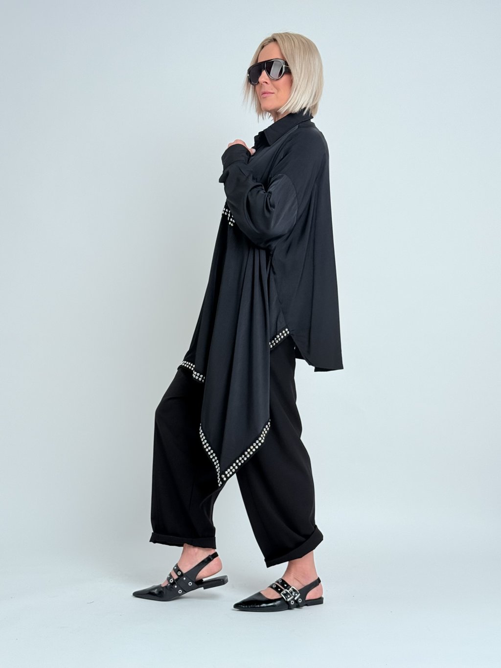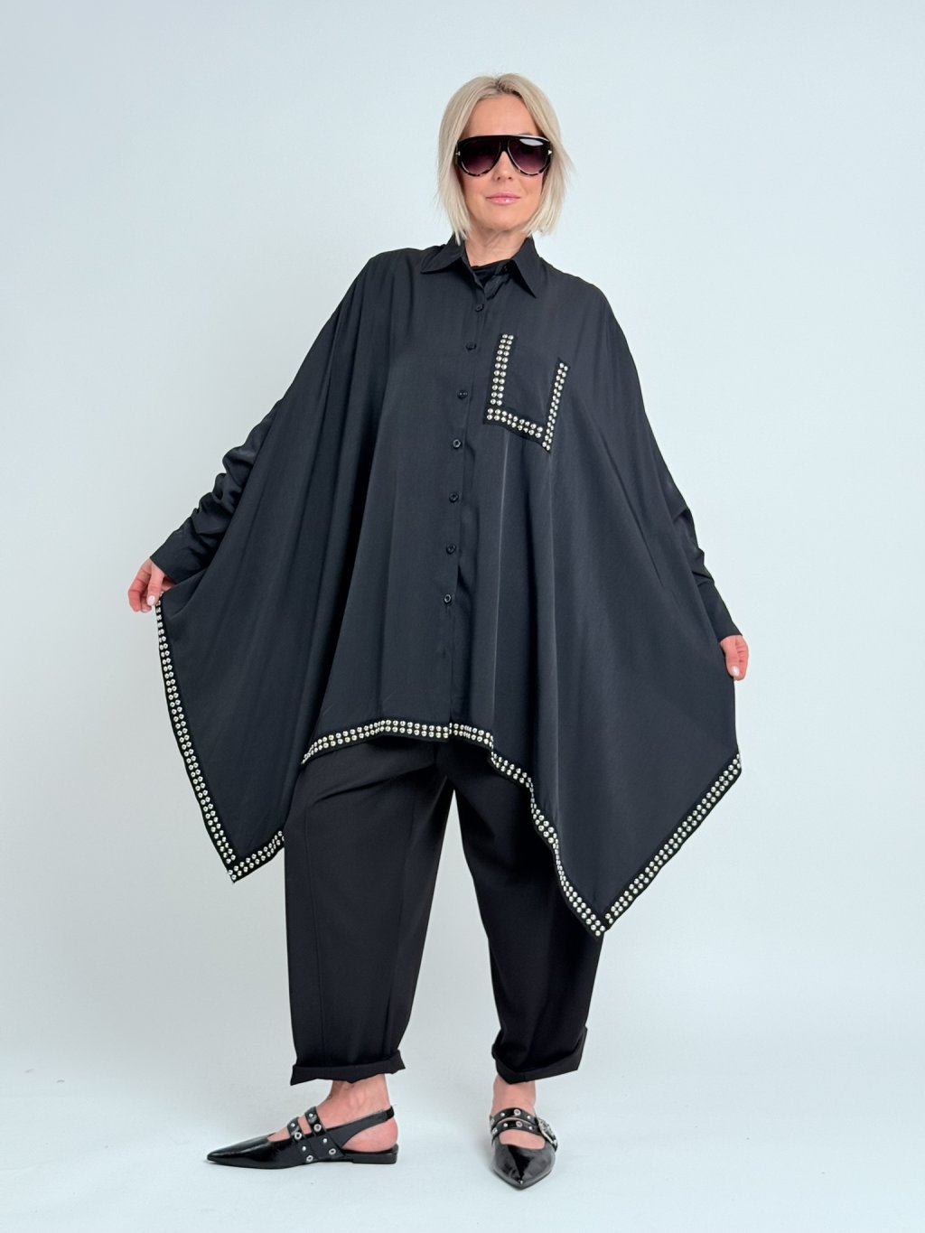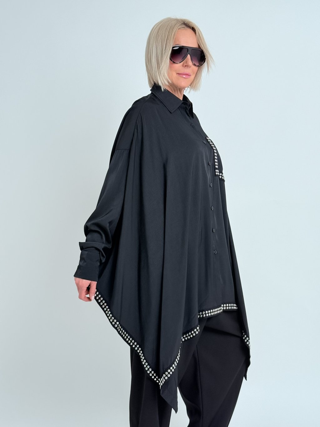 Dokonalá, oversize, asymetrická košile zdobená stříbrnými nýty..