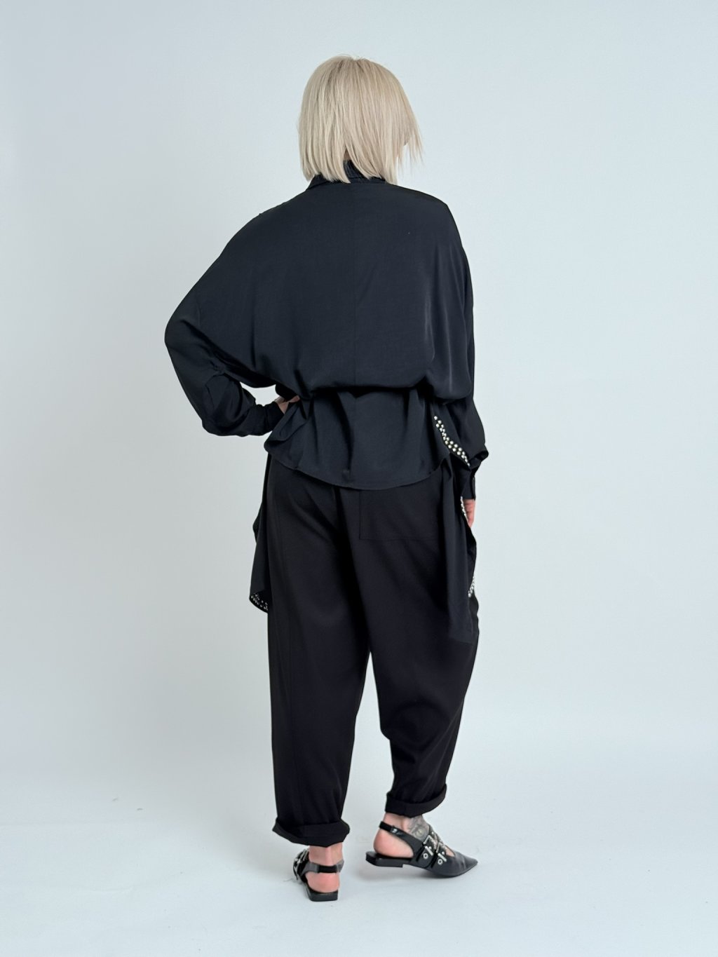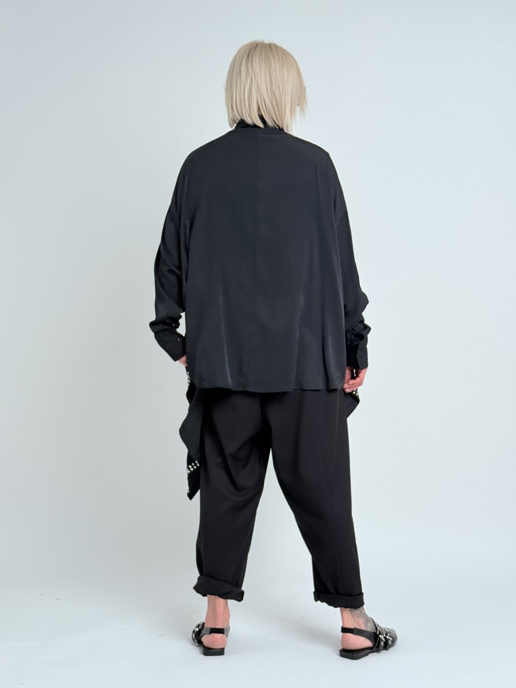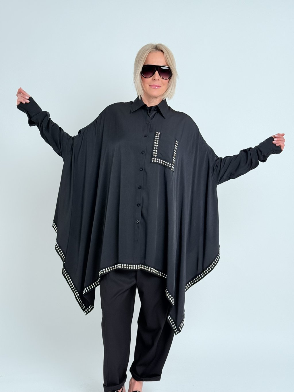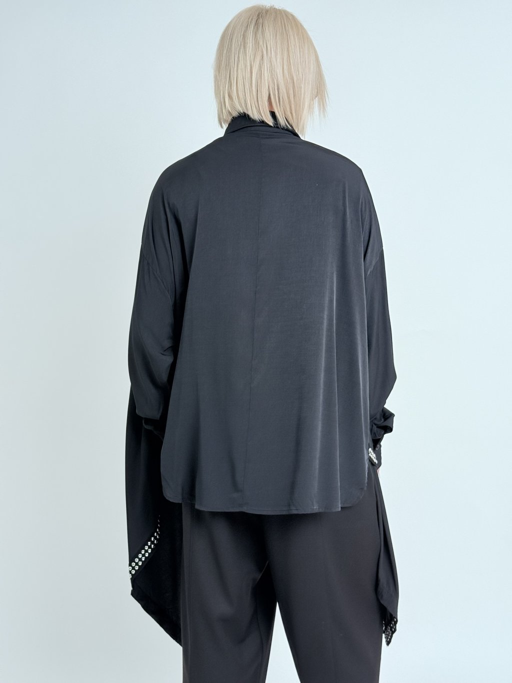 Dokonalá, oversize, asymetrická košile zdobená stříbrnými nýty..
