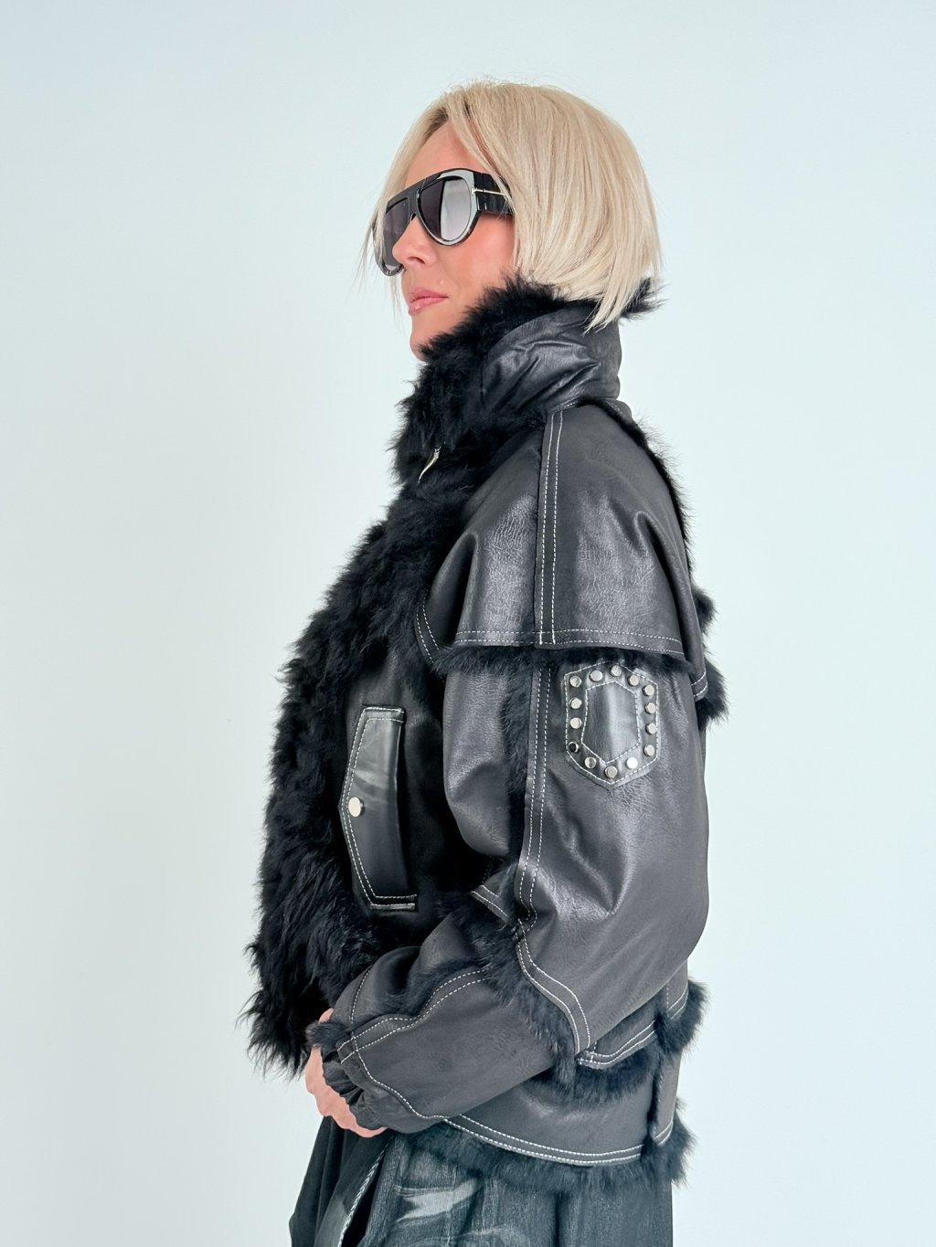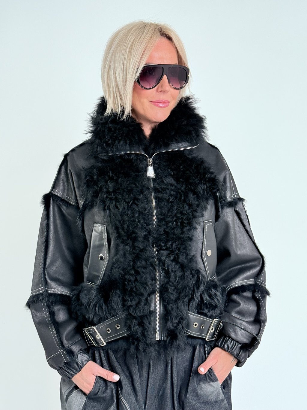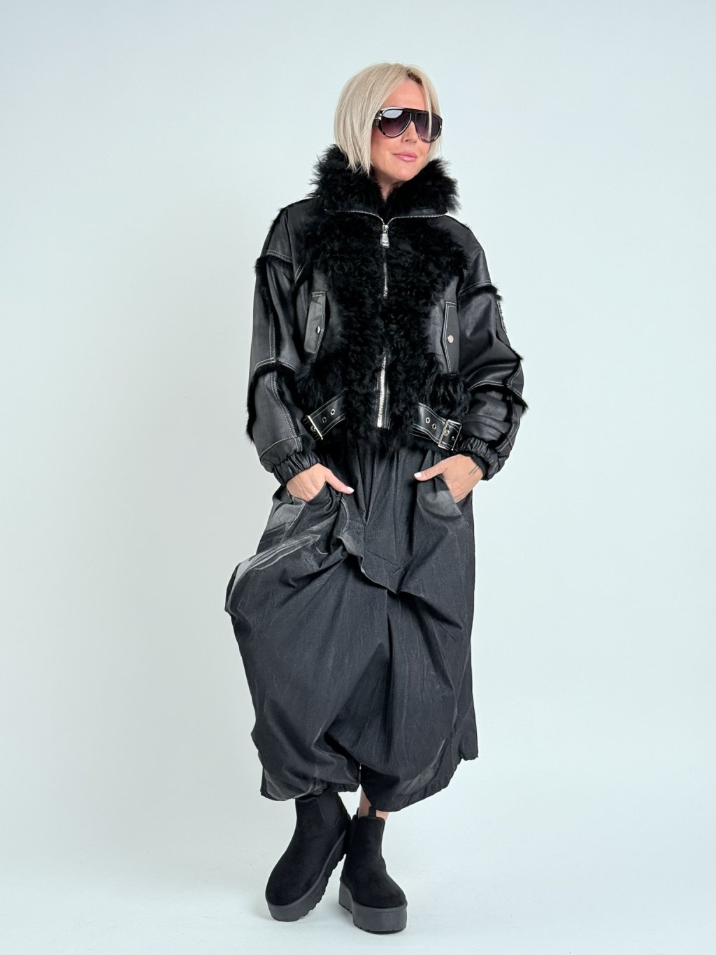 Nádherná, kožená bunda v kombinaci kůže, vlny a pravé kožešiny. Díky kožešinové podšívce zahřeje i ve větší zimě.
