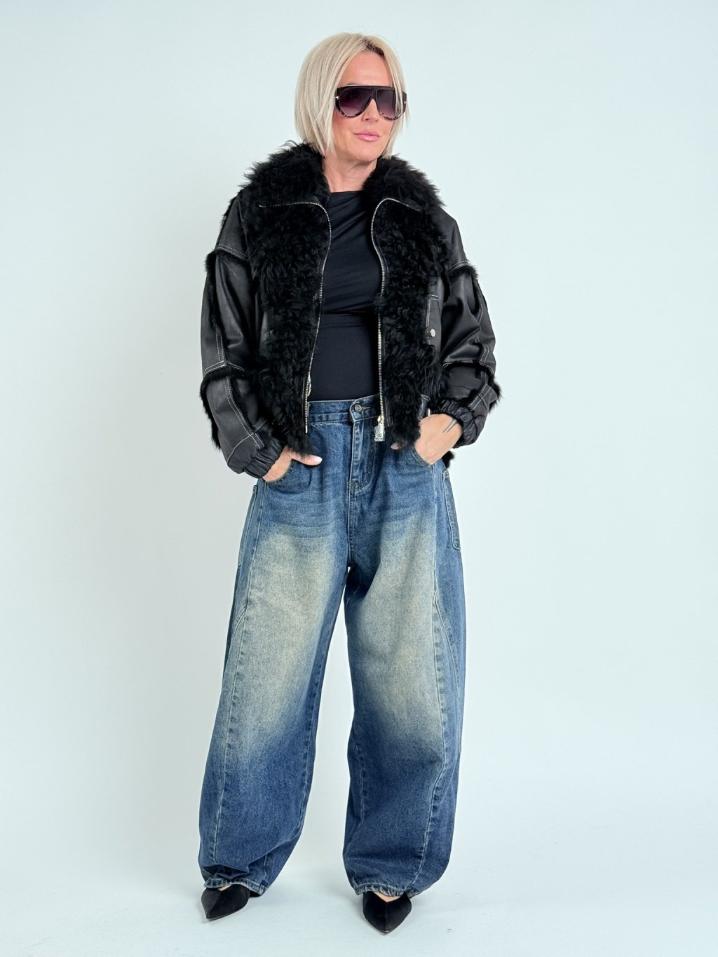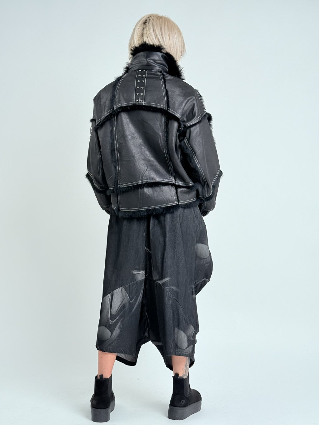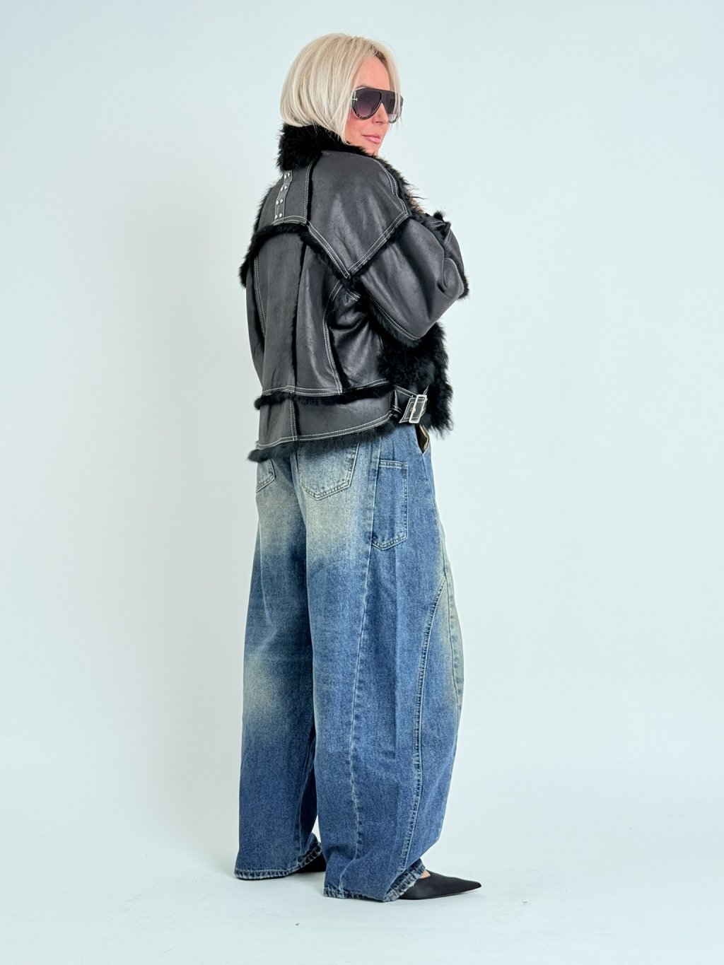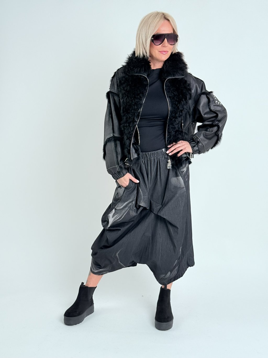 Nádherná, kožená bunda v kombinaci kůže, vlny a pravé kožešiny. Díky kožešinové podšívce zahřeje i ve větší zimě.
