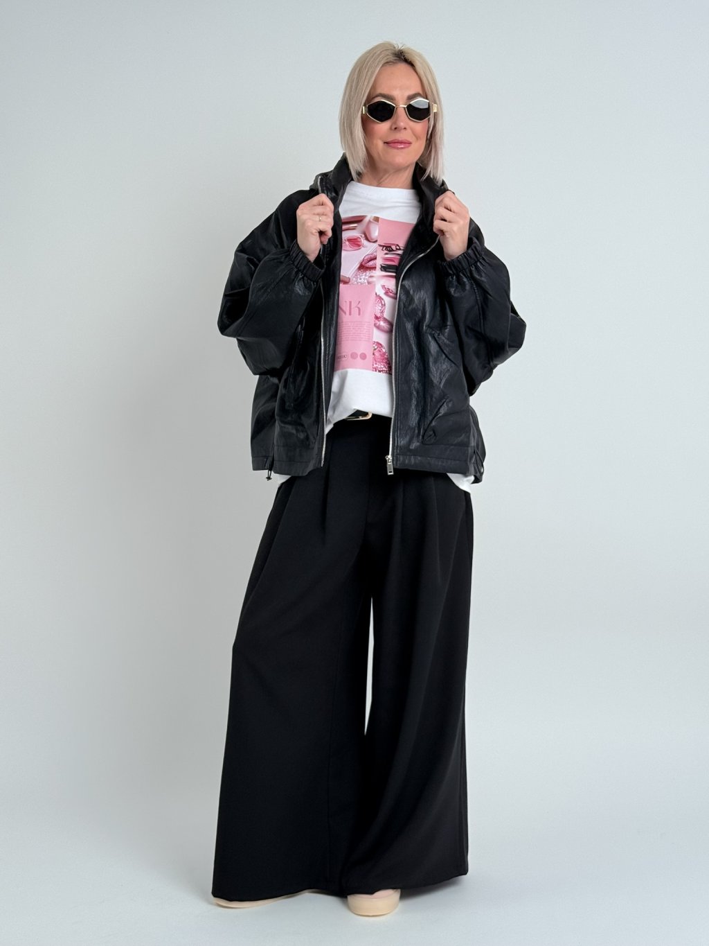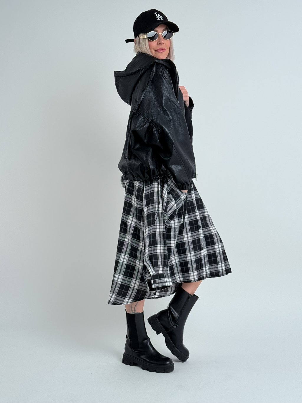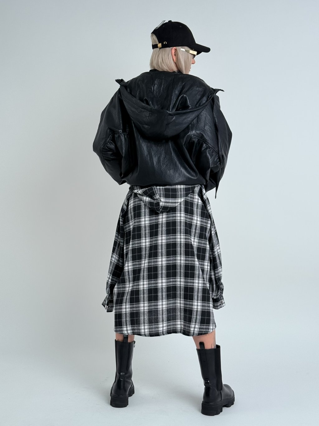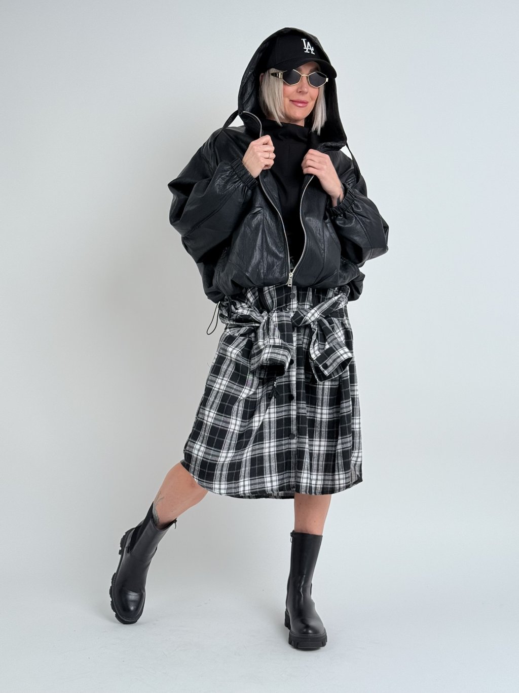 Super, oversize, koženková bunda s podšívkou a kapucí, se zapínáním na zip, v pase s možností stažení, na zádech lehce nařasená. Naprosto dokonalá.