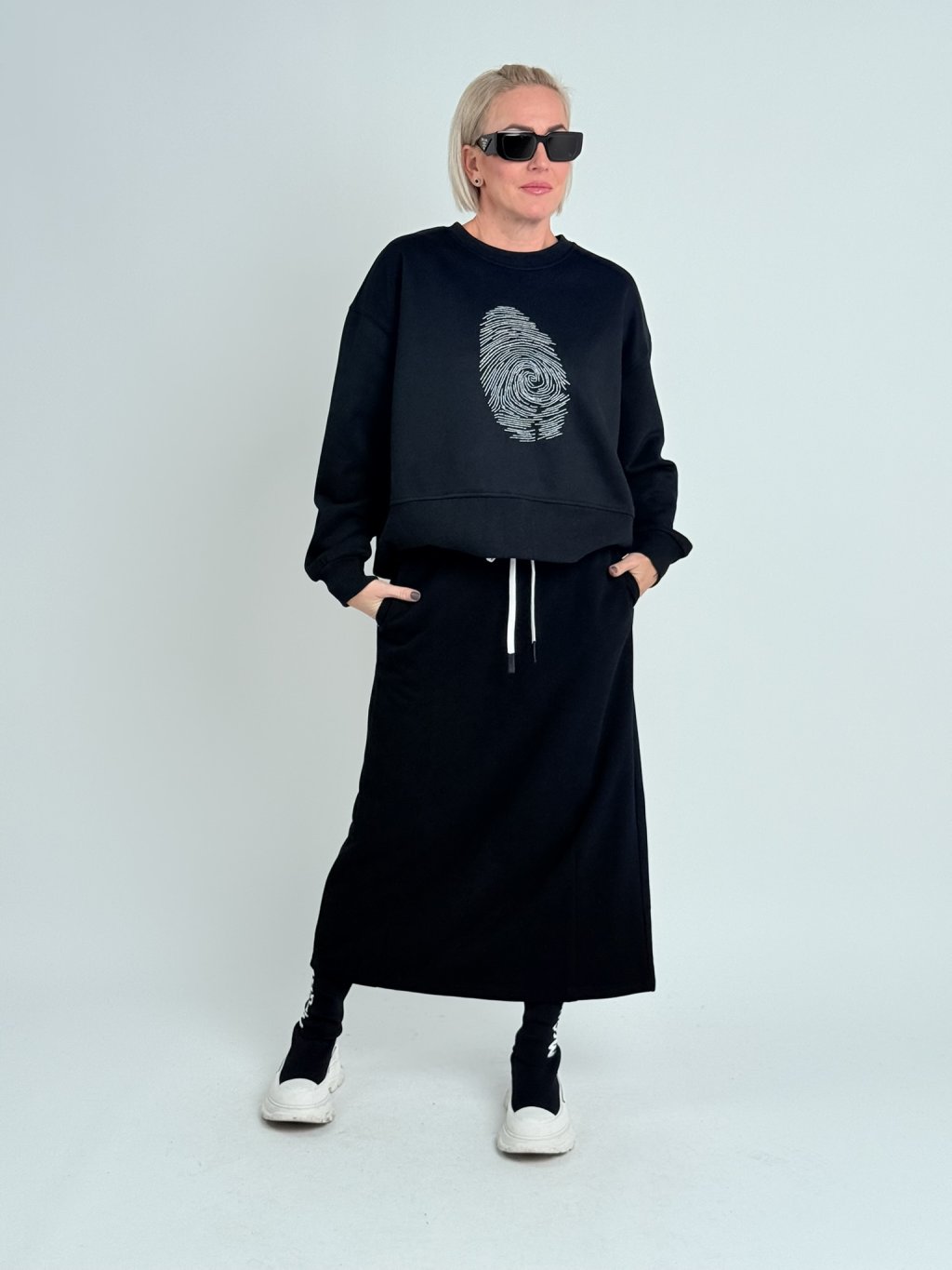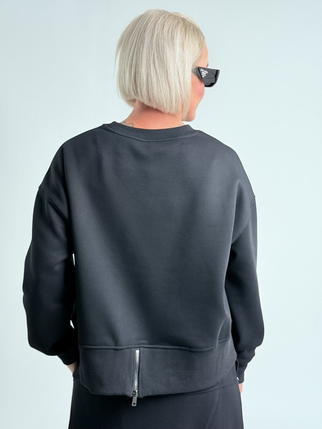 Nádherná, oversize mikina se stojákem, zajímavě řešeným dolním krajem, vzadu, na nápletu se zipem.