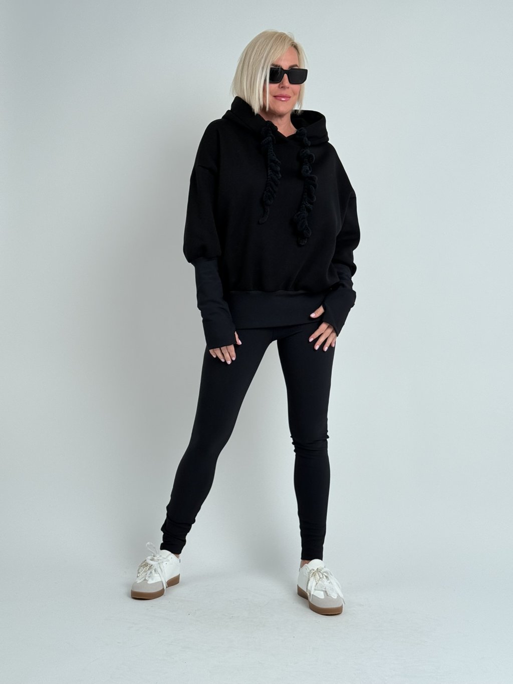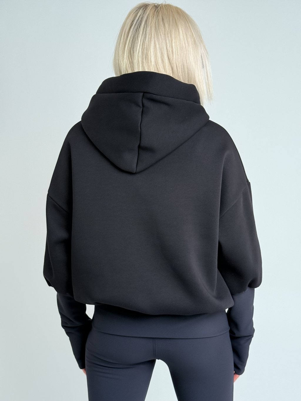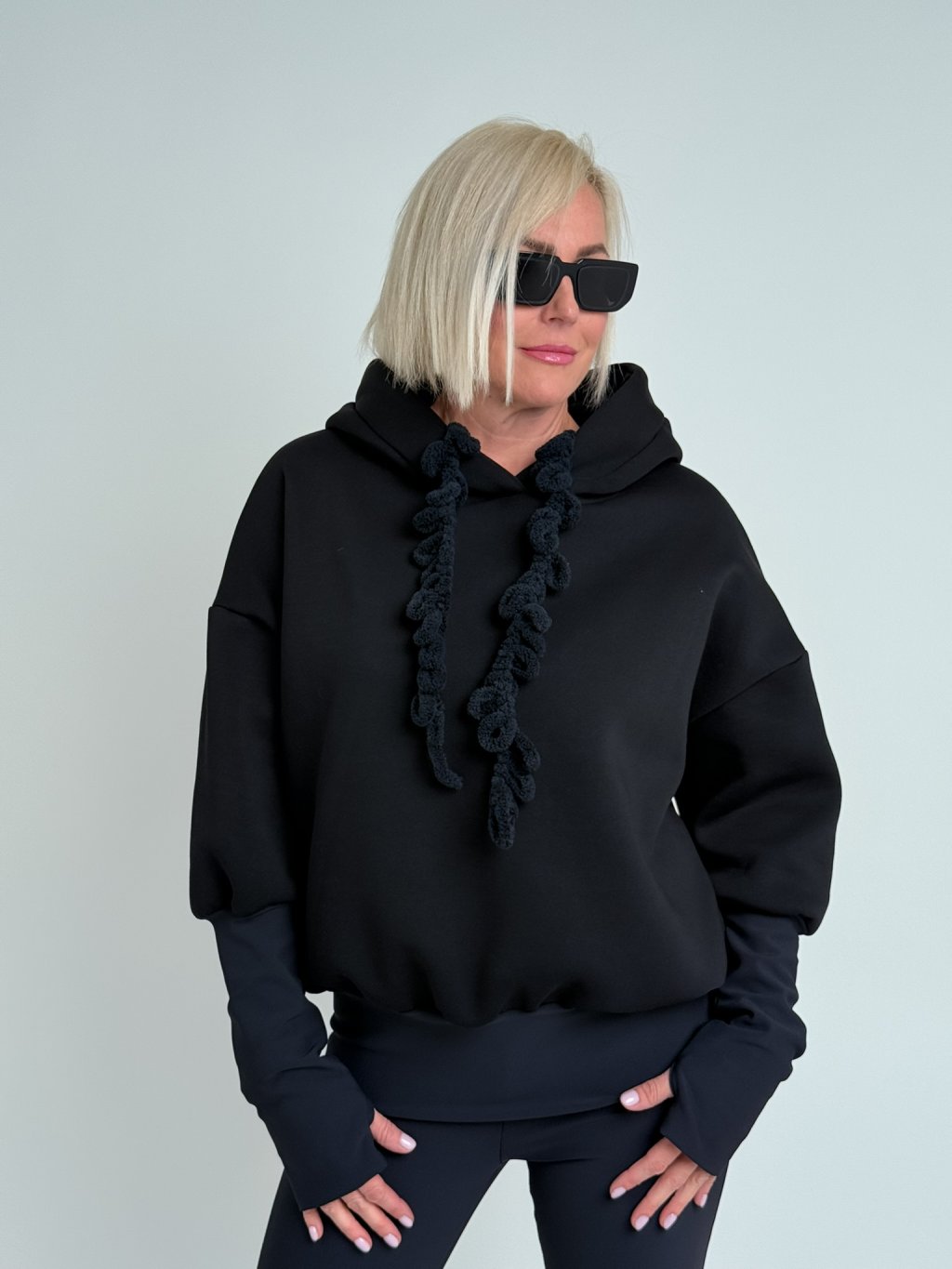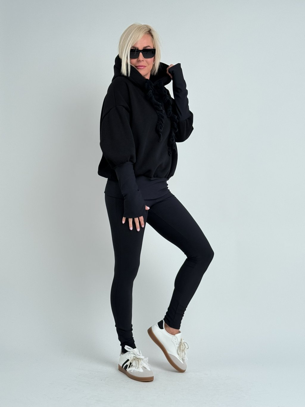 Krásná teplá mikina s kapucí a vysokými náplety na rukávech s otvorem na palec a pružným nápletem v pase.