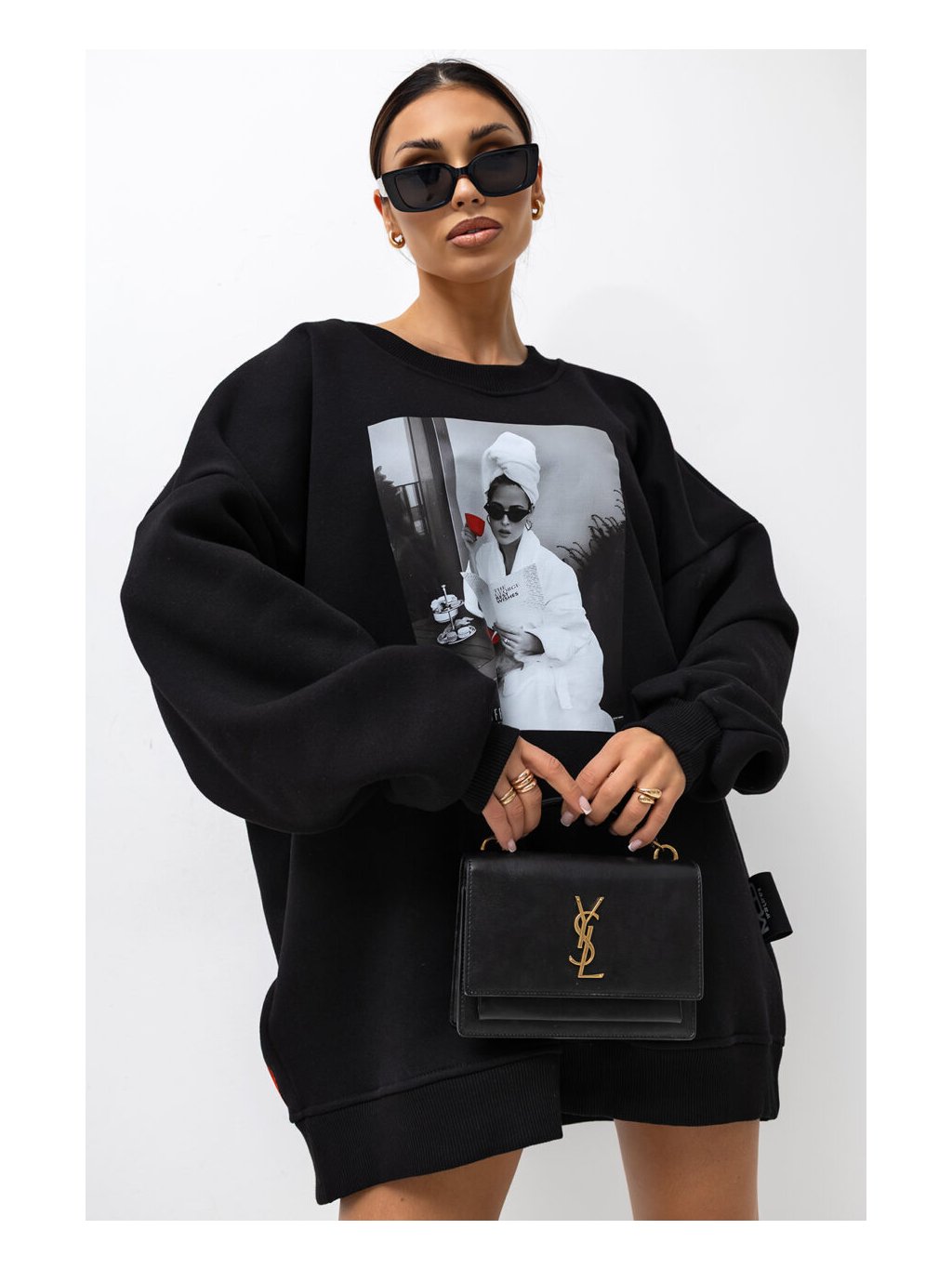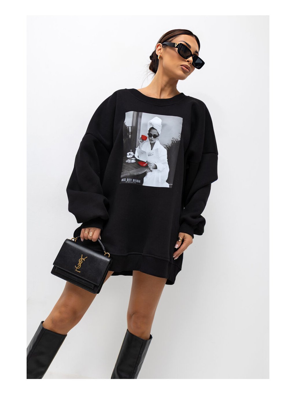 Krásná, teplá, volnější, delší mikina s obrázkem na předním dílu.