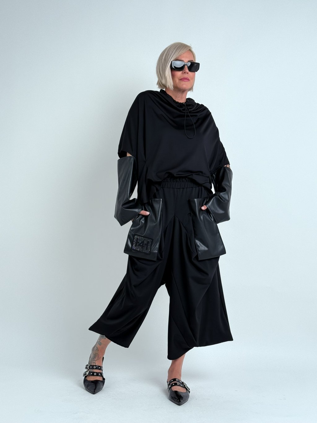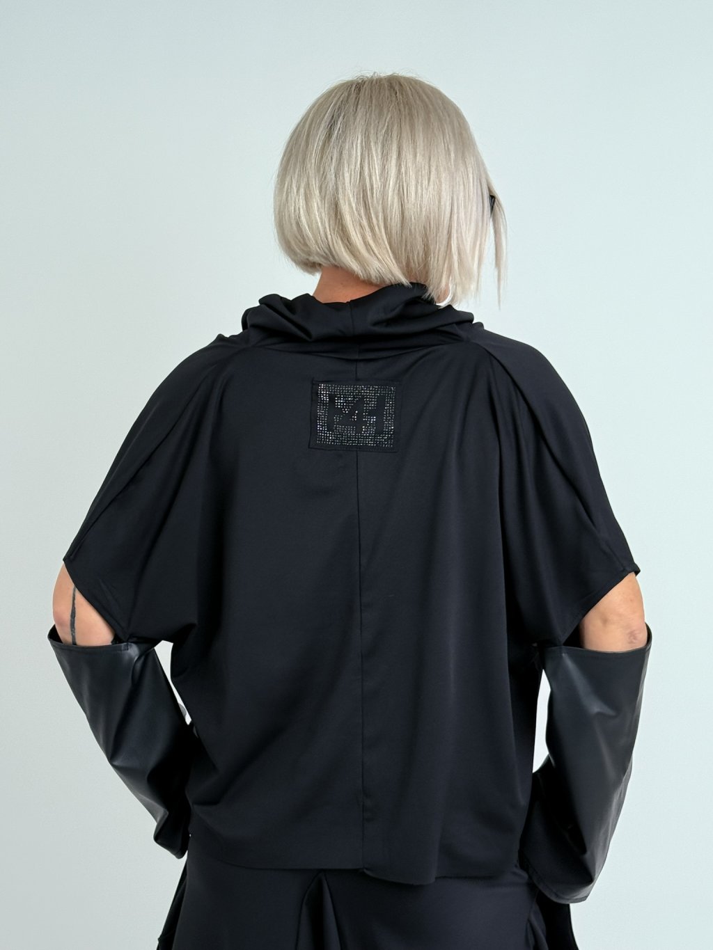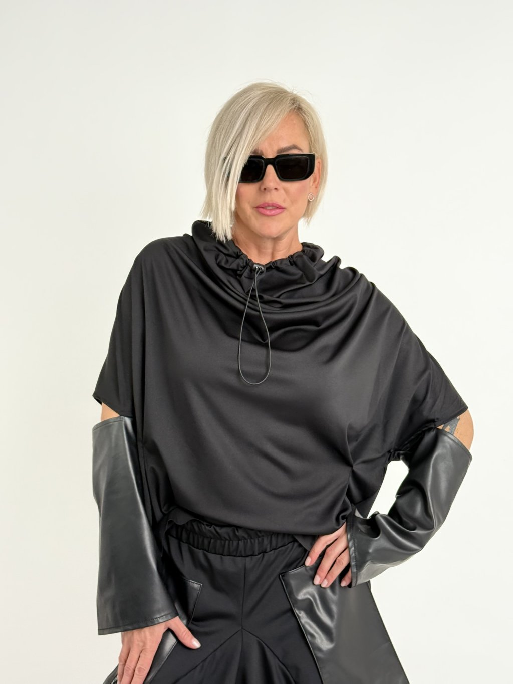 Luxusní tunika s dlouhým rukávem v kombinaci s koženkou. stojákem na stažení. MĚŘTE, TUNIKY JSOU VĚTŠÍ!!!!!