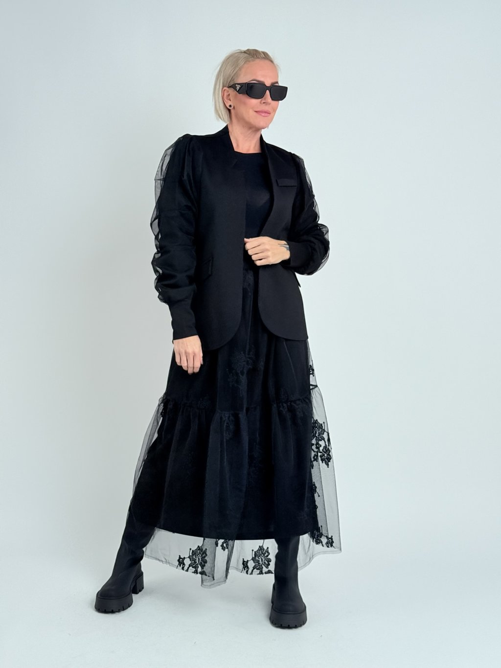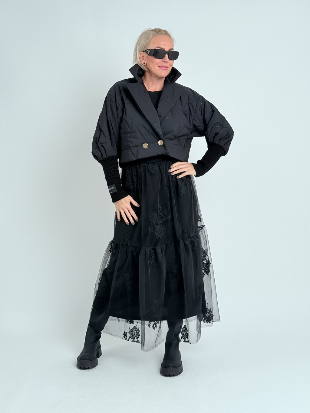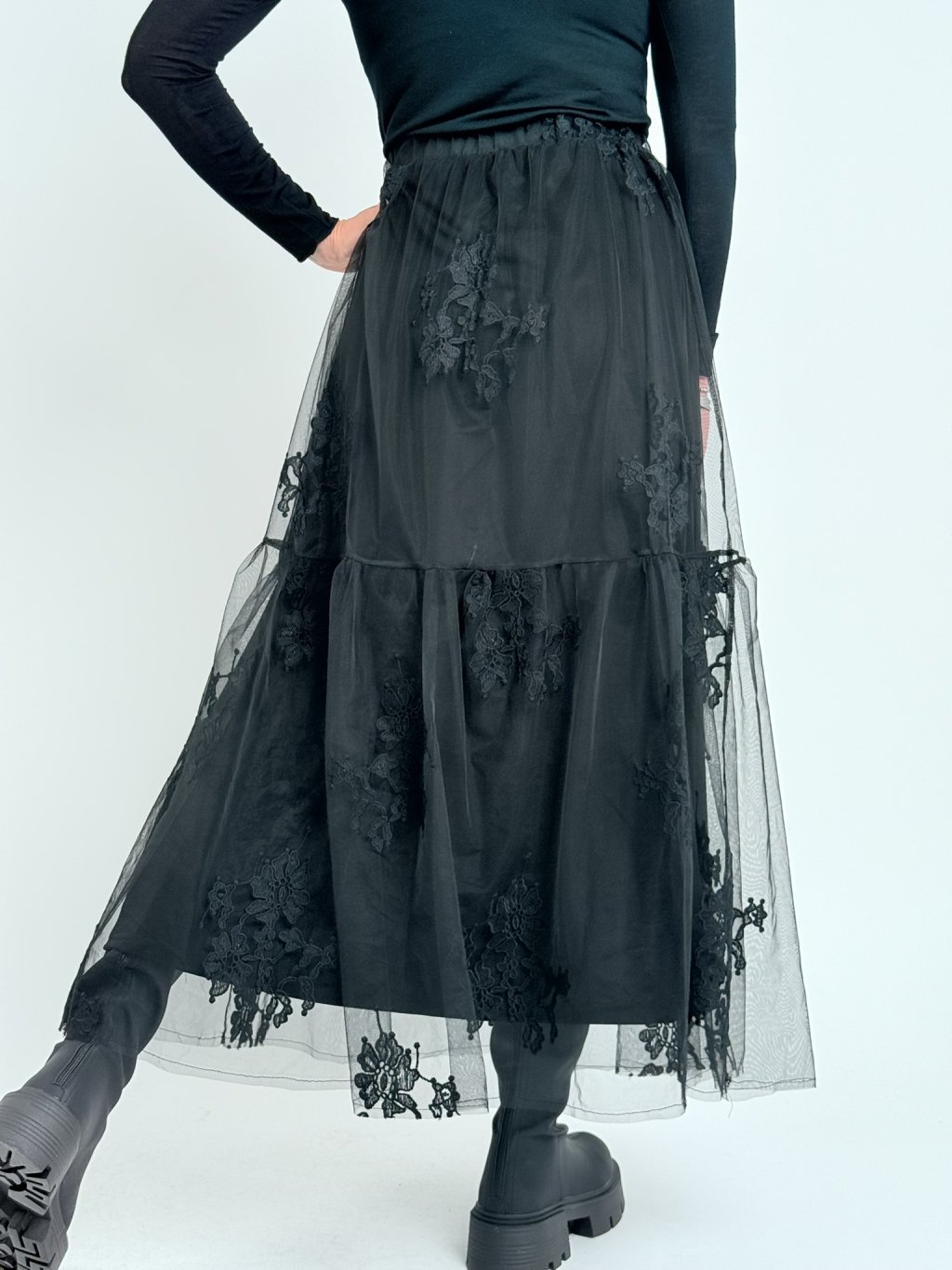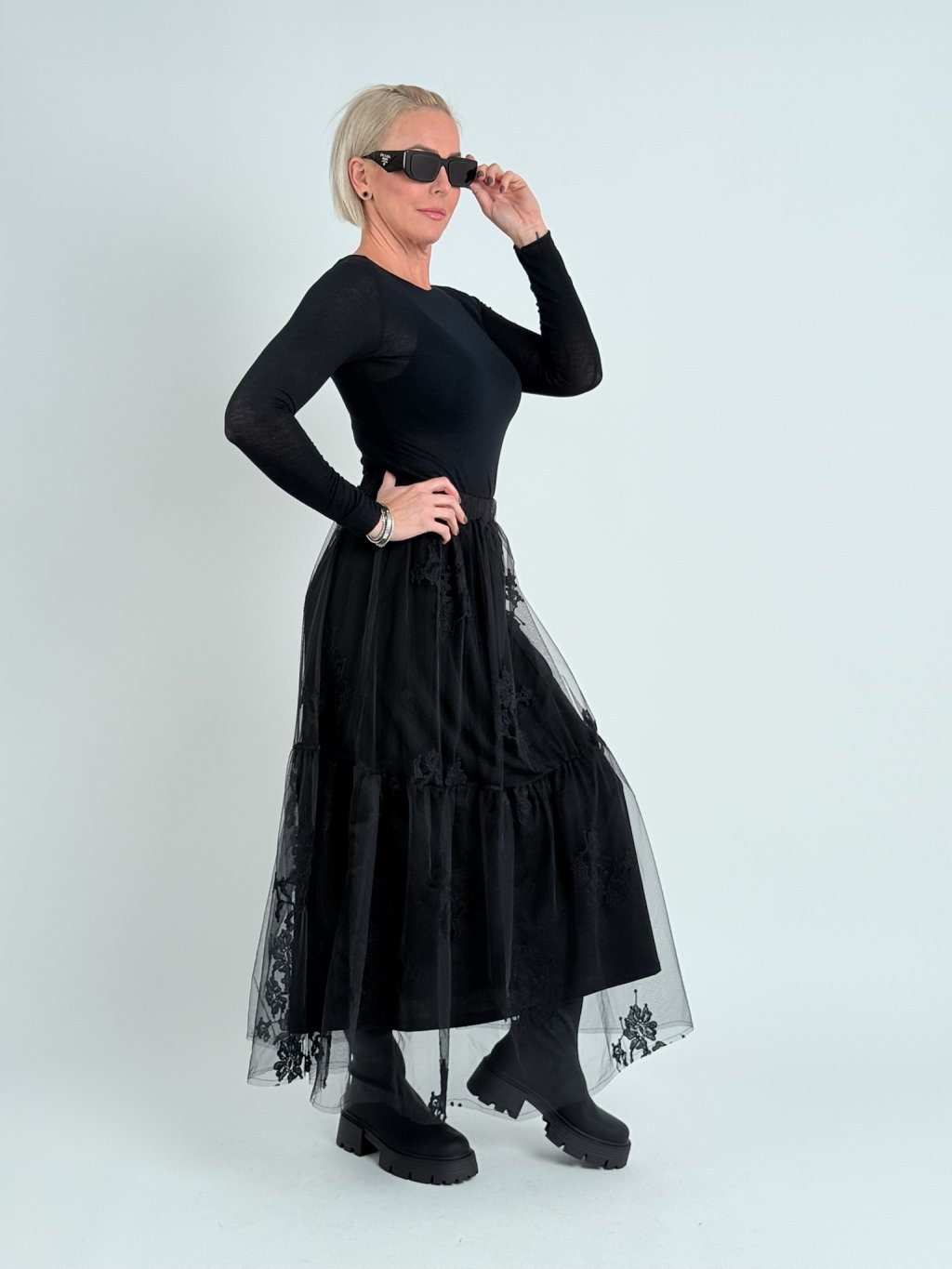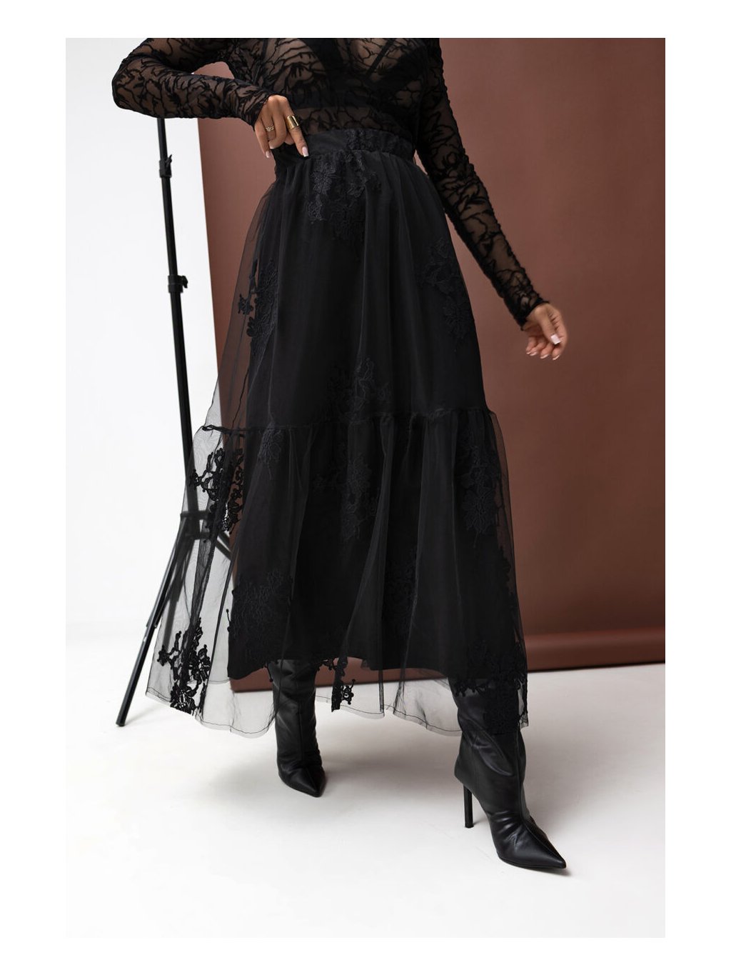 Luxusní, dlouhá, tylová sukně s plastickým vzorem, v pase do gumy.