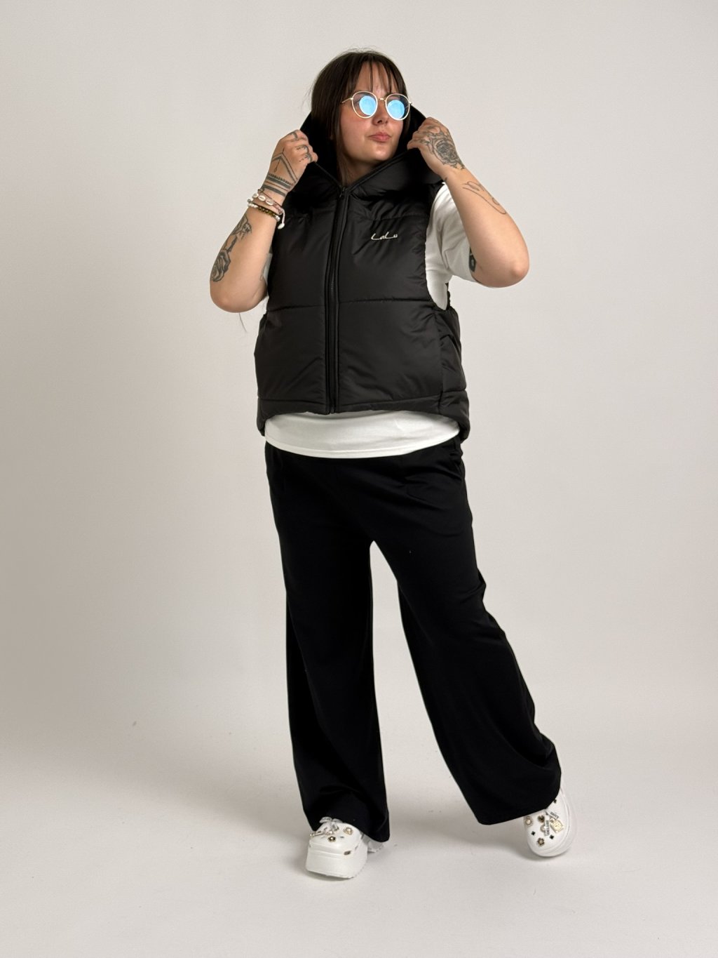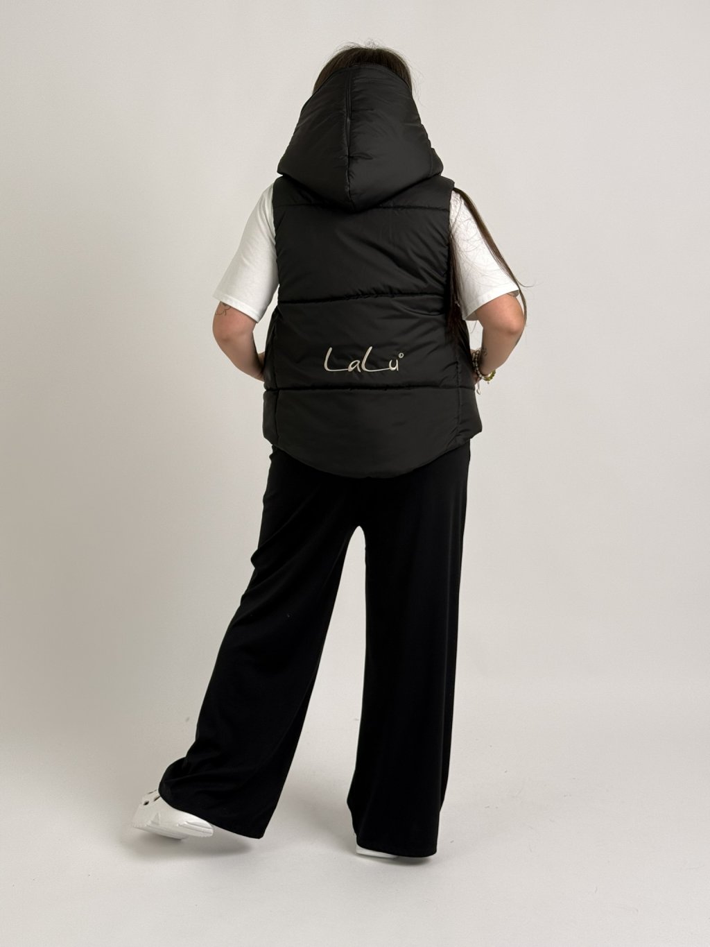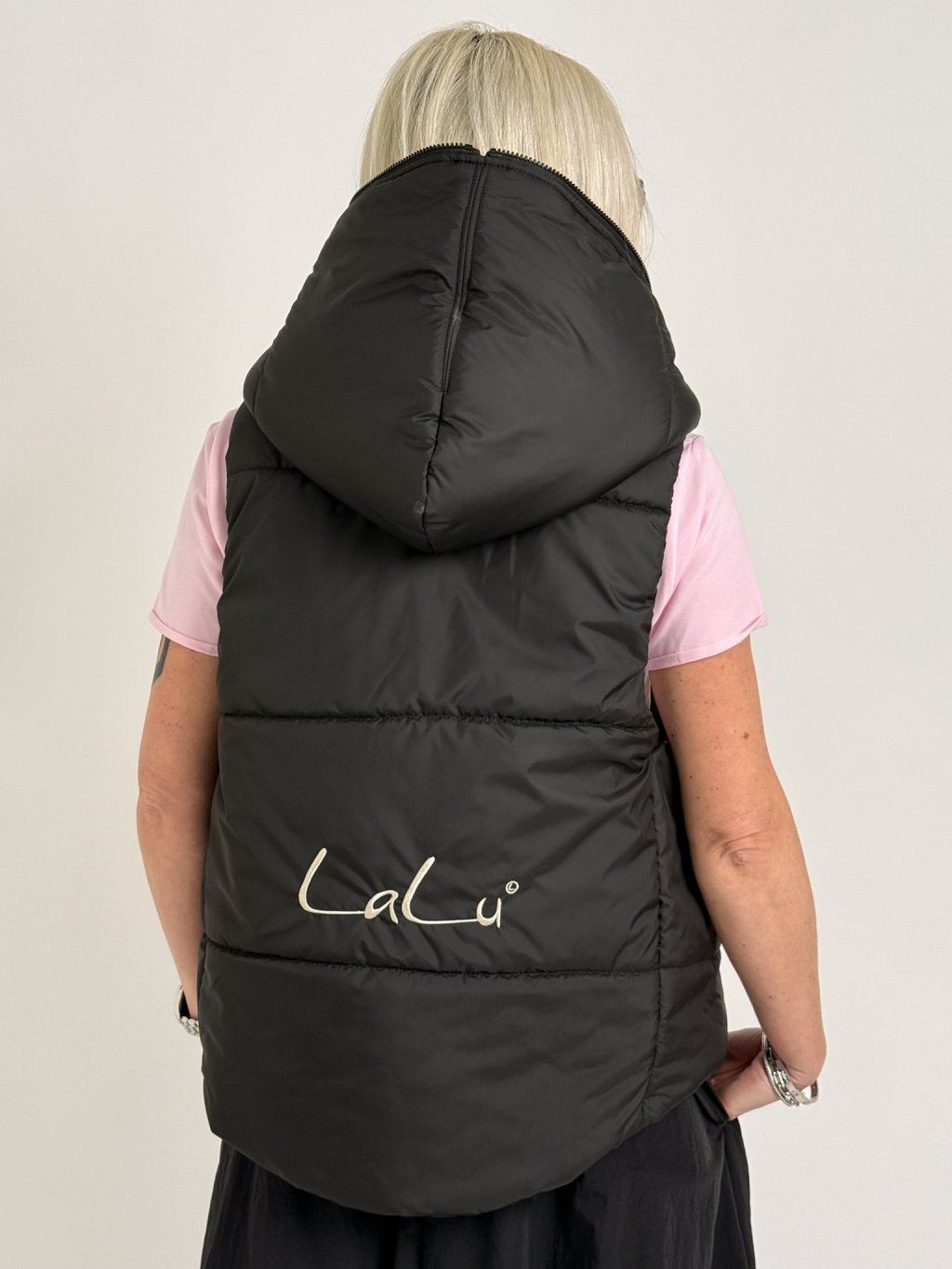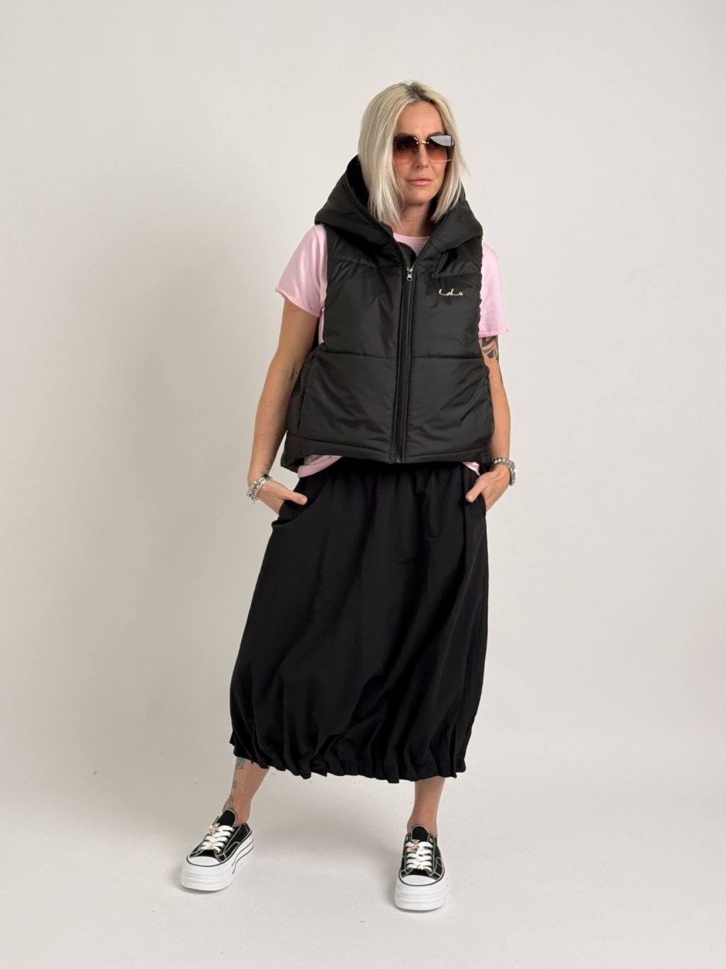 Dokonalá, prošívaná vesta se zapínáním na zip, který prochází celou kapucí, kratším předním a delším zadním dílem a hlubokými průramky. Vhodná i na vrstvení.