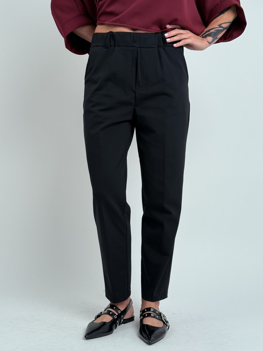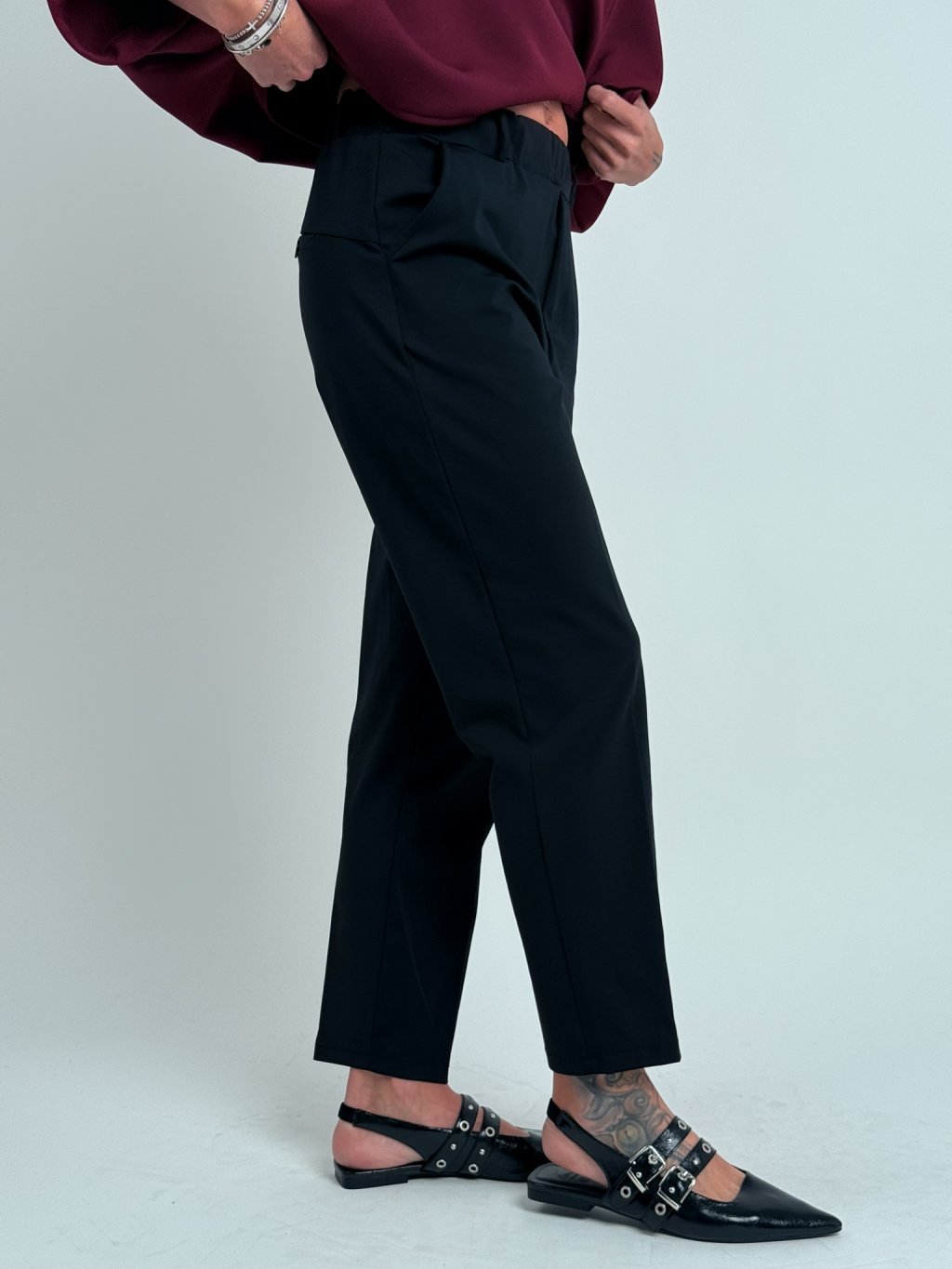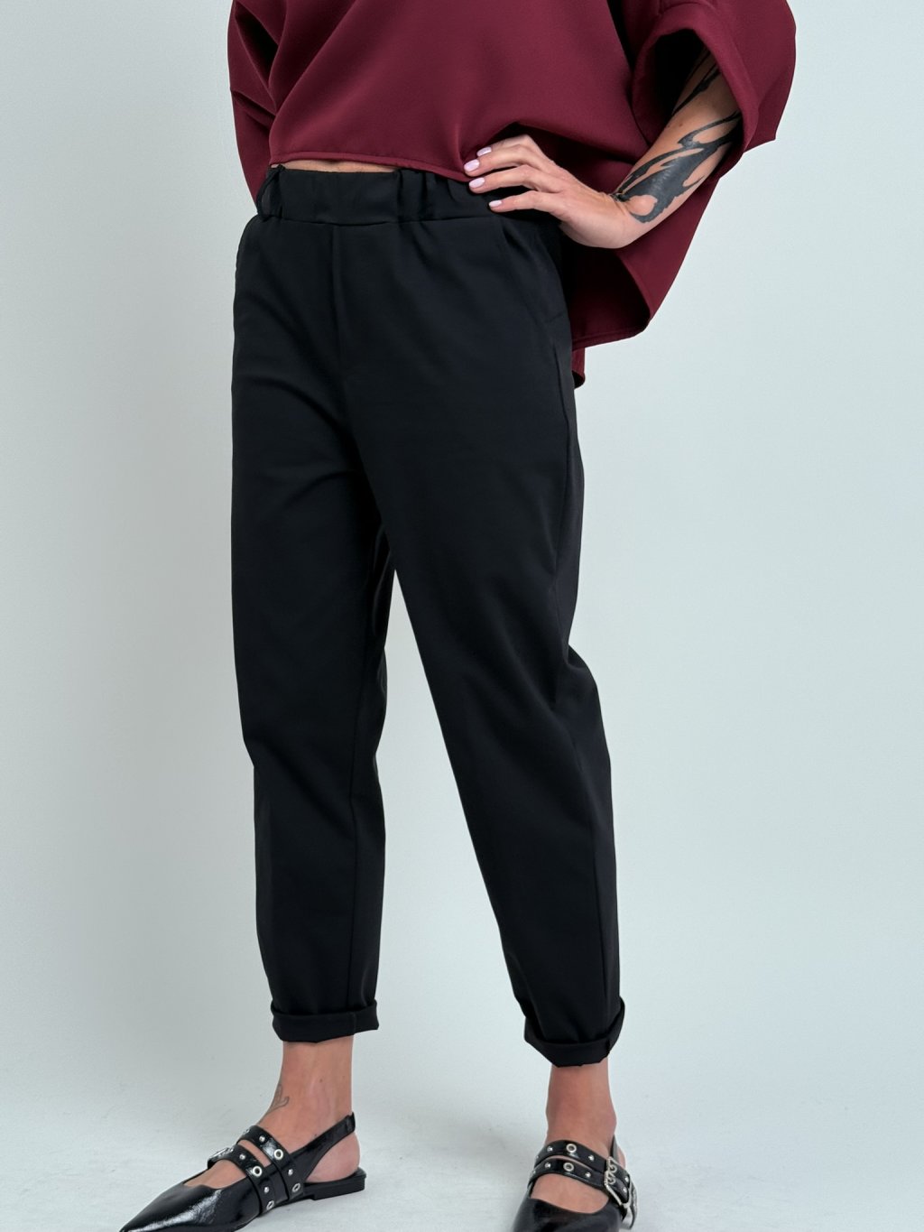 Super kalhoty v cigaretovém střihu, s postranními kapsami, gumou a poutky v pase. Skvělé k saku i delším svetrům.