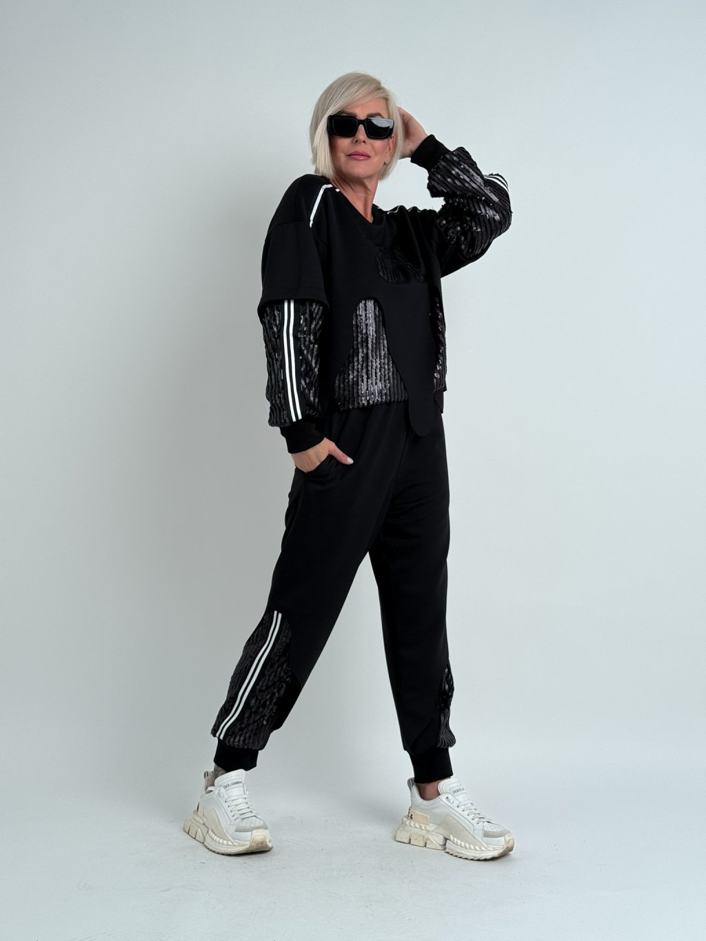 Černé kalhoty s flitry NESO 690