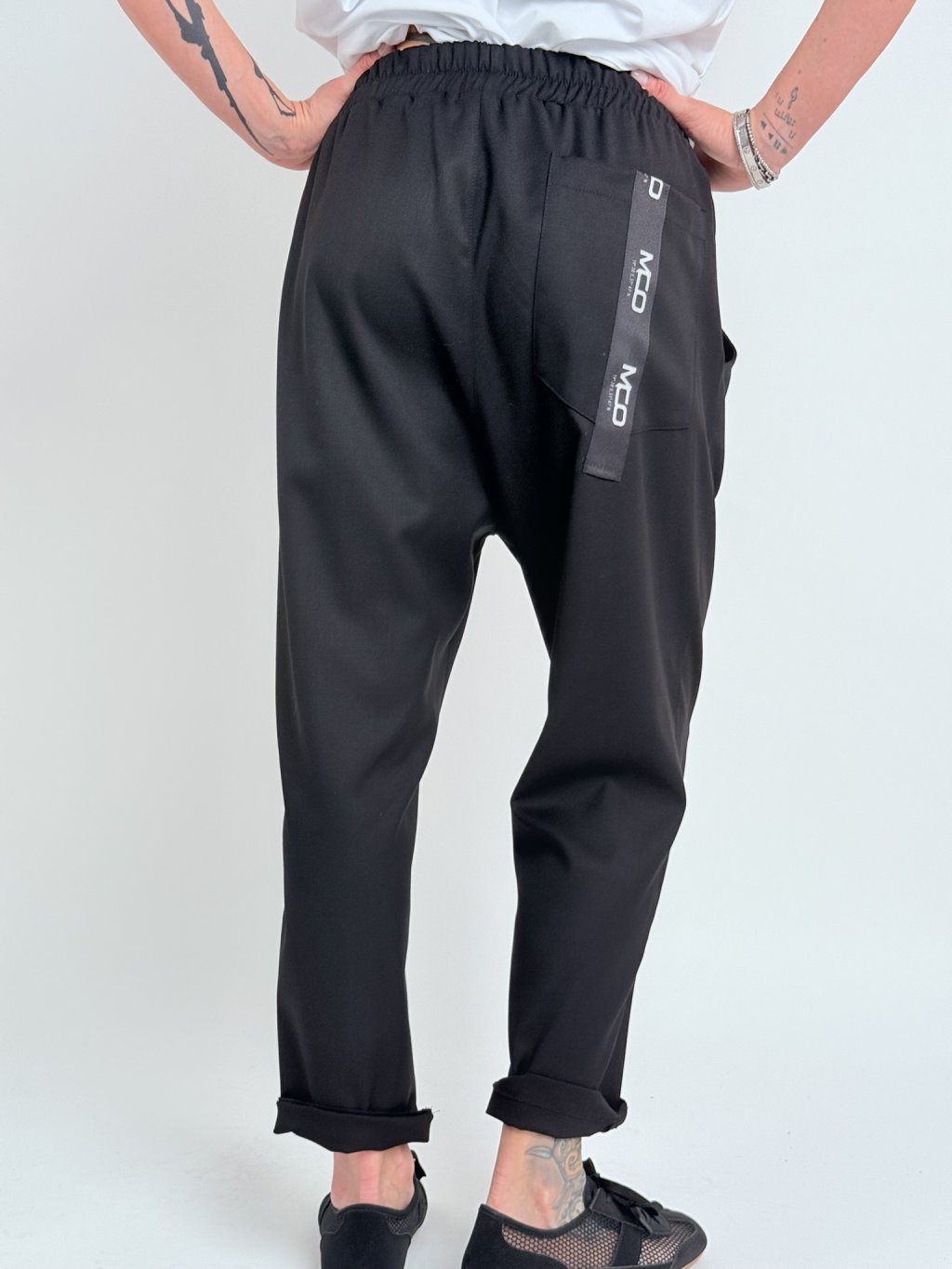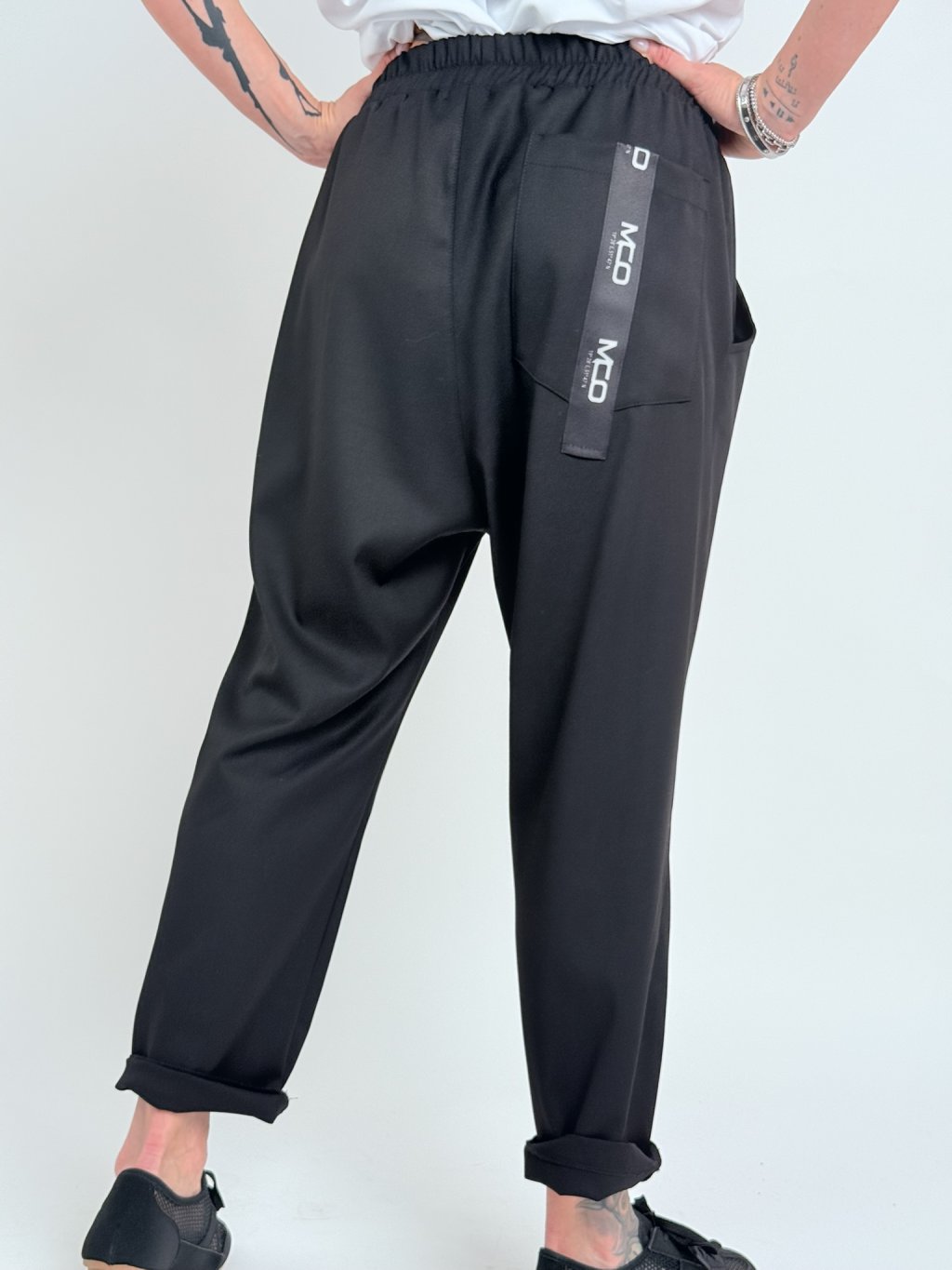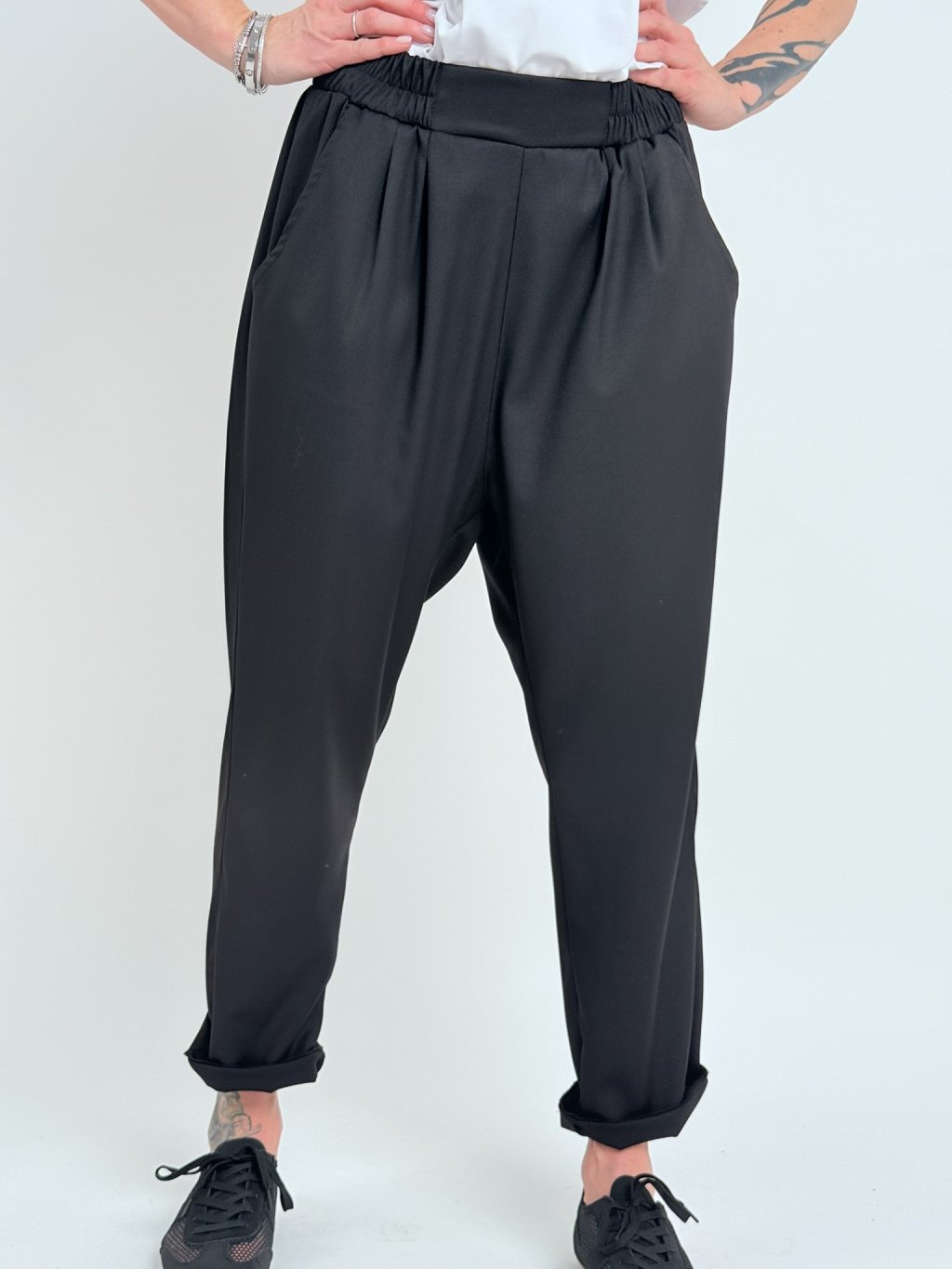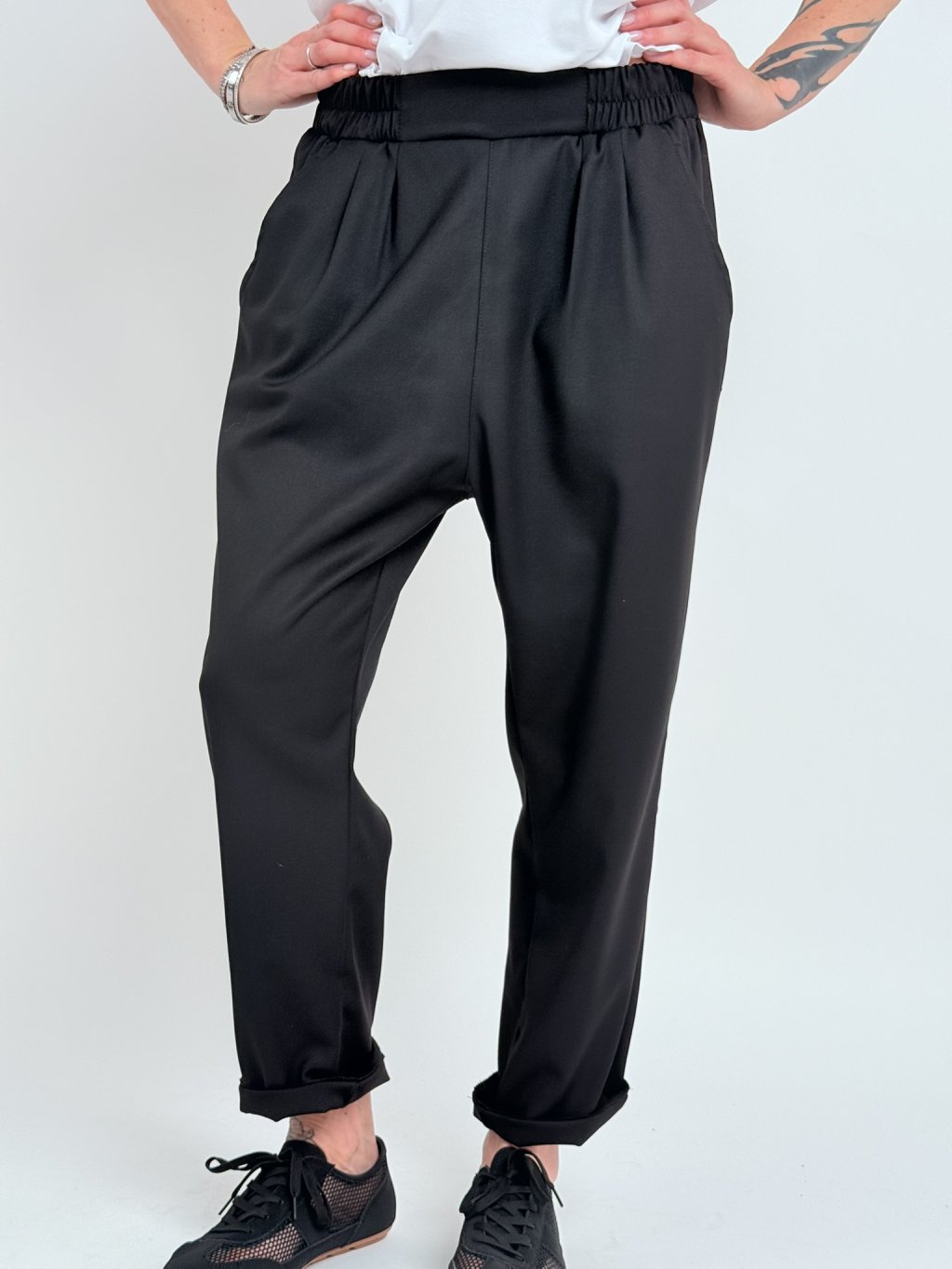 Skvělé, jednoduché, rovné kalhoty v pase do gumy, se sámky a postranními kapsami.