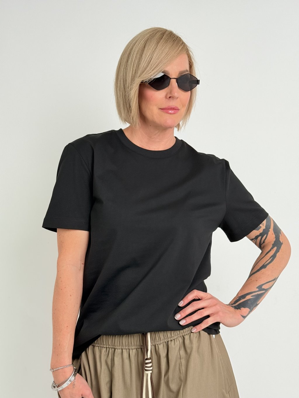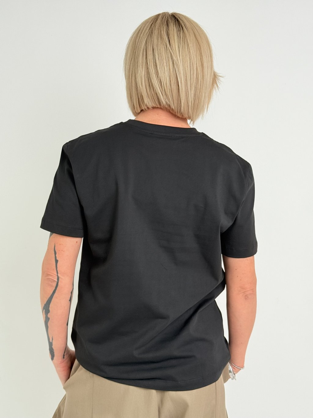 Jednoduché basic triko s krátkým rukávem a kulatým výstřihem.