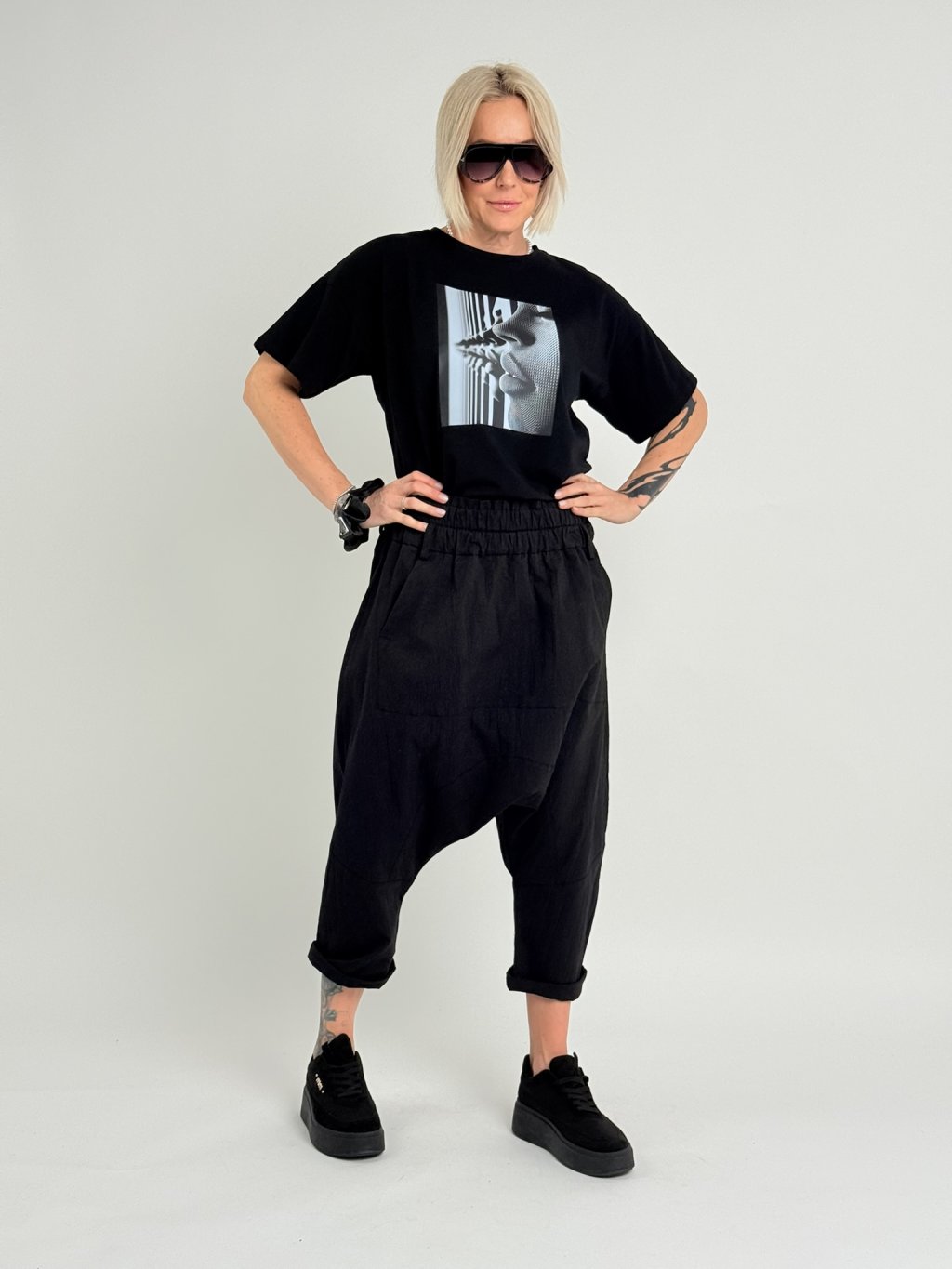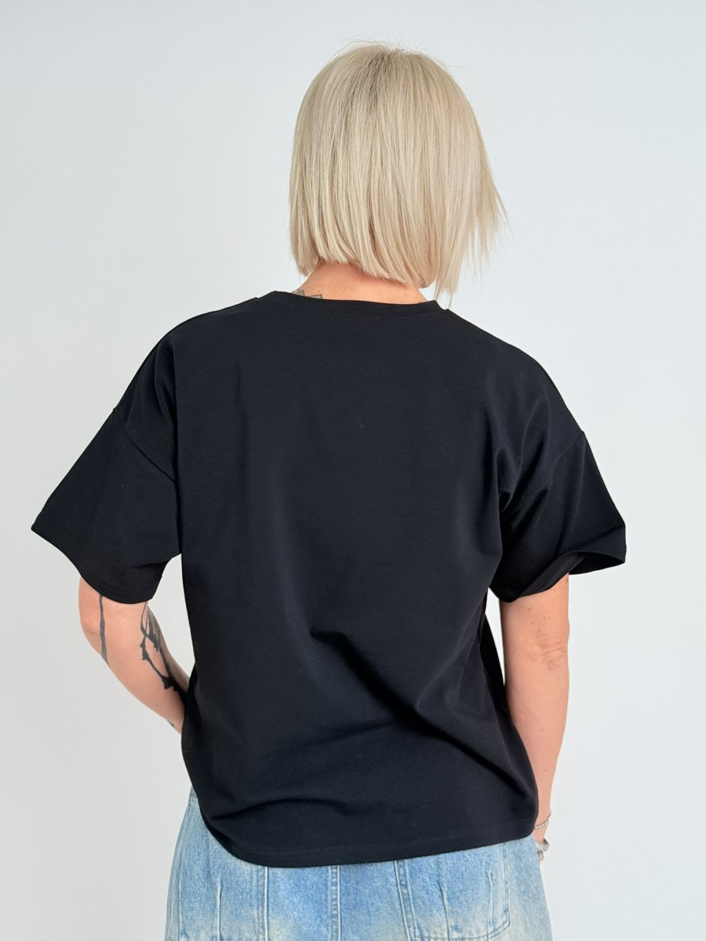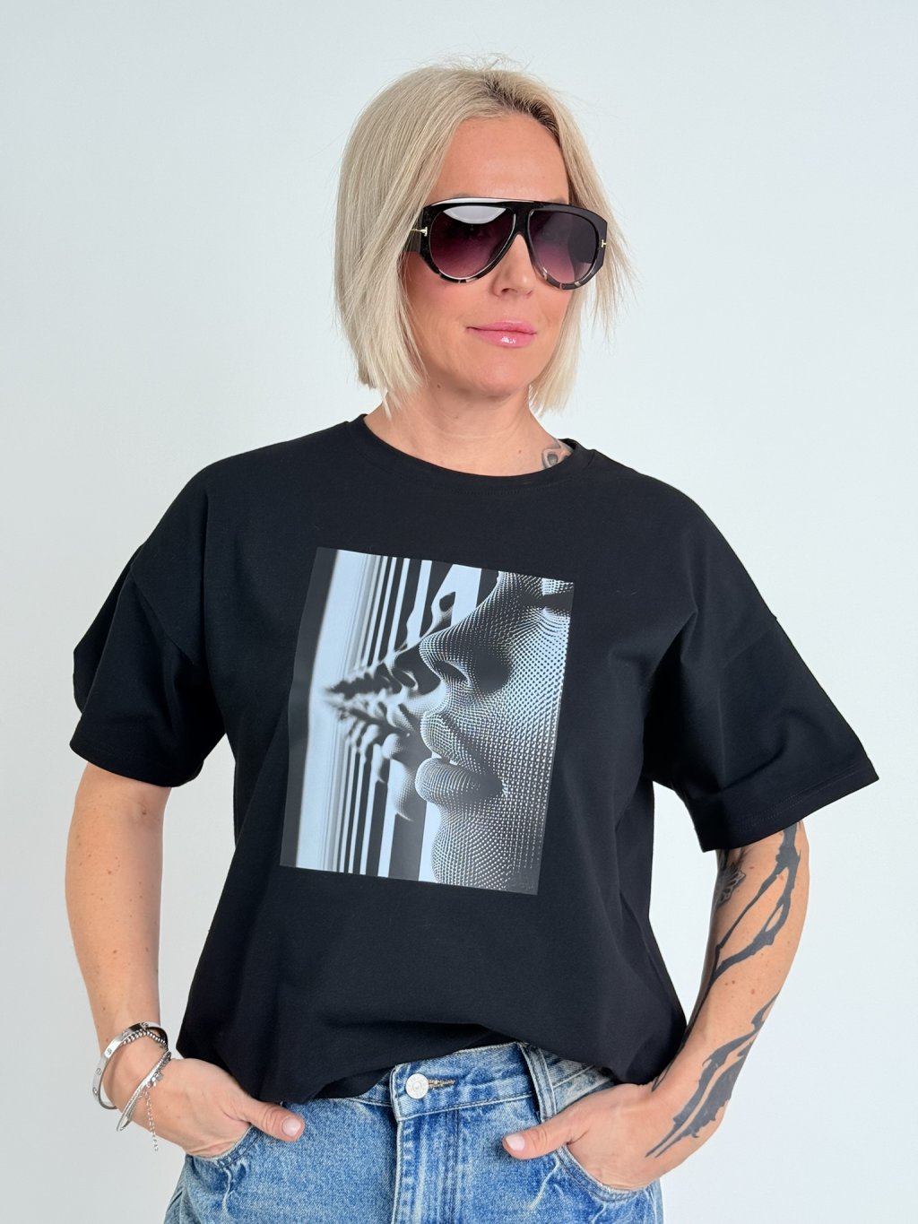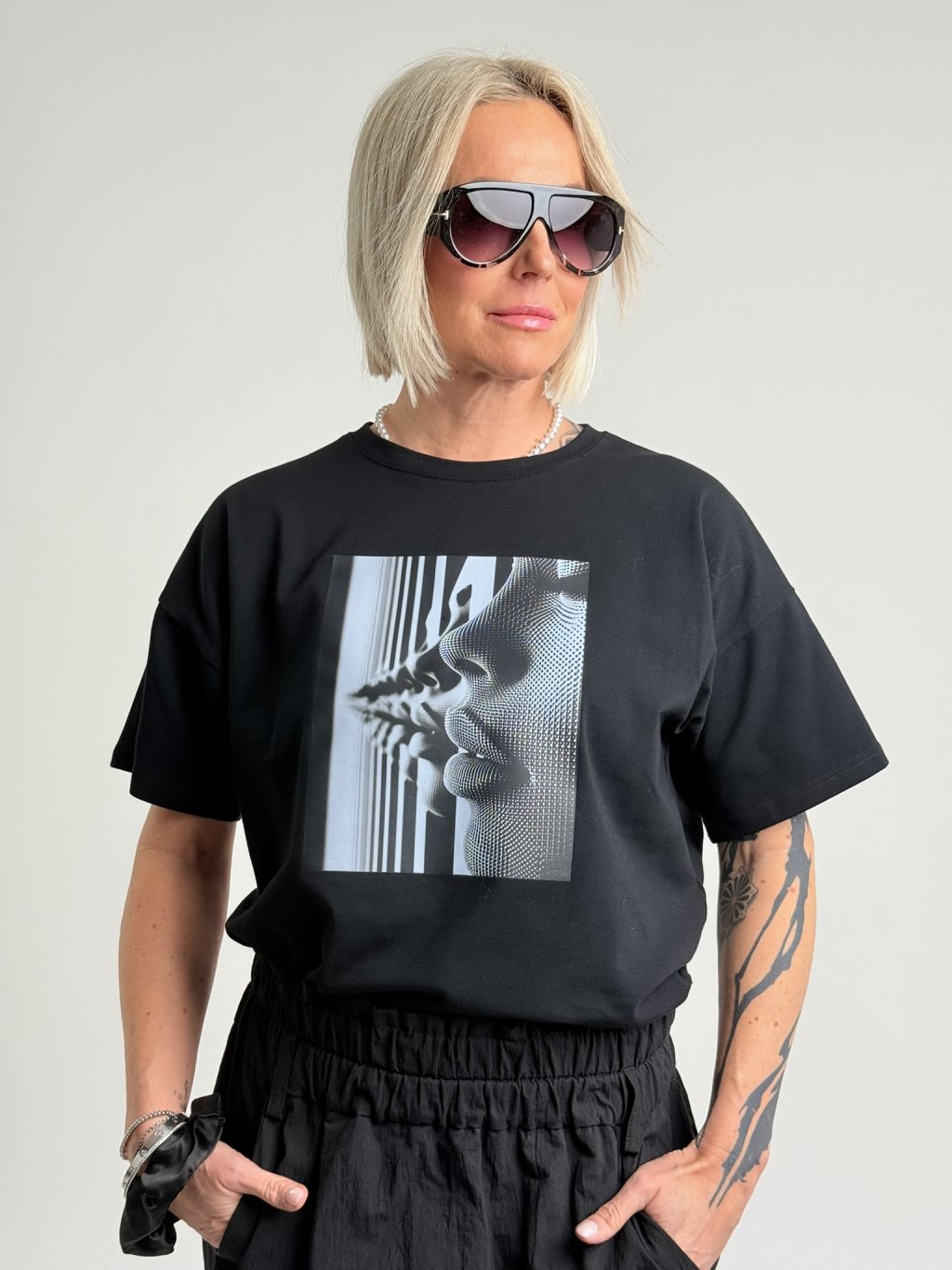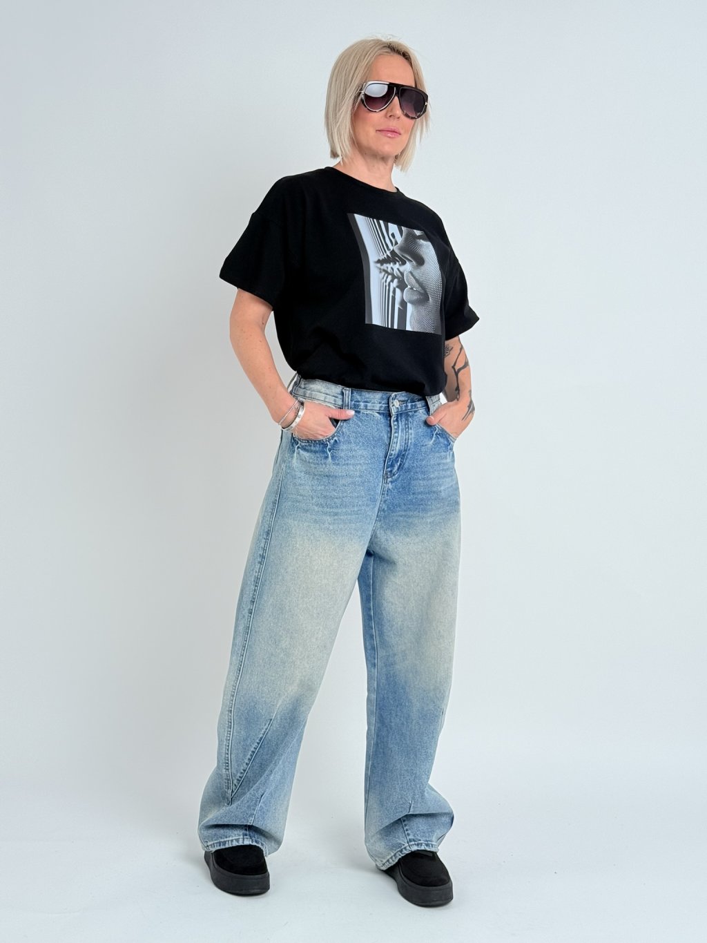 Super volnější triko s kulatým výstřihem, rukávem k lokti a potiskem na předním dílu.