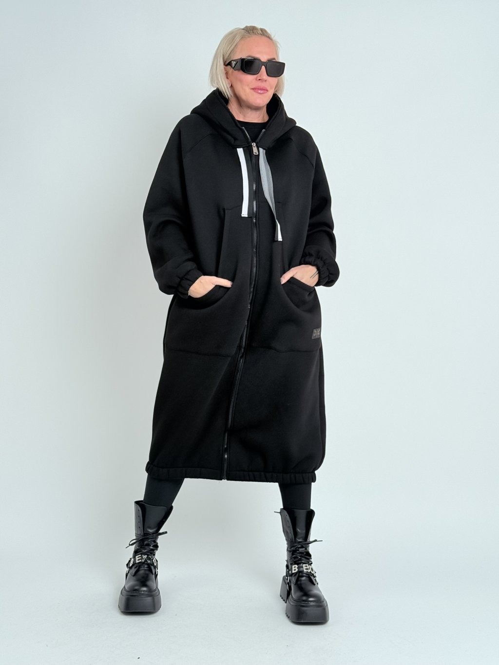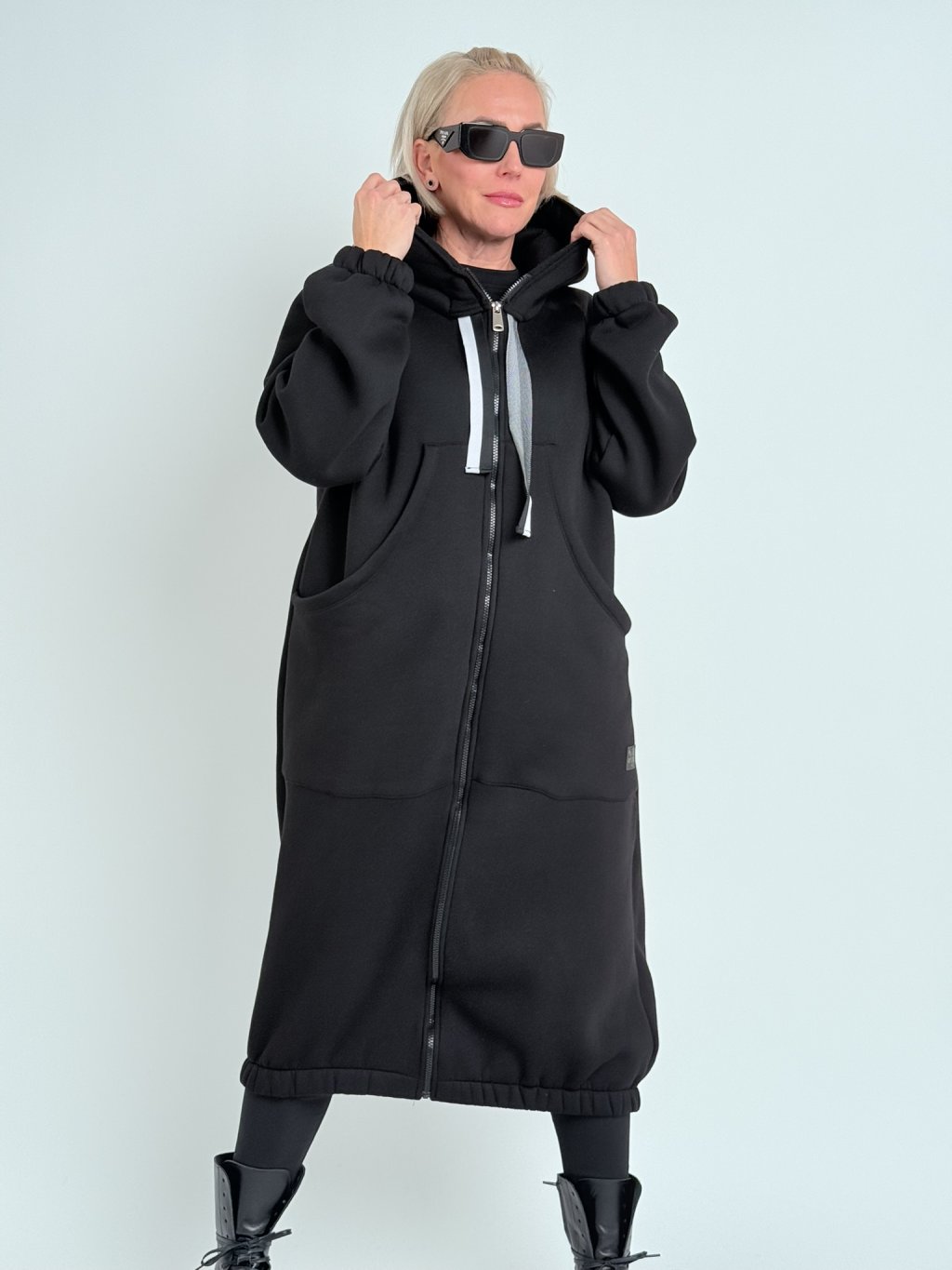 Skvělý, oversize, teplákový kardigan s kapucí, velkou klokankou na předním dílu a zapínáním na zip. Rukávy i dolní lem jsou zakončeny gumou