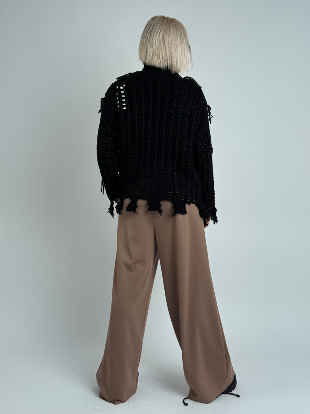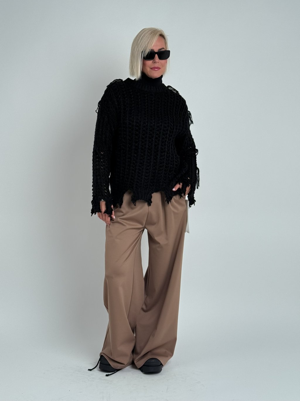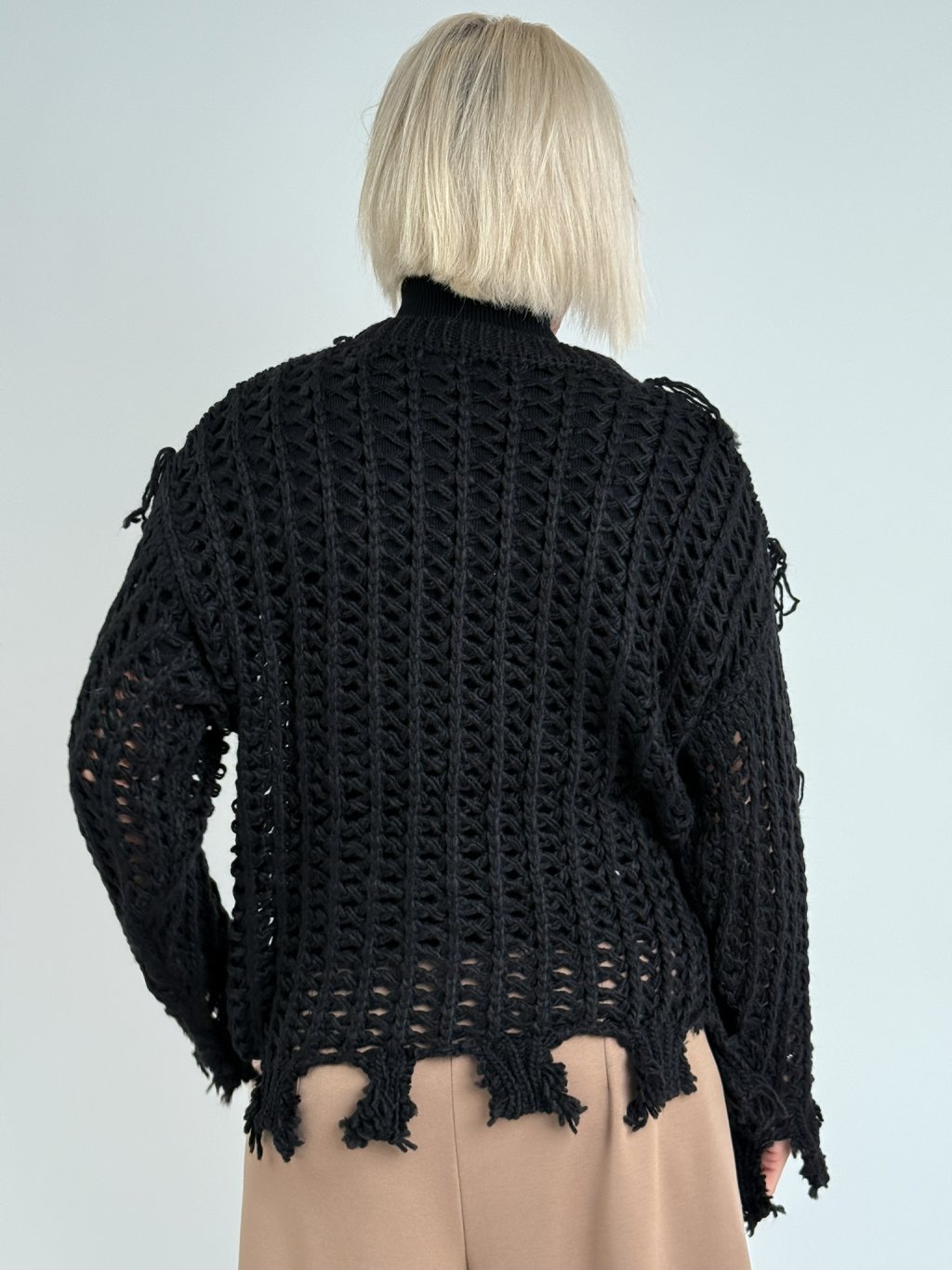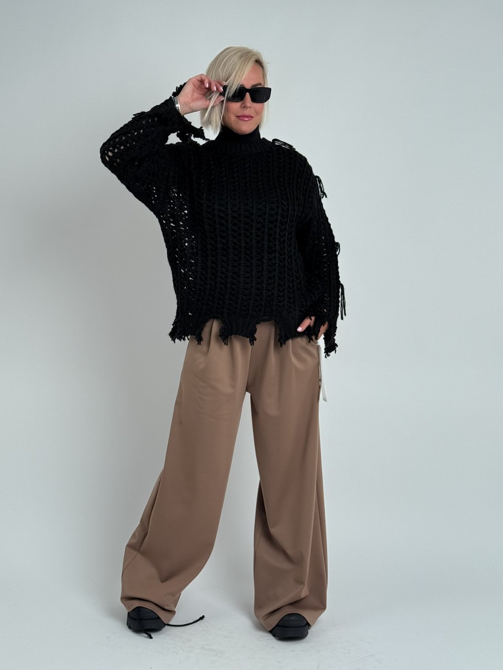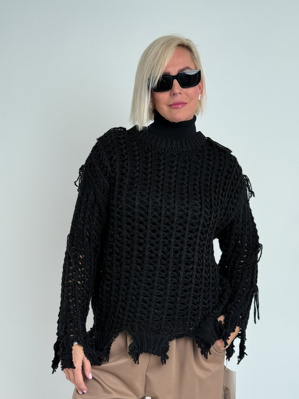 Dokonalý svetr s velkými oky, měkký, nekousavý.