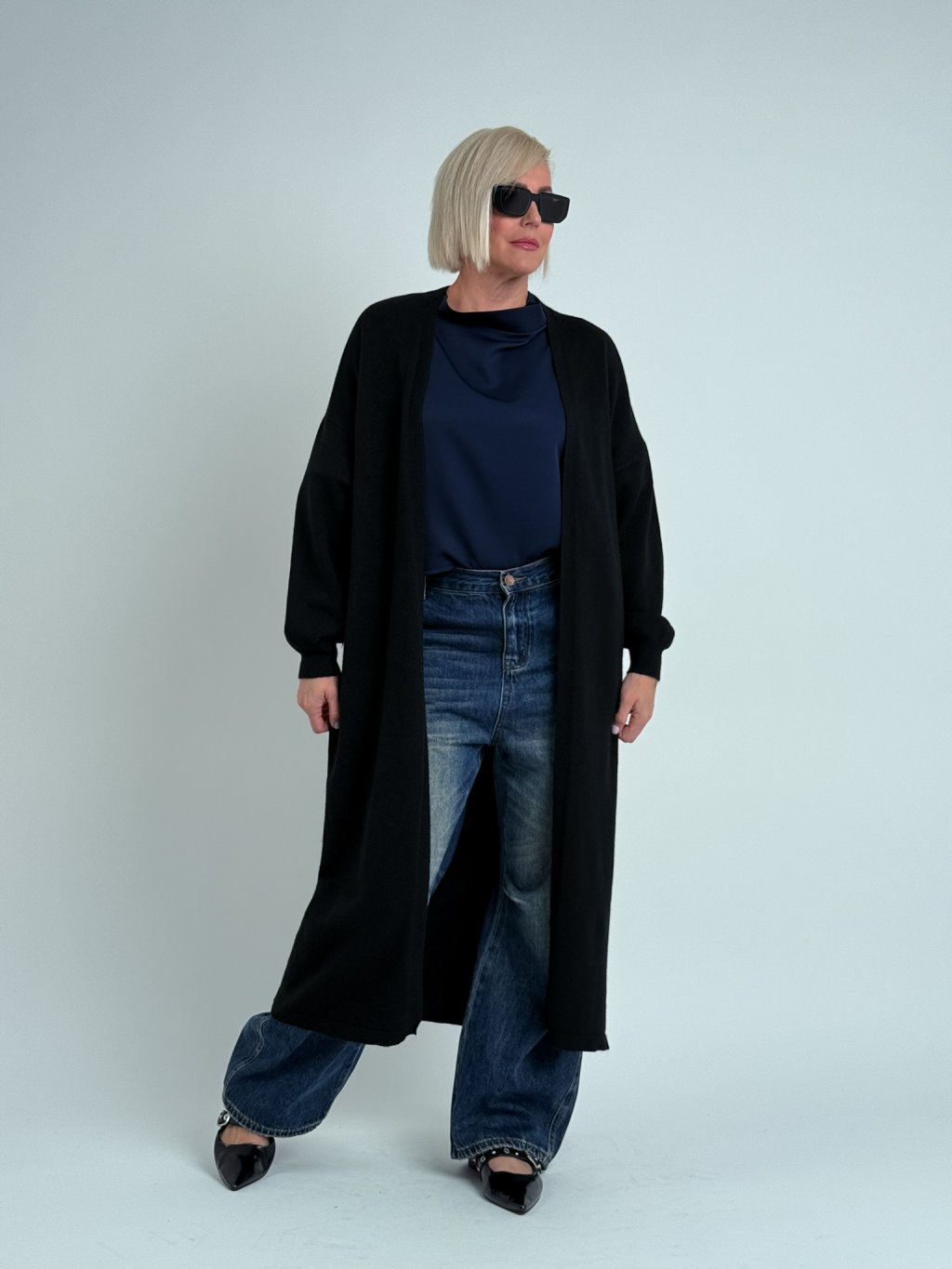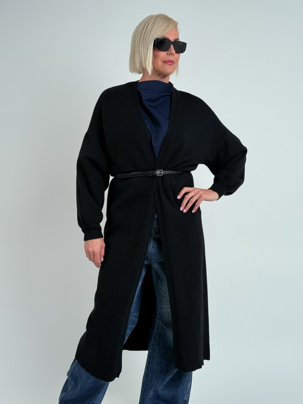 Skvělý, svetrový kardigan, bez zapínání, s páskem.