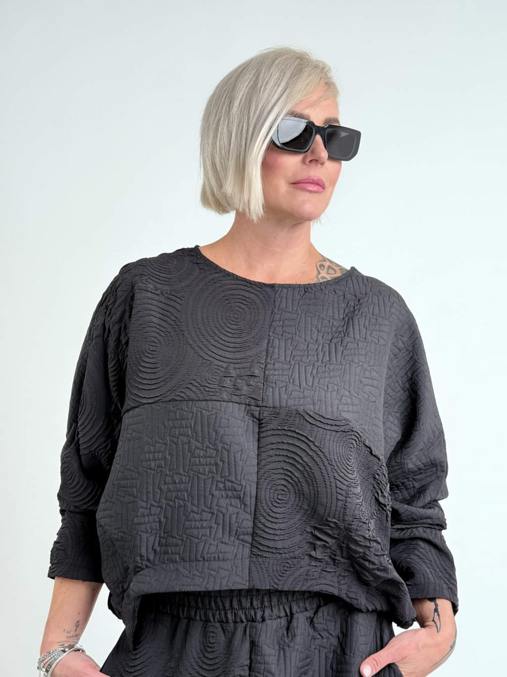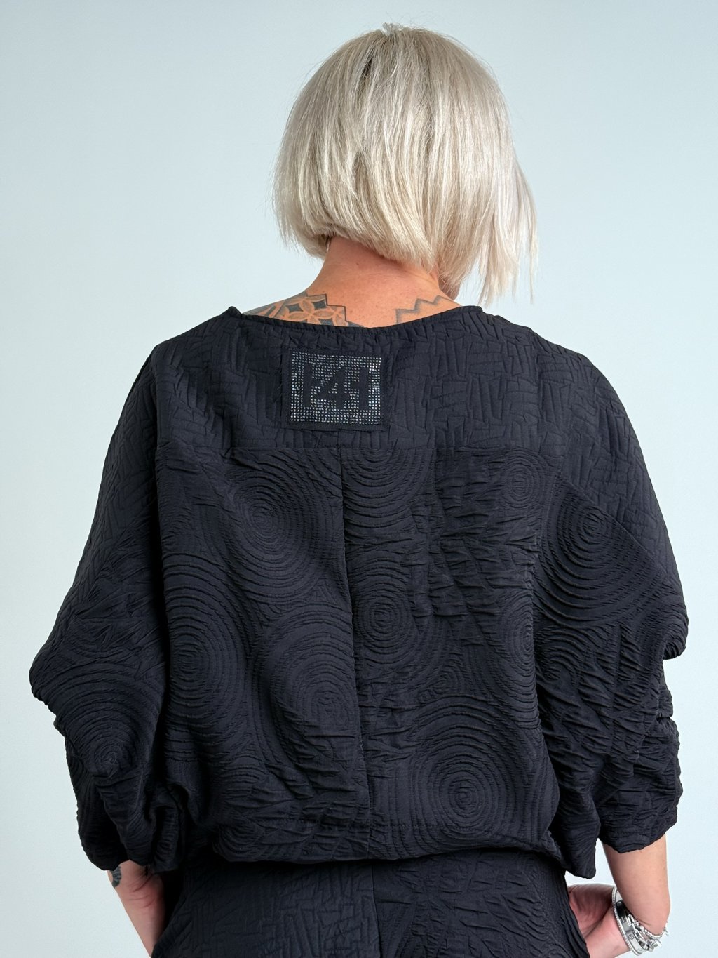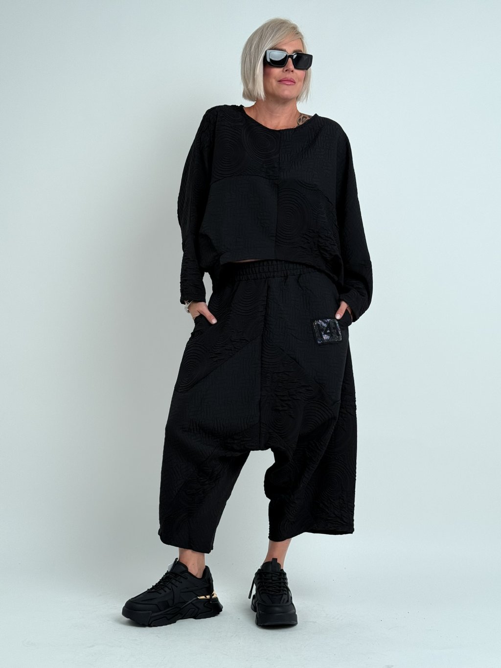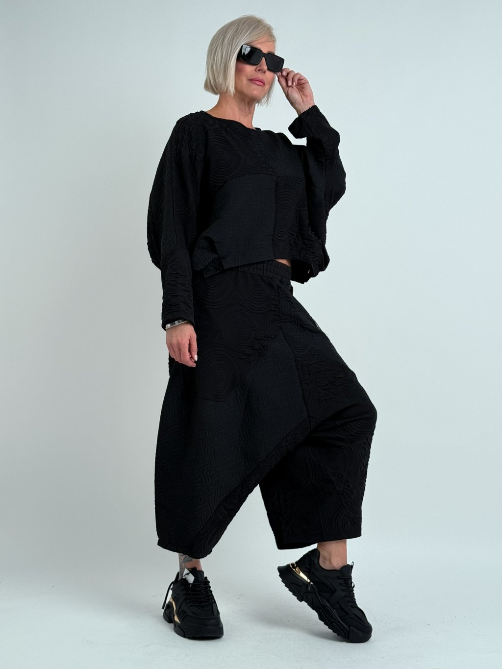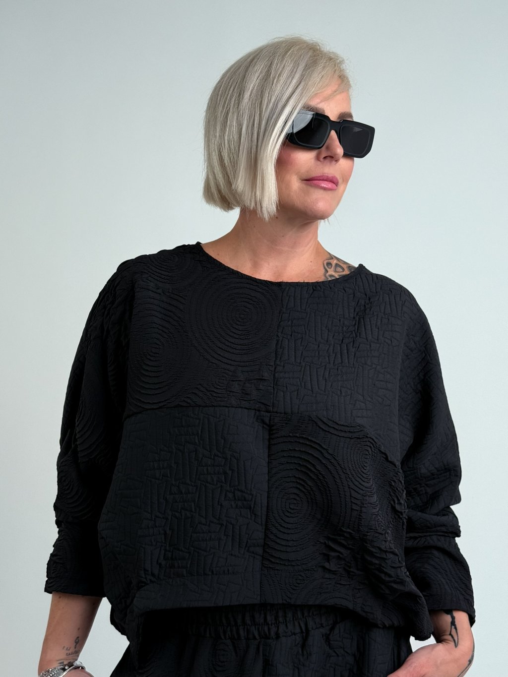 Luxusní top v zajímavém, oversize, netopýřím střihu, s vykrojeným spodním koncem topu a dlouhým rukávem. MĚŘTE, TOPY ODPOVÍDAJÍ VĚTŠÍM VELIKOSTEM.