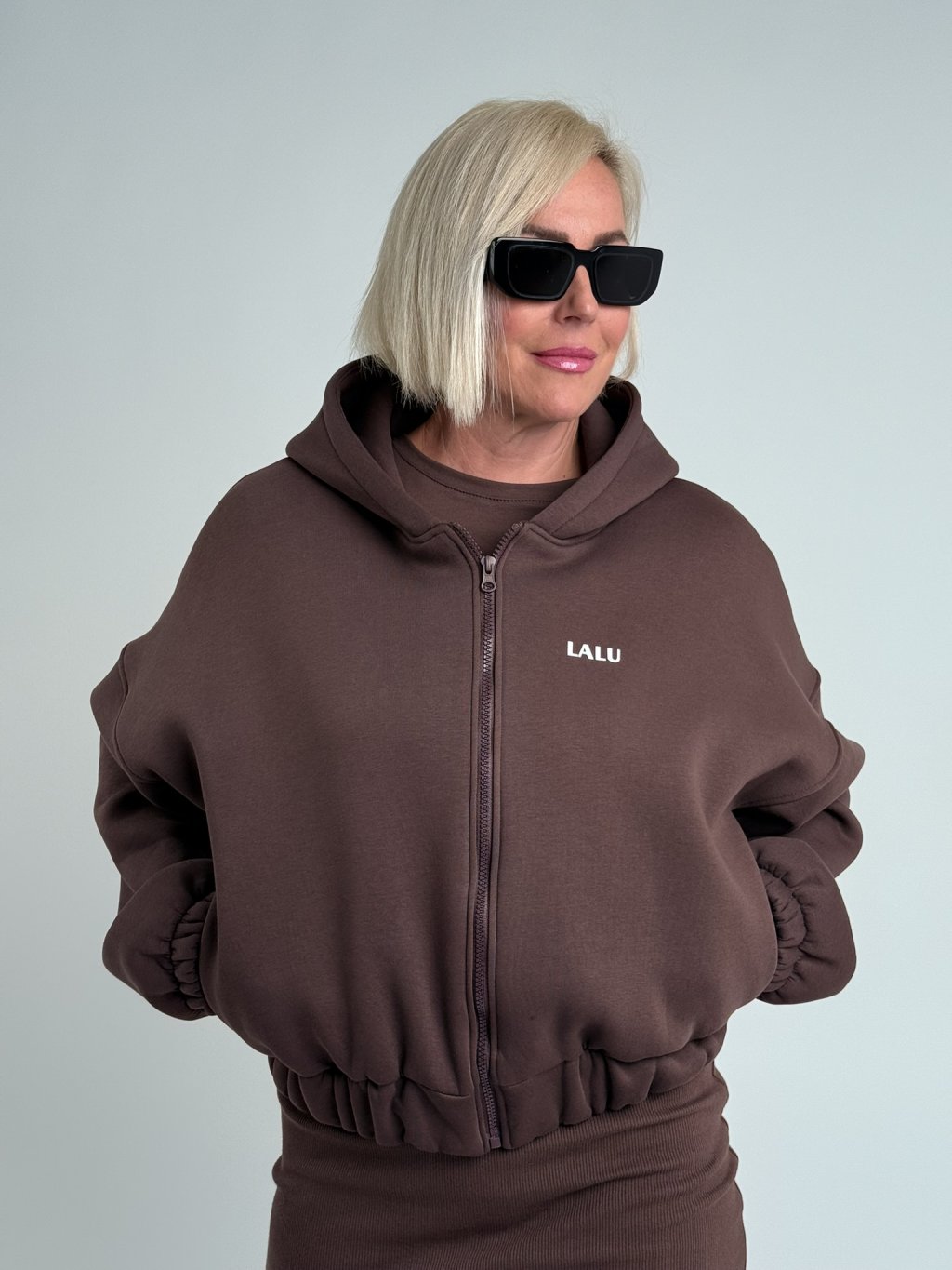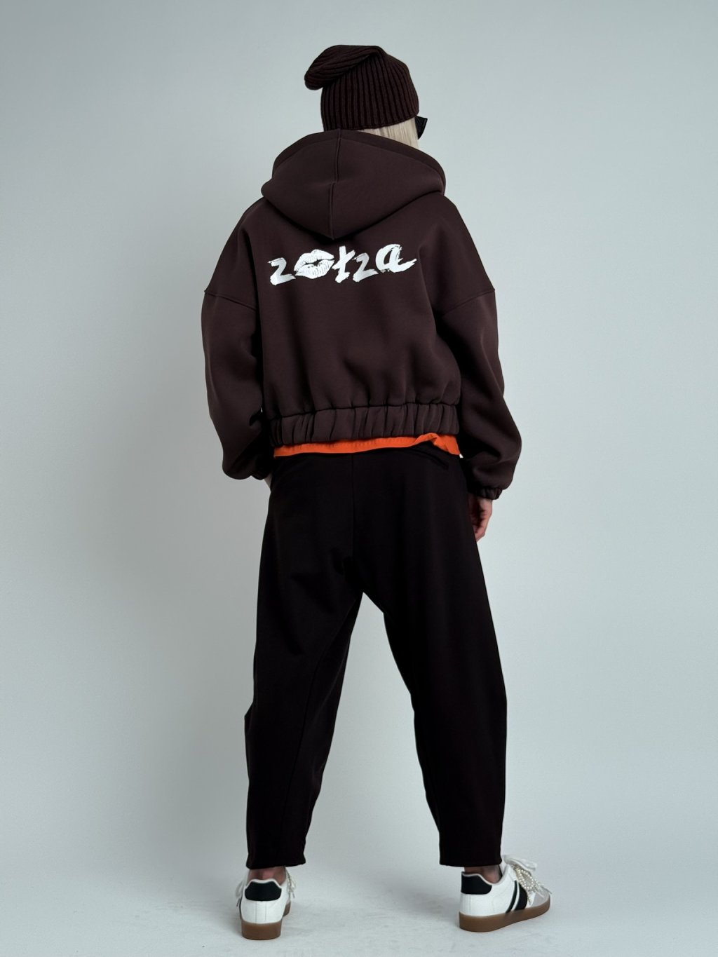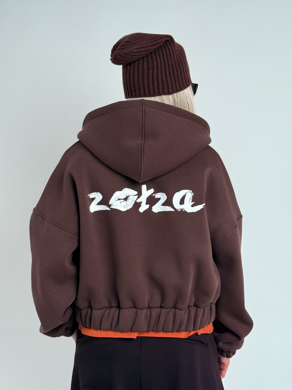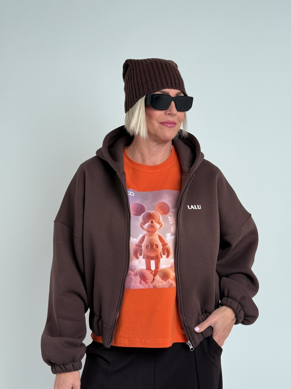 Super mikina s kapucí, zapínáním na zip, postranními kapsami a potiskem na zádech