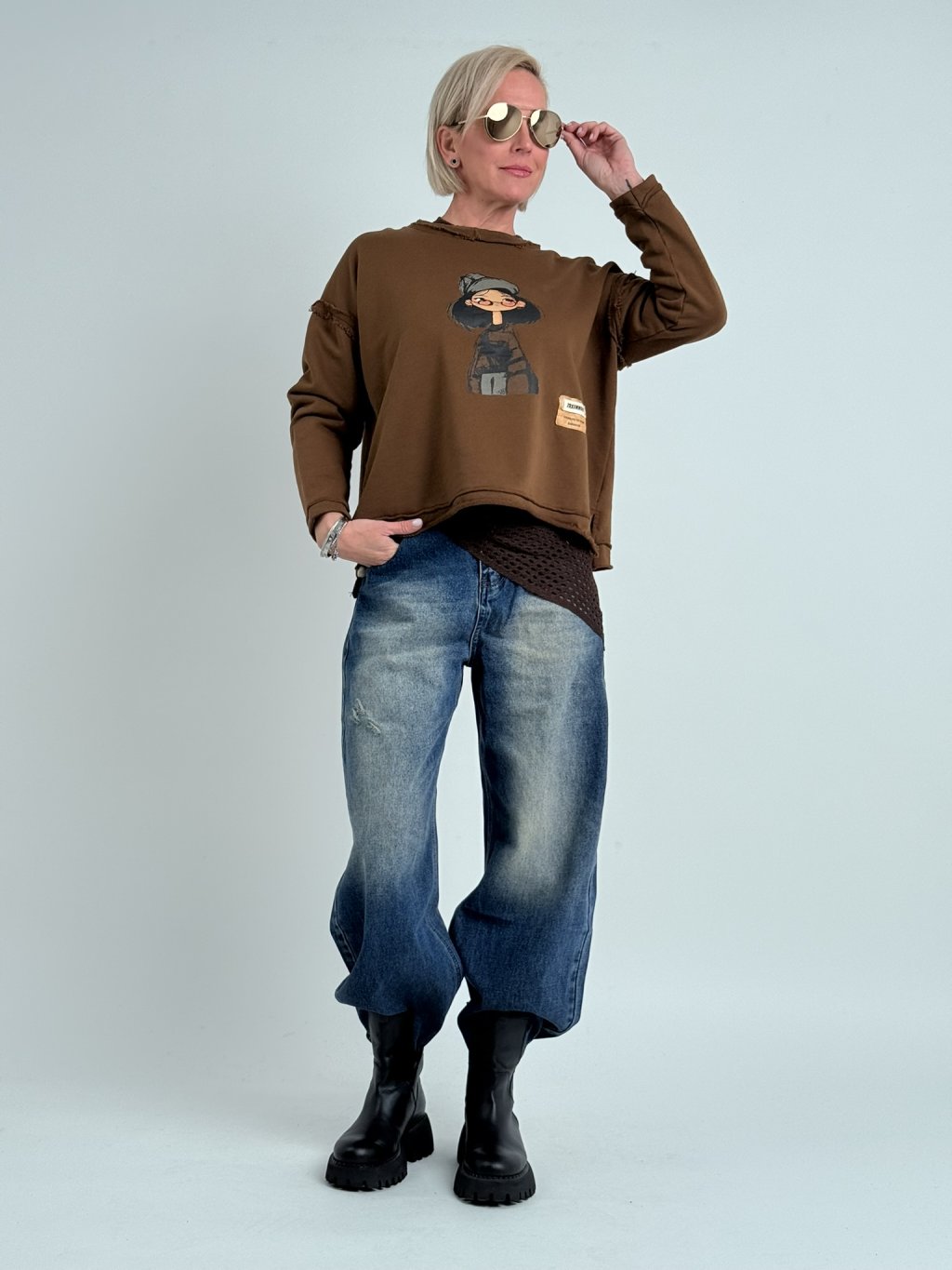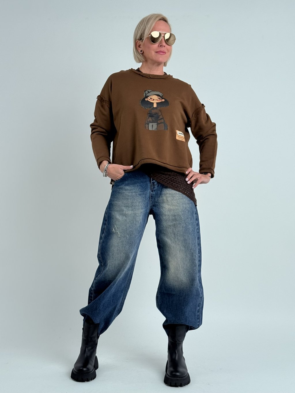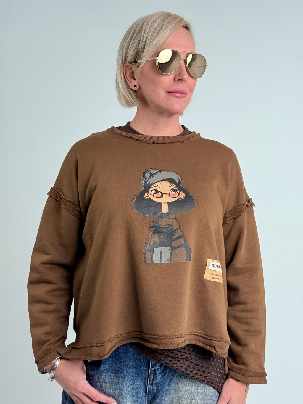 Super, oversize, slabší mikina s kulatým výstřihem, dlouhým rukávem a potiskem na předním dílu.
