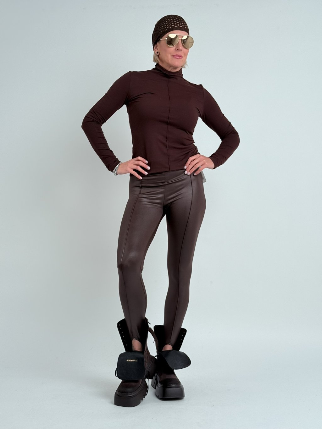 Skvělé kaliopky v koženkovém vzhledu, se švem na předním dílu a gumou v pase.