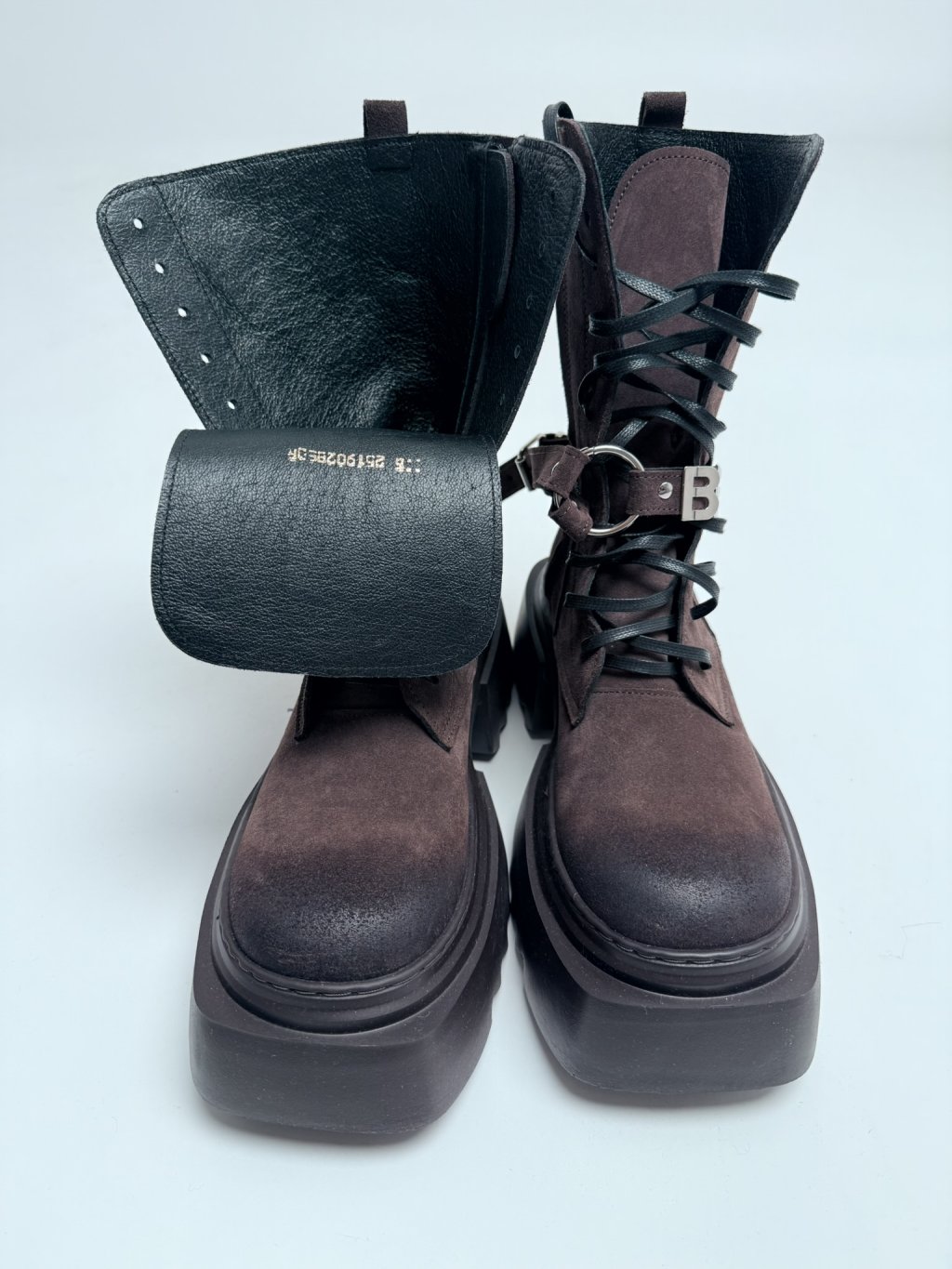 Pohodlné, ručně šité, vyšší, kožené boty, na zavazování, s platformou. Velikosti odpovídají. Výška platformy vpředu 5,5 cm, vzadu 9 cm.