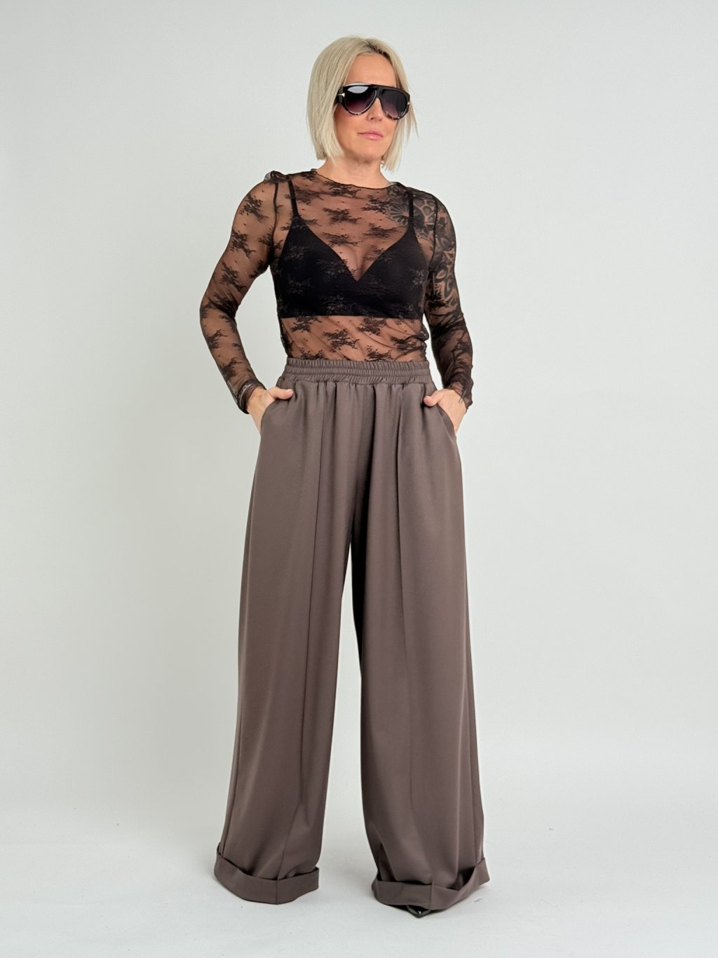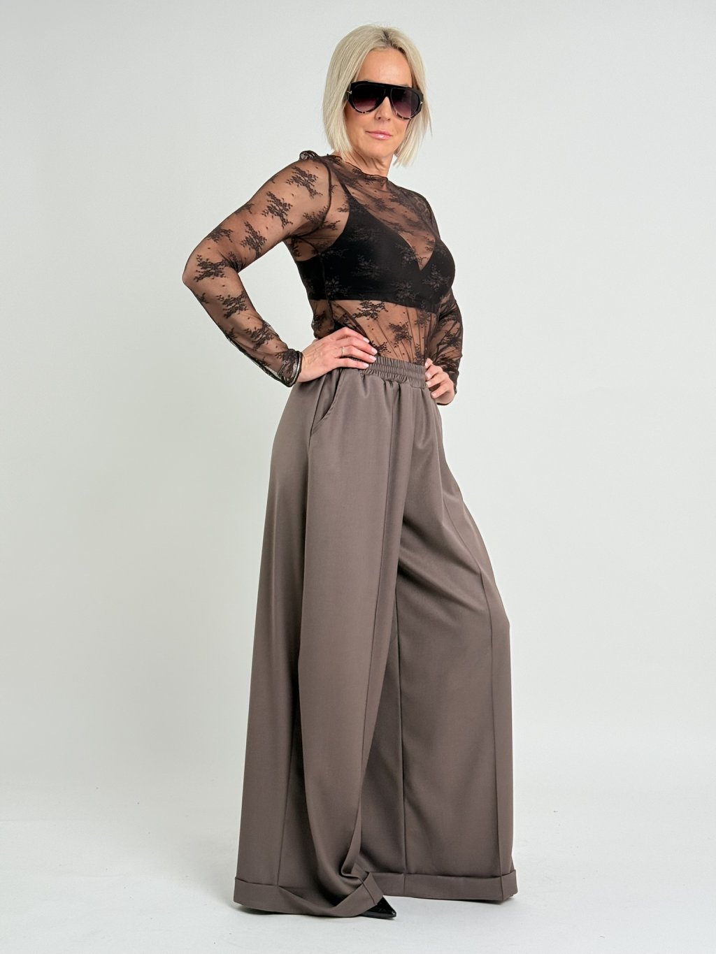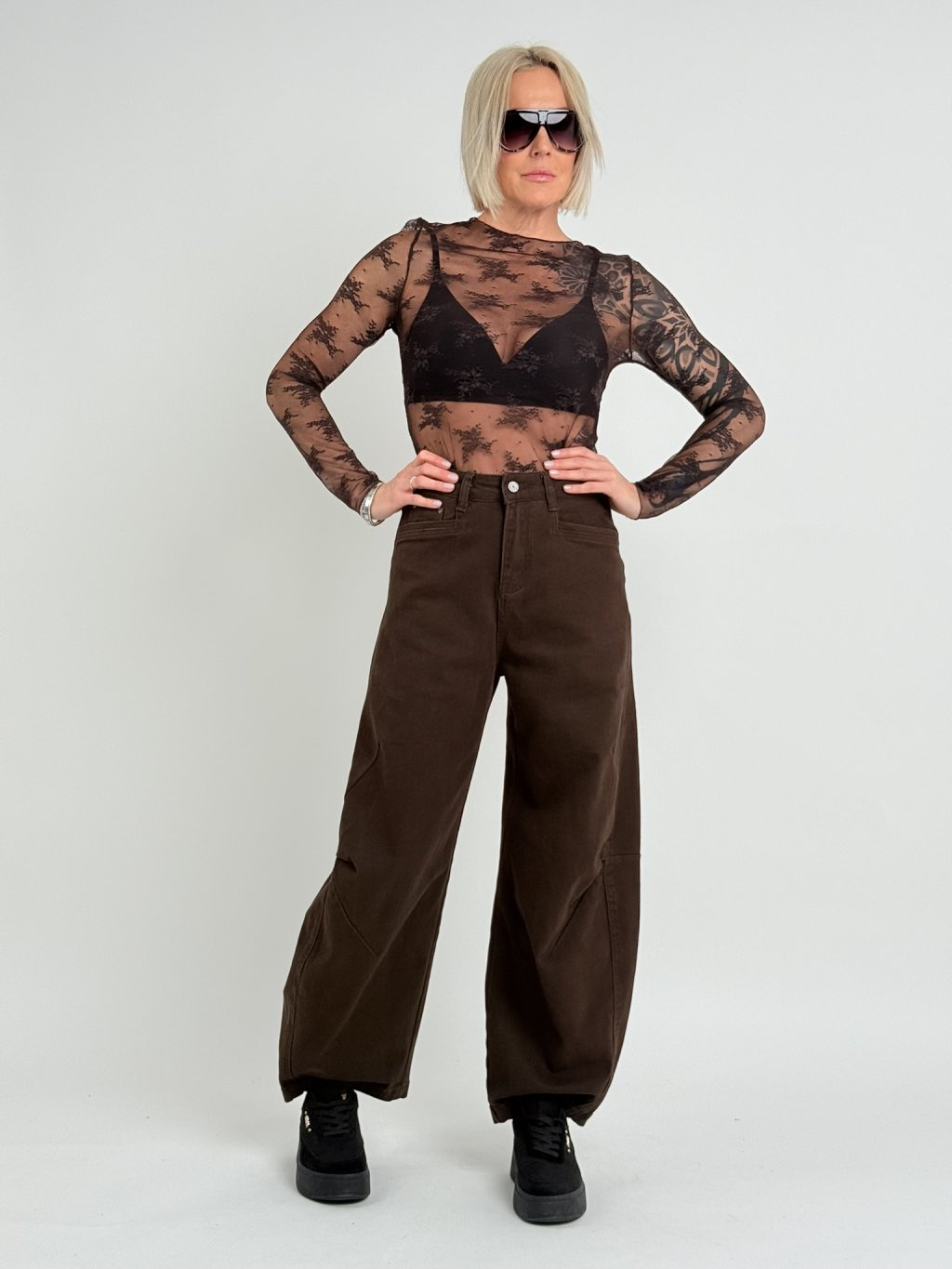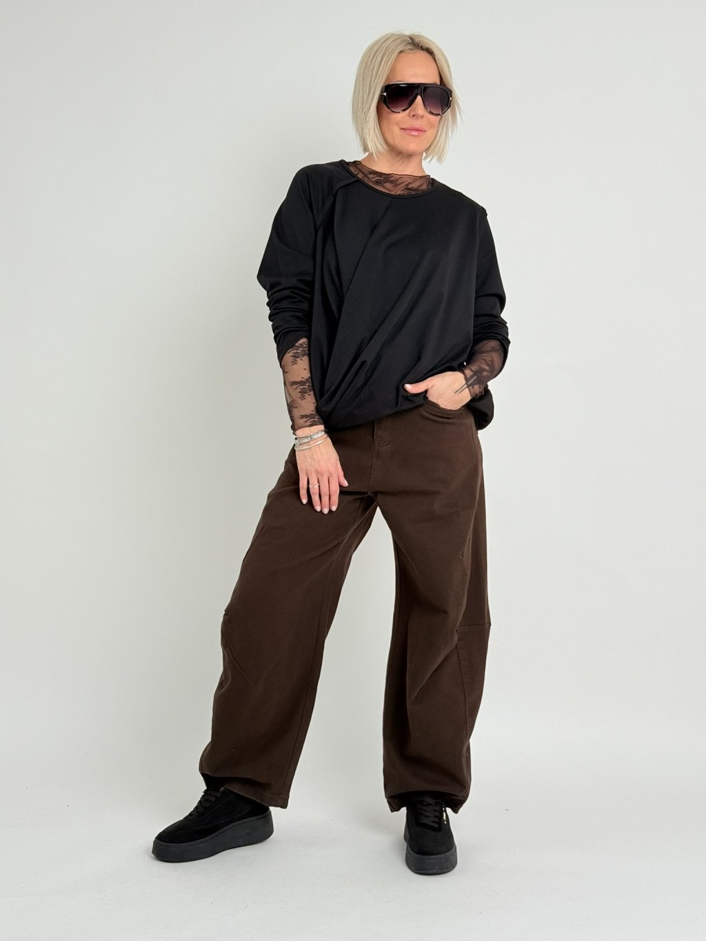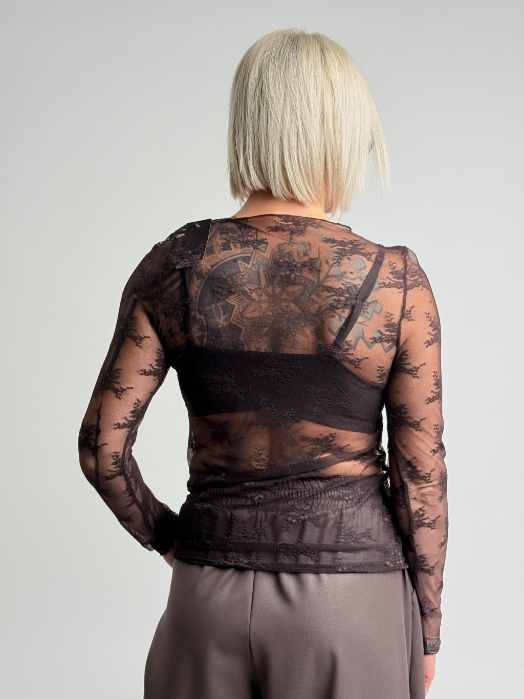 Hnědé krajkované triko LIQ