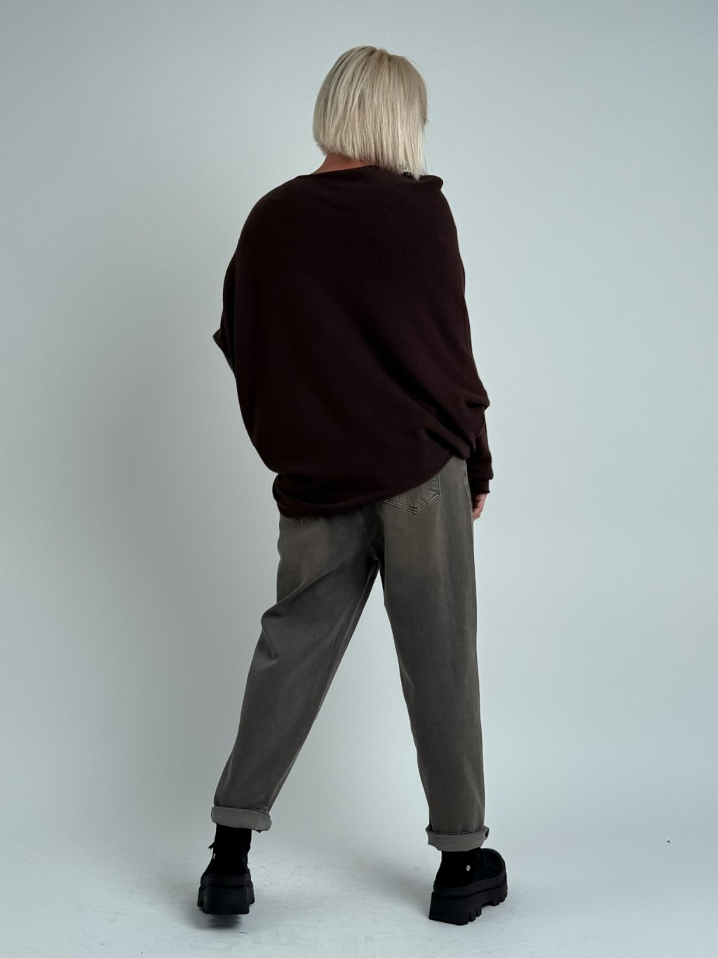 Krásný, pružný, asymetrický svetr s lodičkovým výstřihem. Jemný a nekousavý.