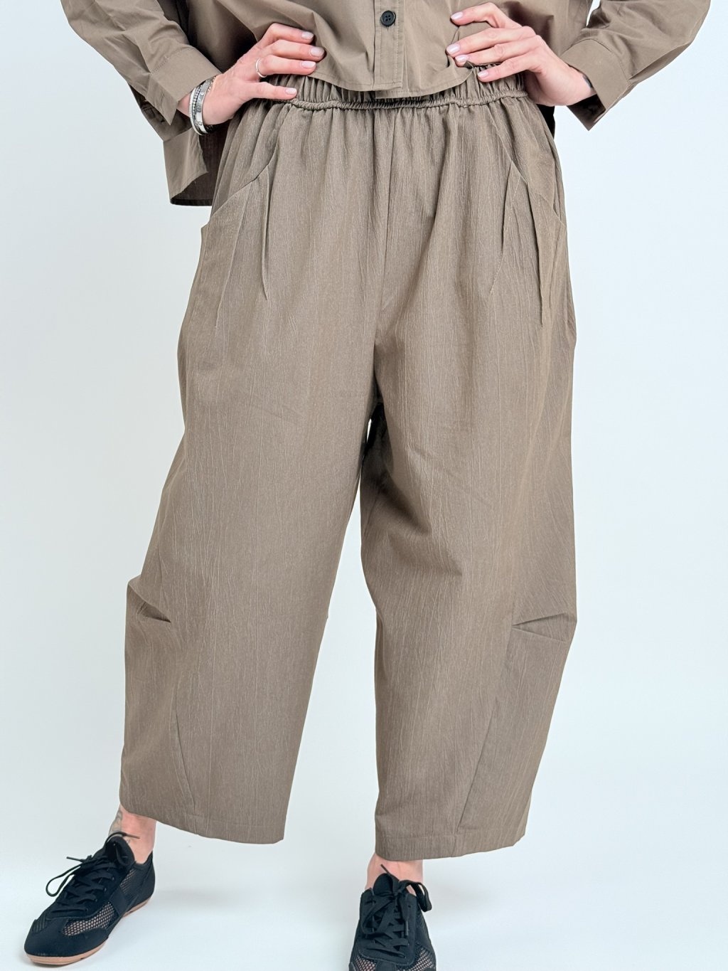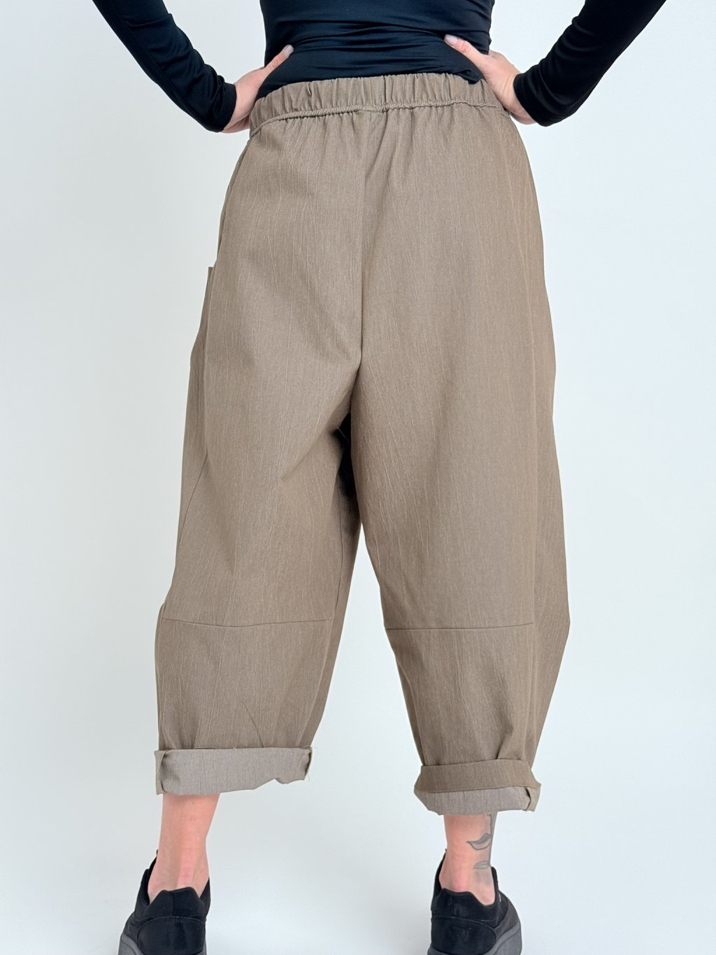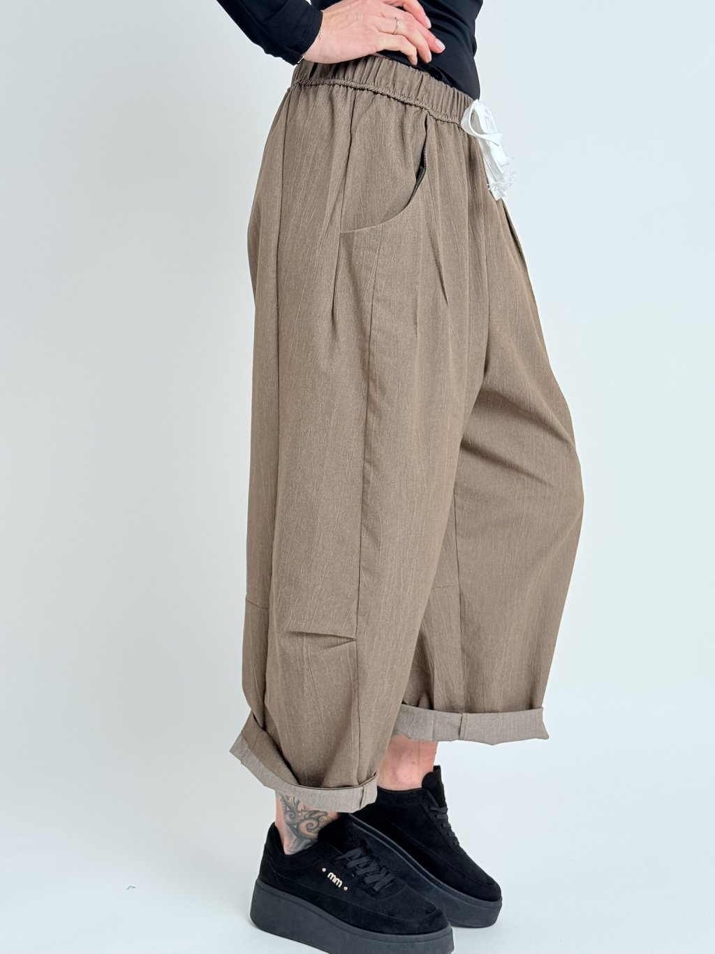 Luxusní kalhoty v balonovém střihu, s gumou a tkanicí na stažení v pase. Super střih i materiál.