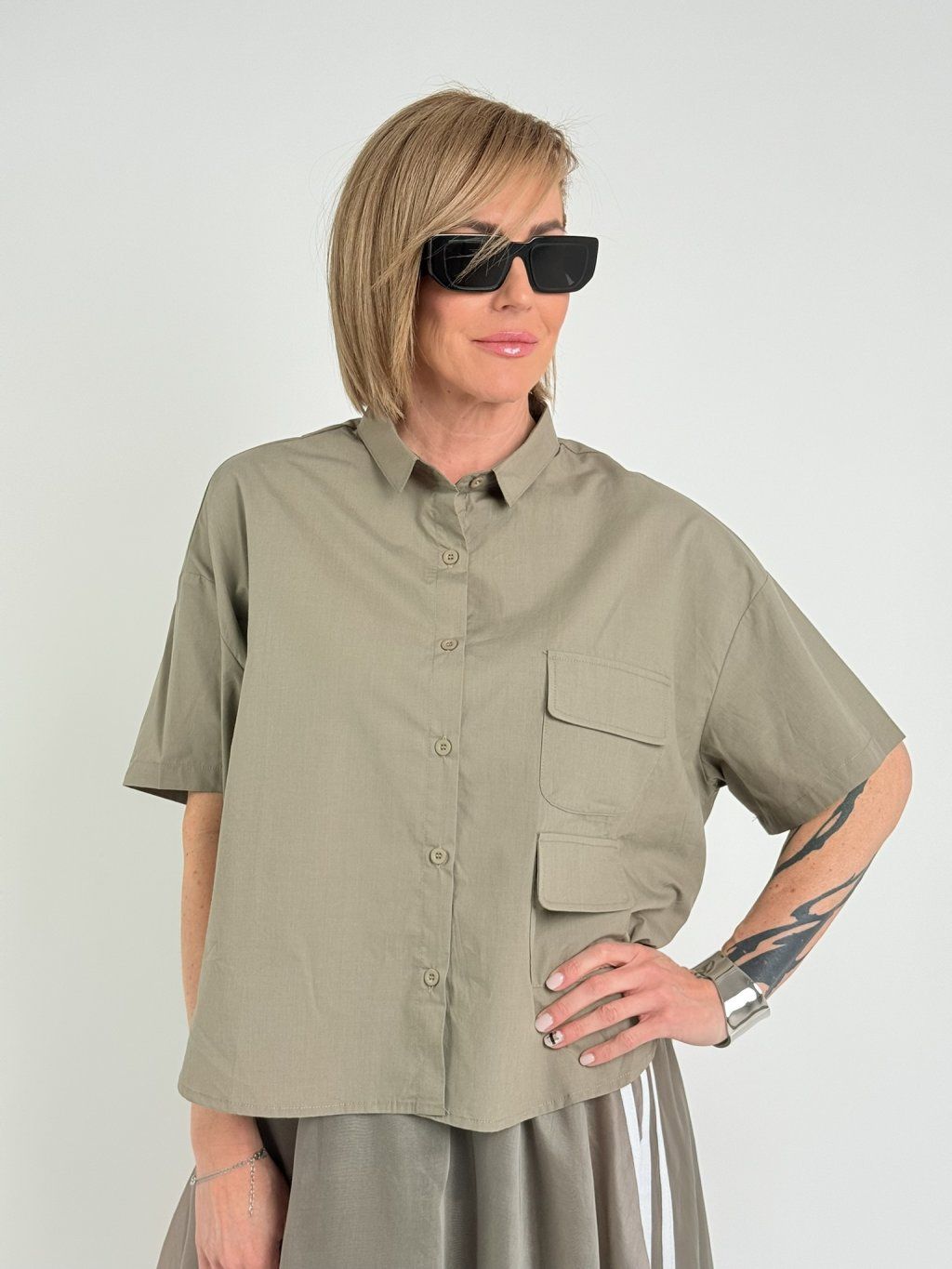 Krásná, kratší košile s krátkým rukávem, a dvěma kapsičkami na předním dílu, vzadu i vpředu se zapínáním na knoflíčky.