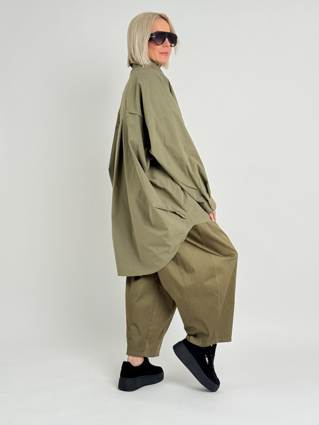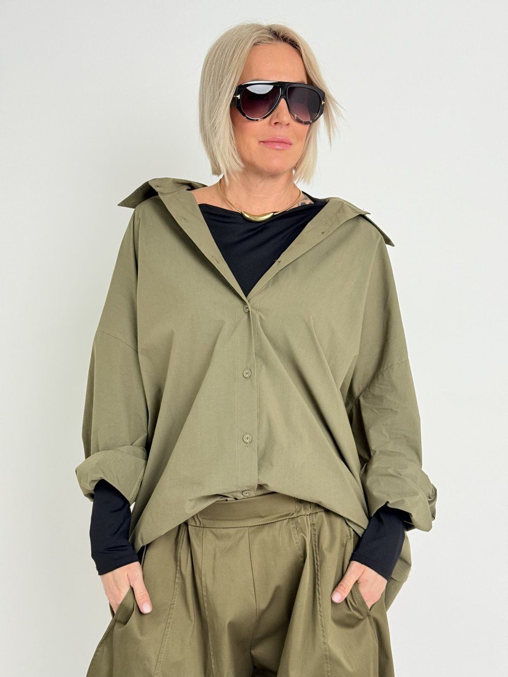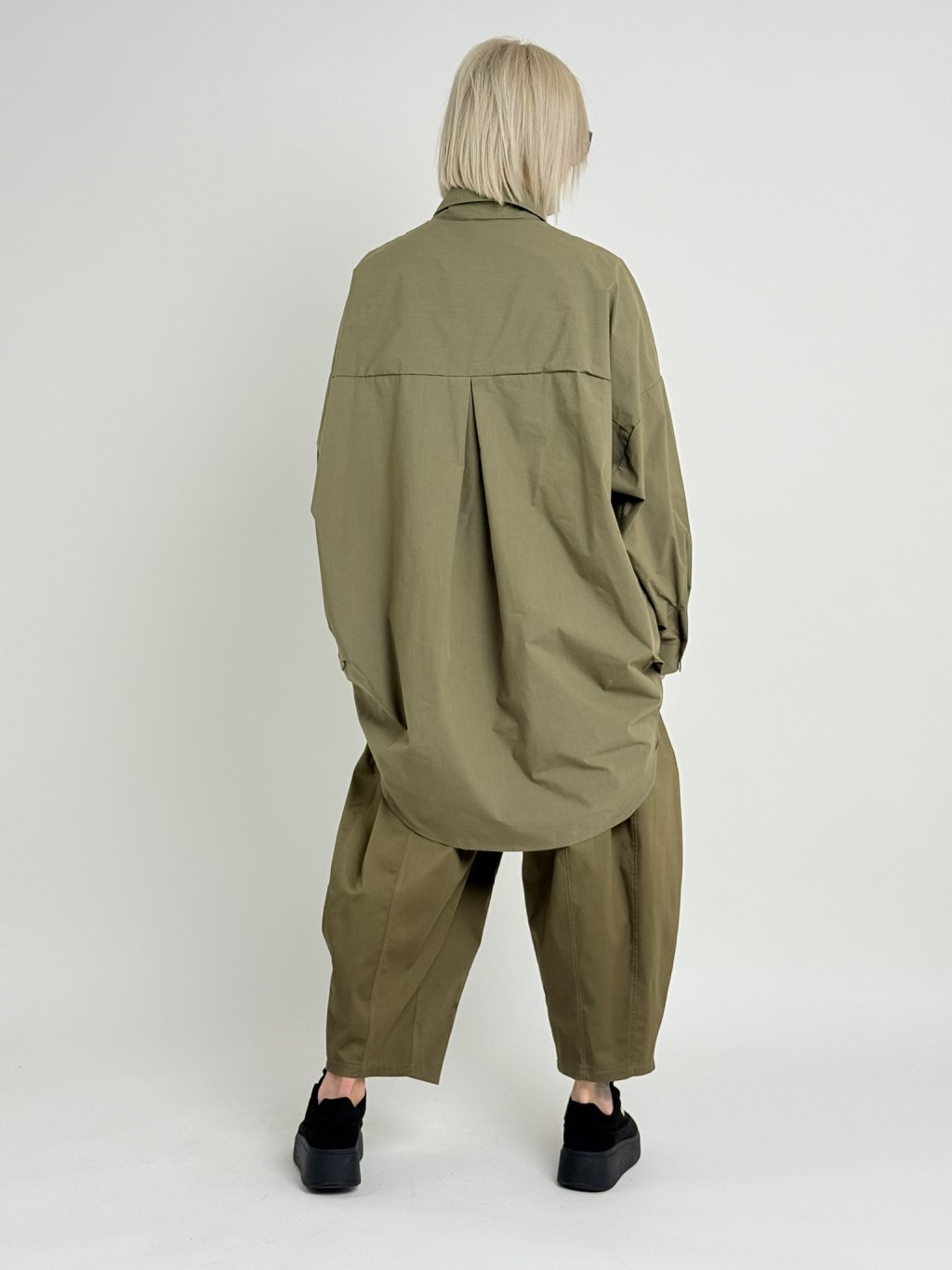 Nádherná, oversize košile s dlouhými rukávy. Uvnitř, v horní části zad je puntíkatá podšívka.