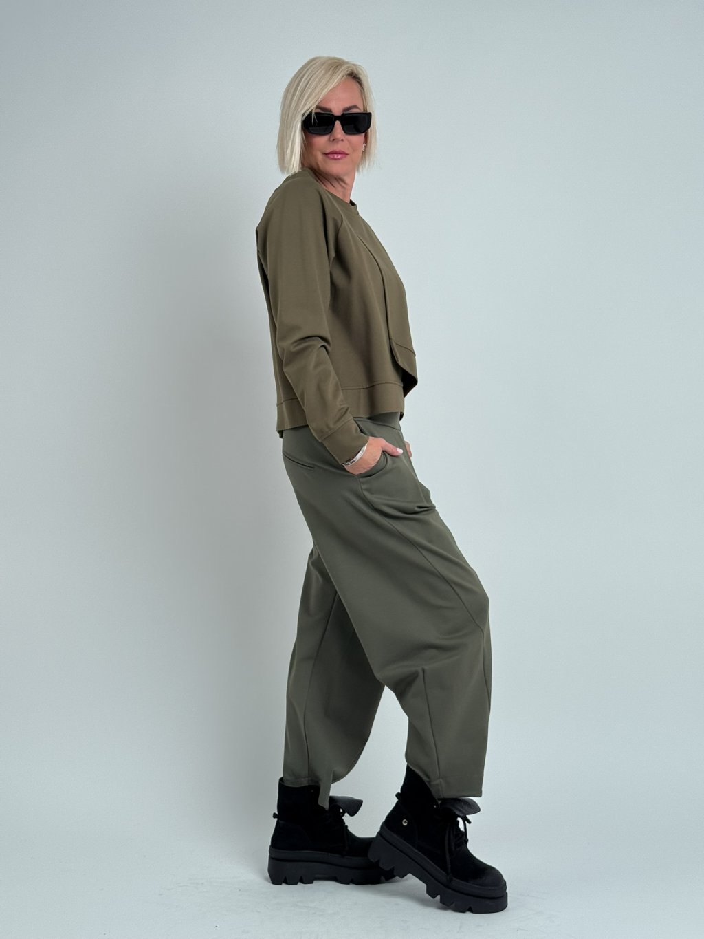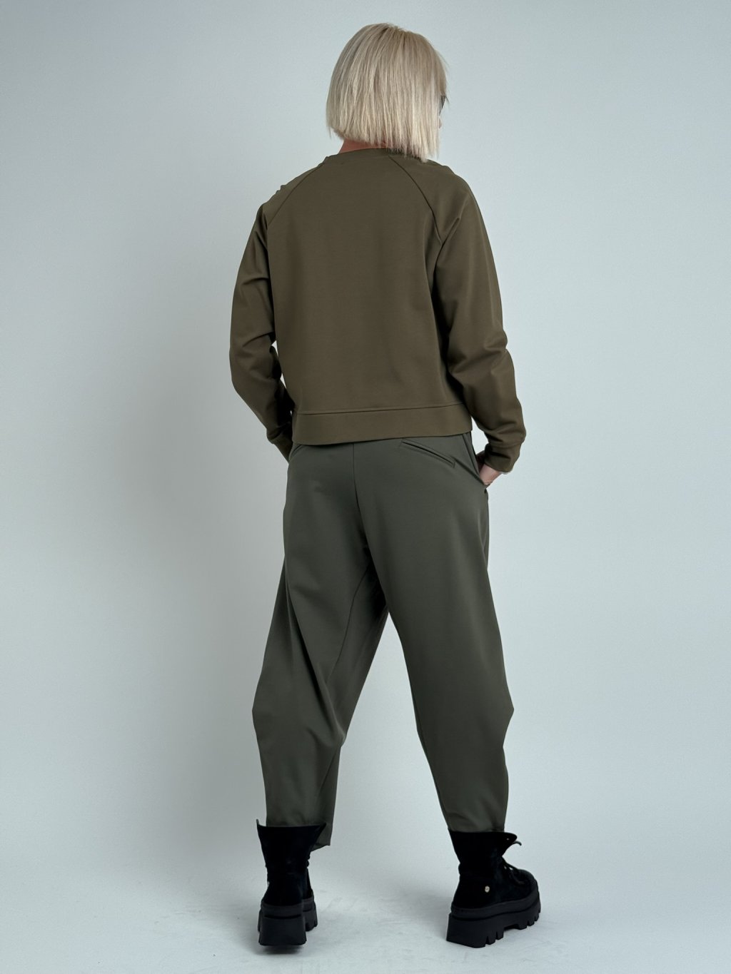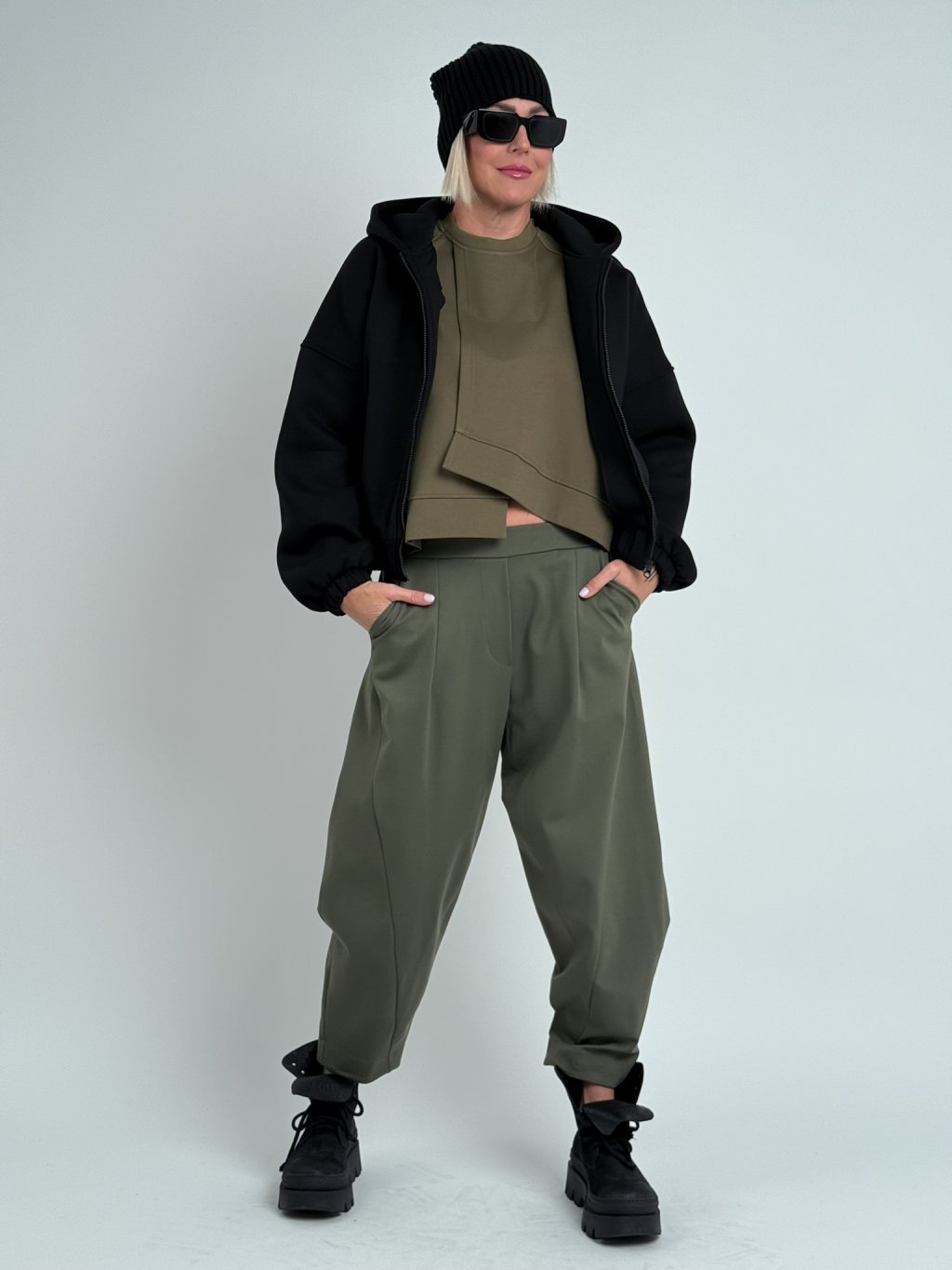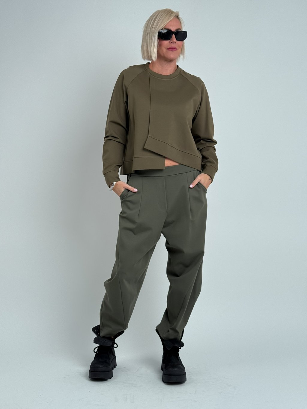 Zajímavý, kratší top se zajímavě řešeným předním dílem a dlouhým rukávem.