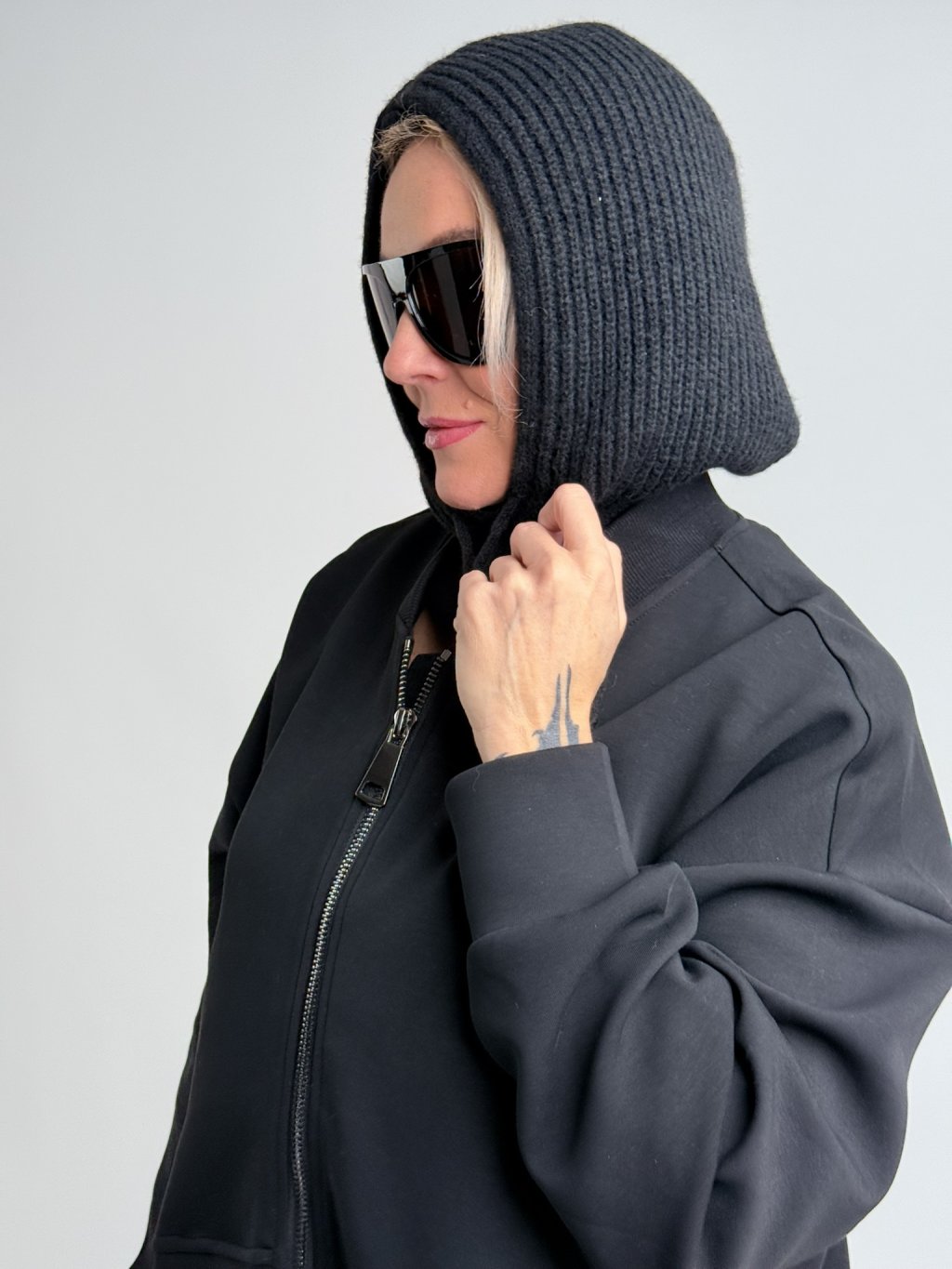Super záležitost-kukla, kterou lze nosit na hlavě nebo jako nákrčník.