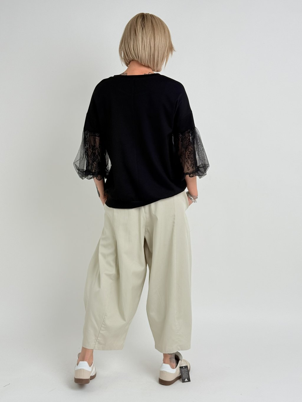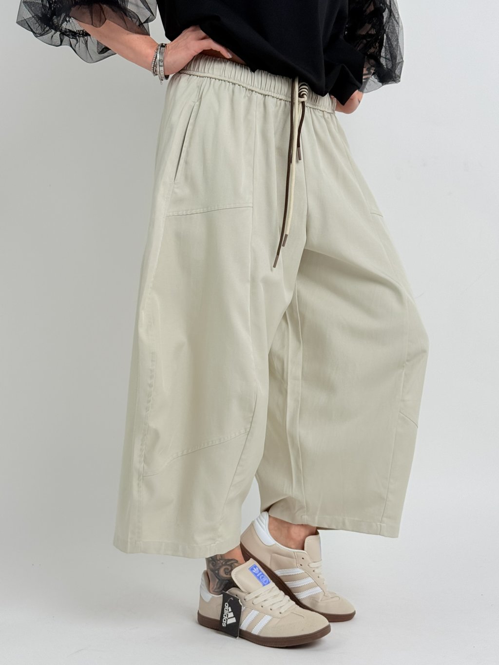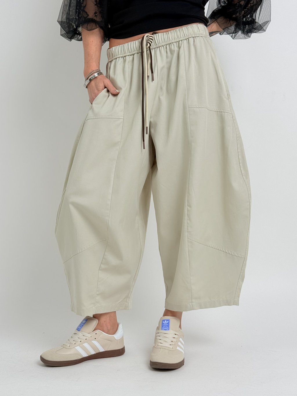Kalhoty v balonovém střihu, s gumou a tkanicí na stažení v pase. Super střih i materiál.