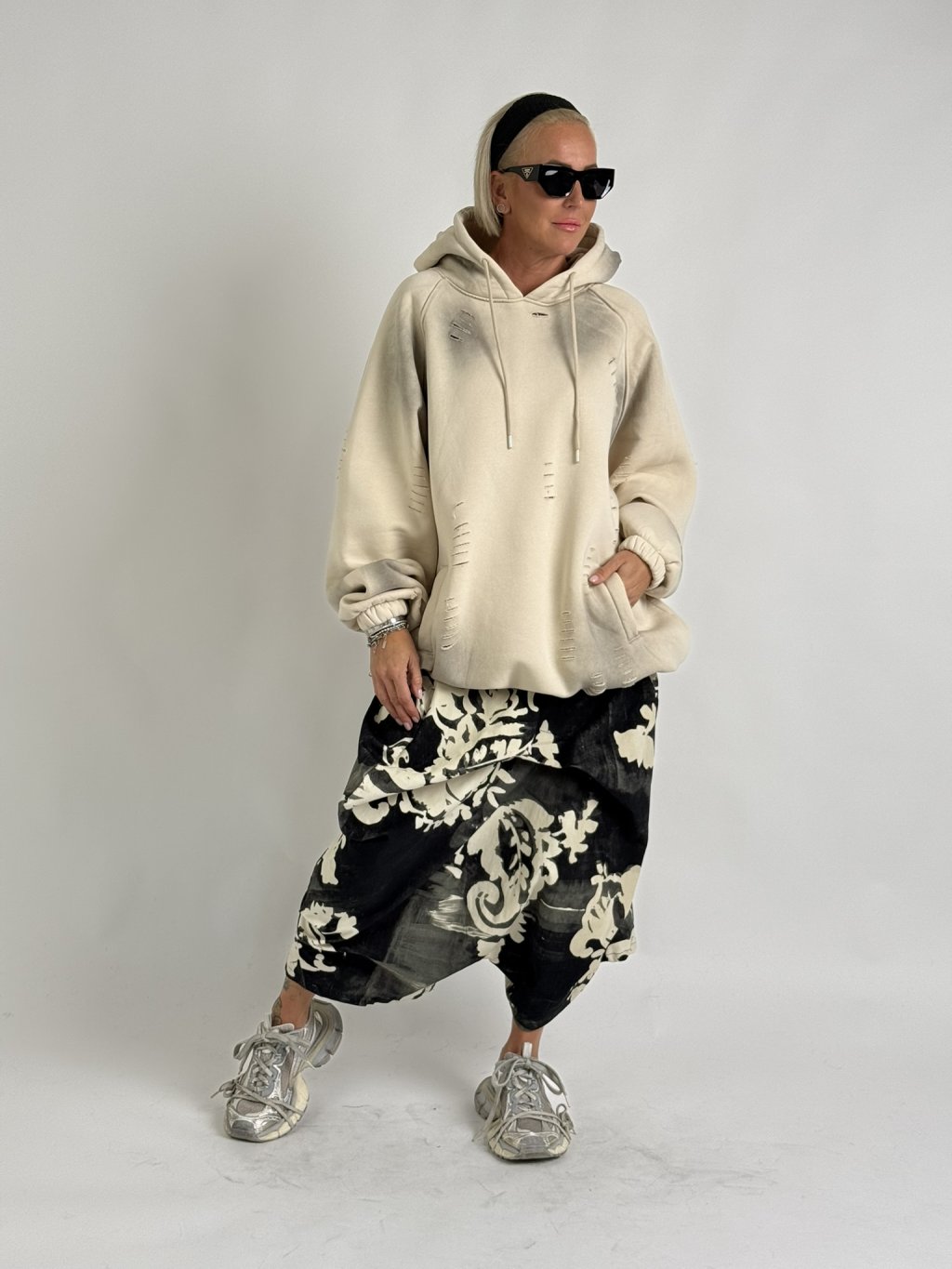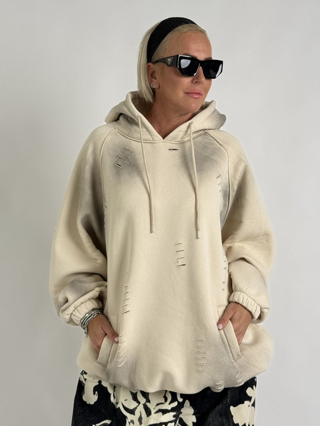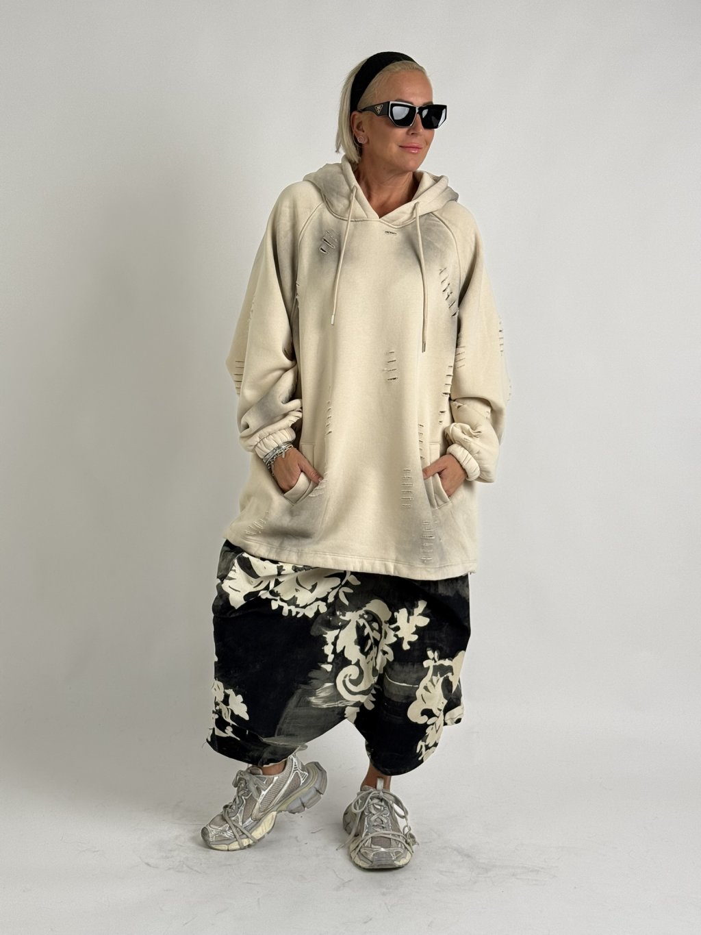 Super, oversize, delší mikina s průstřihy, kapsami na předním dílu, v dolní části na stažení.